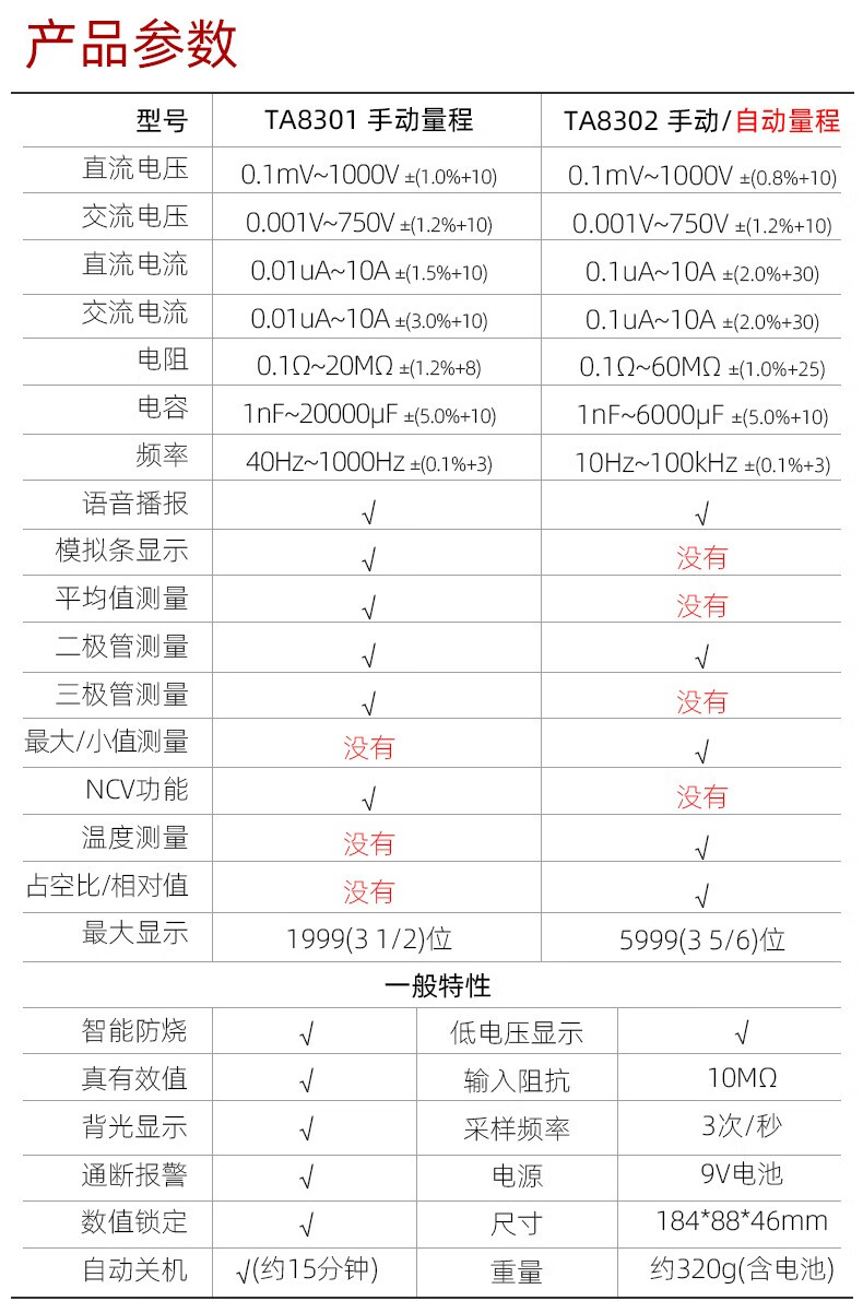 Teans voice broadcast multimeter digital high-precision digital display automatic range electrician burn-proof multi-function multimeter TA8301 manual transmission voice multimeter