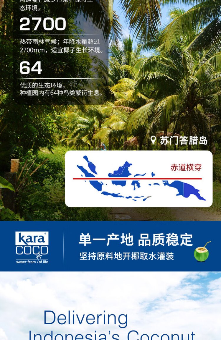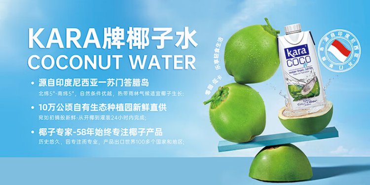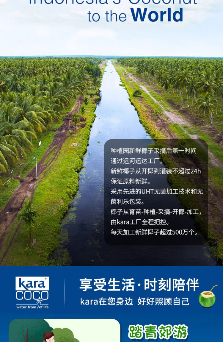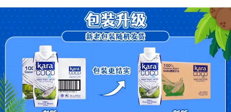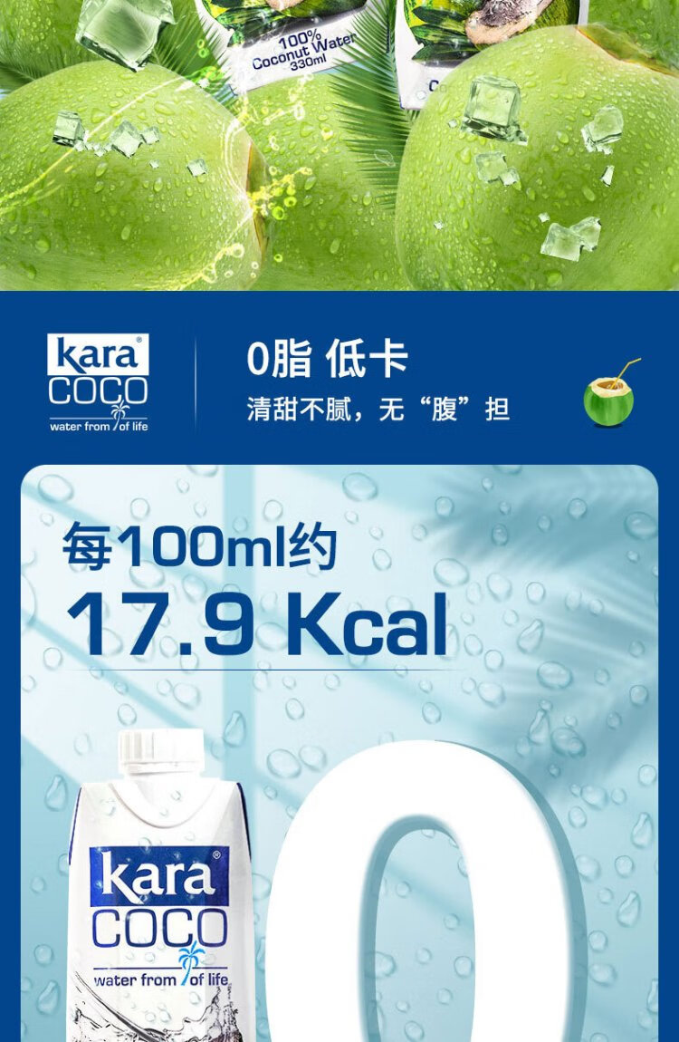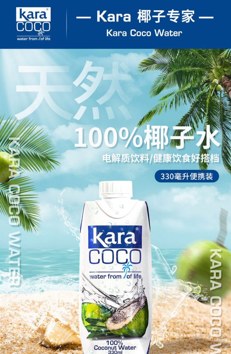 KARA 100% coconut water 330ml*12 bottles, containing electrolytes, quick hydration drink, 0 fat and low calorie