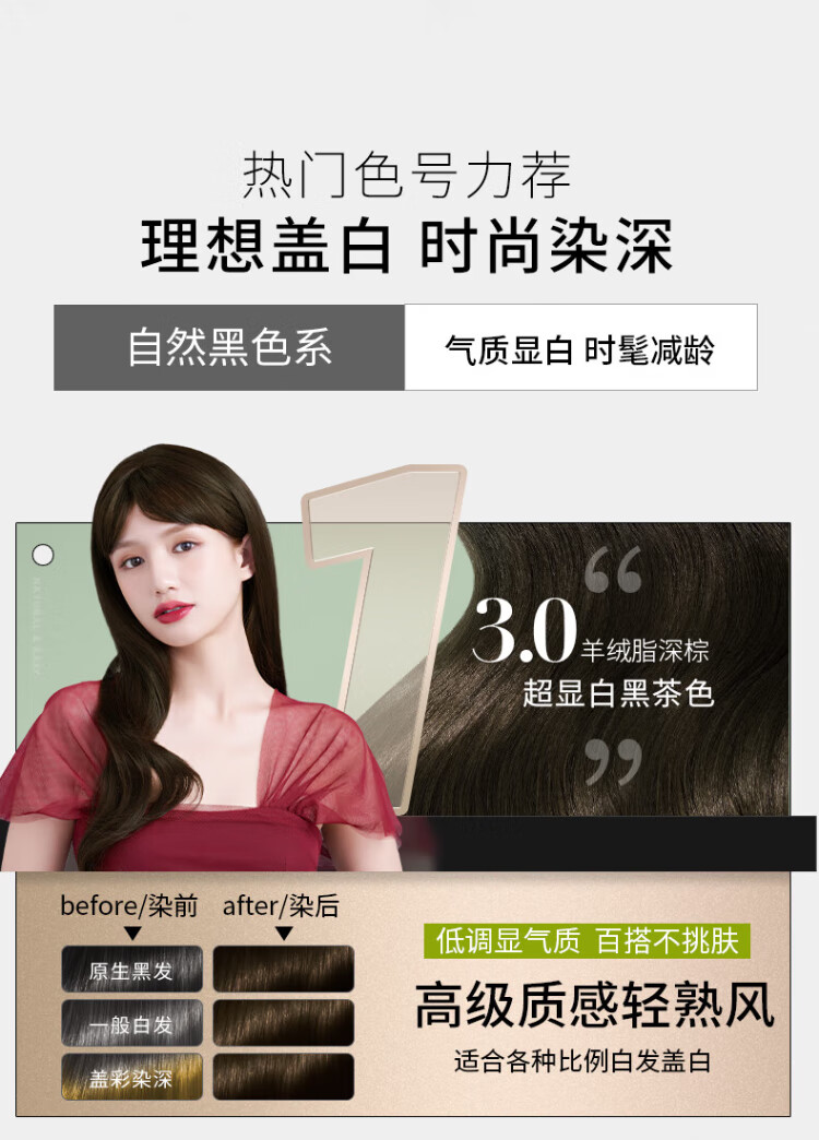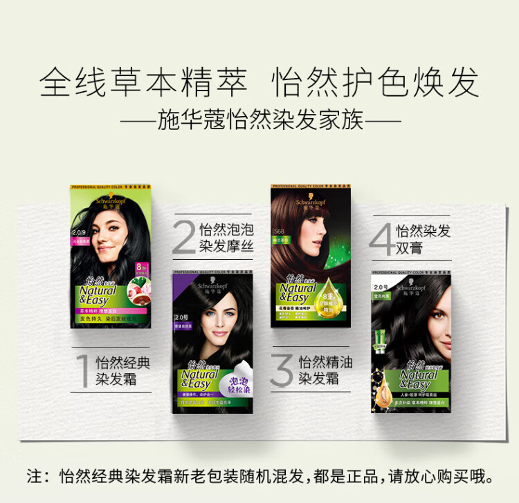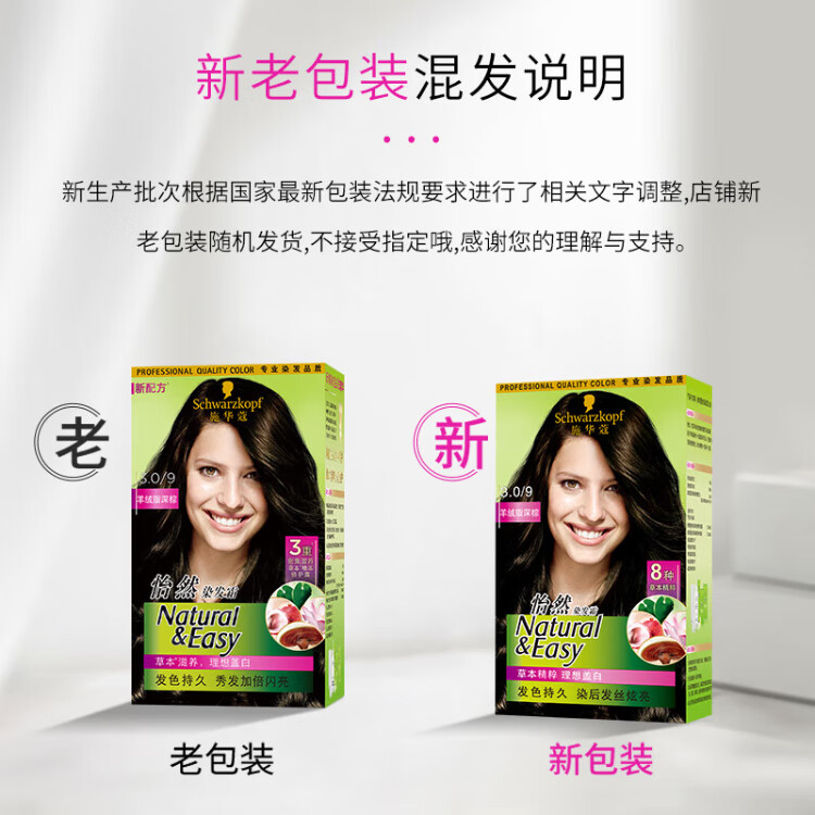 Schwarzkopf Yiran Hair Dye Cream 3.0/9 Cashmere Fat Dark Brown*2 Black Brown Hair Dye Cream Covers White with Free Multi-effect Conditioner 60ml