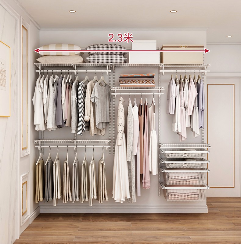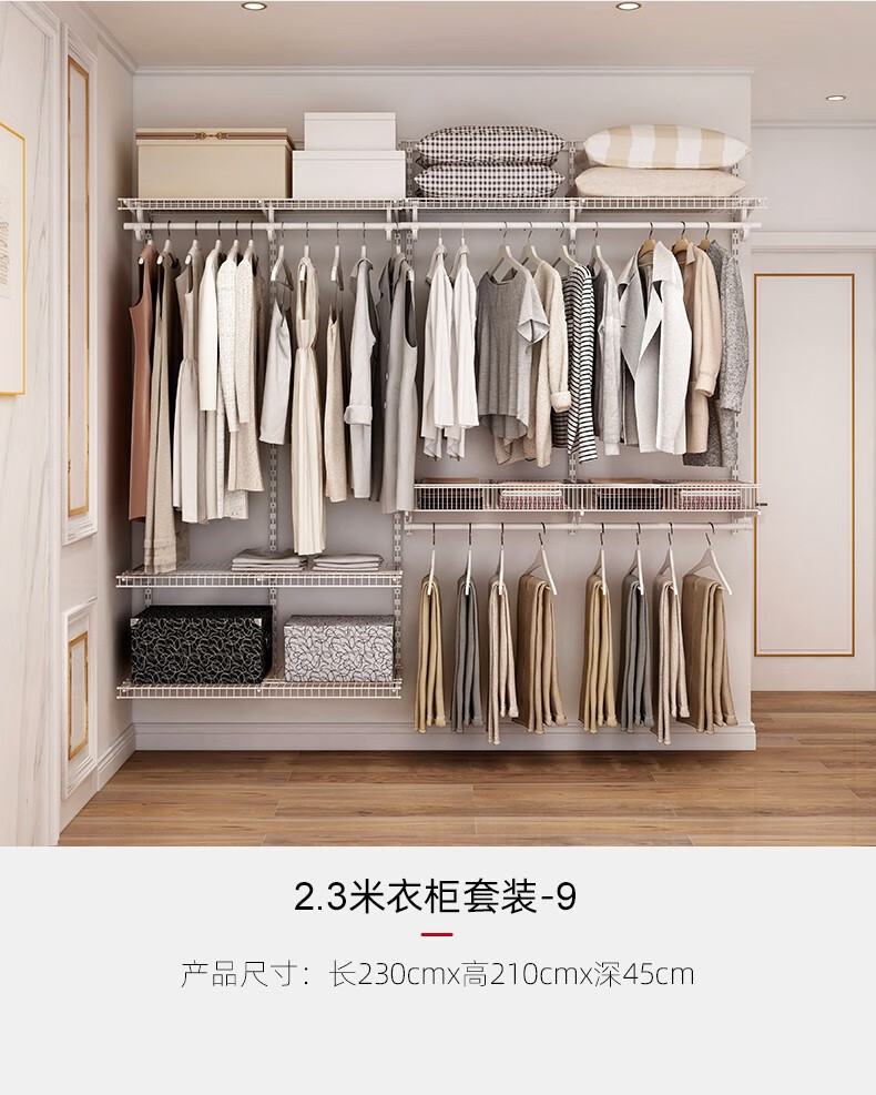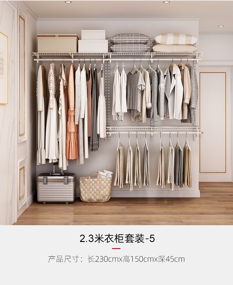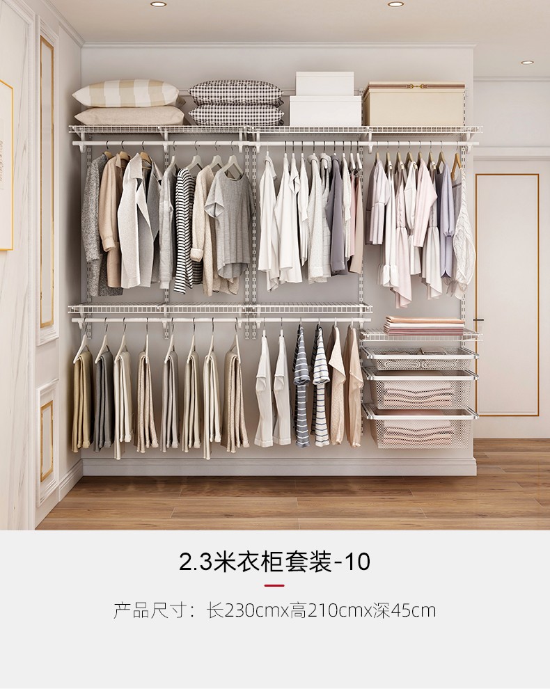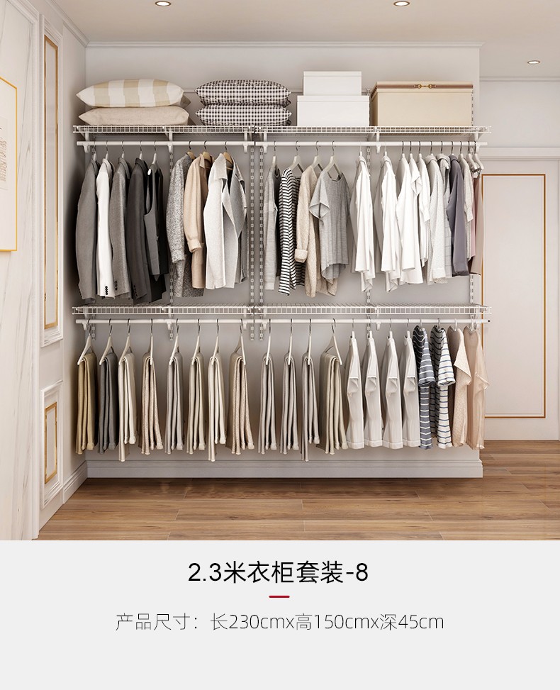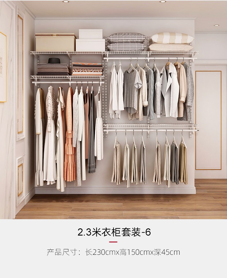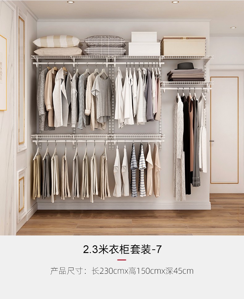 Platinum Cloakroom Wardrobe Customized Overall Clothes Rack Modern Simple Open Clothes Rack Metal Clothes Hanger 2.3m Walker 2.3m-19 Delivery to Home Package Installation