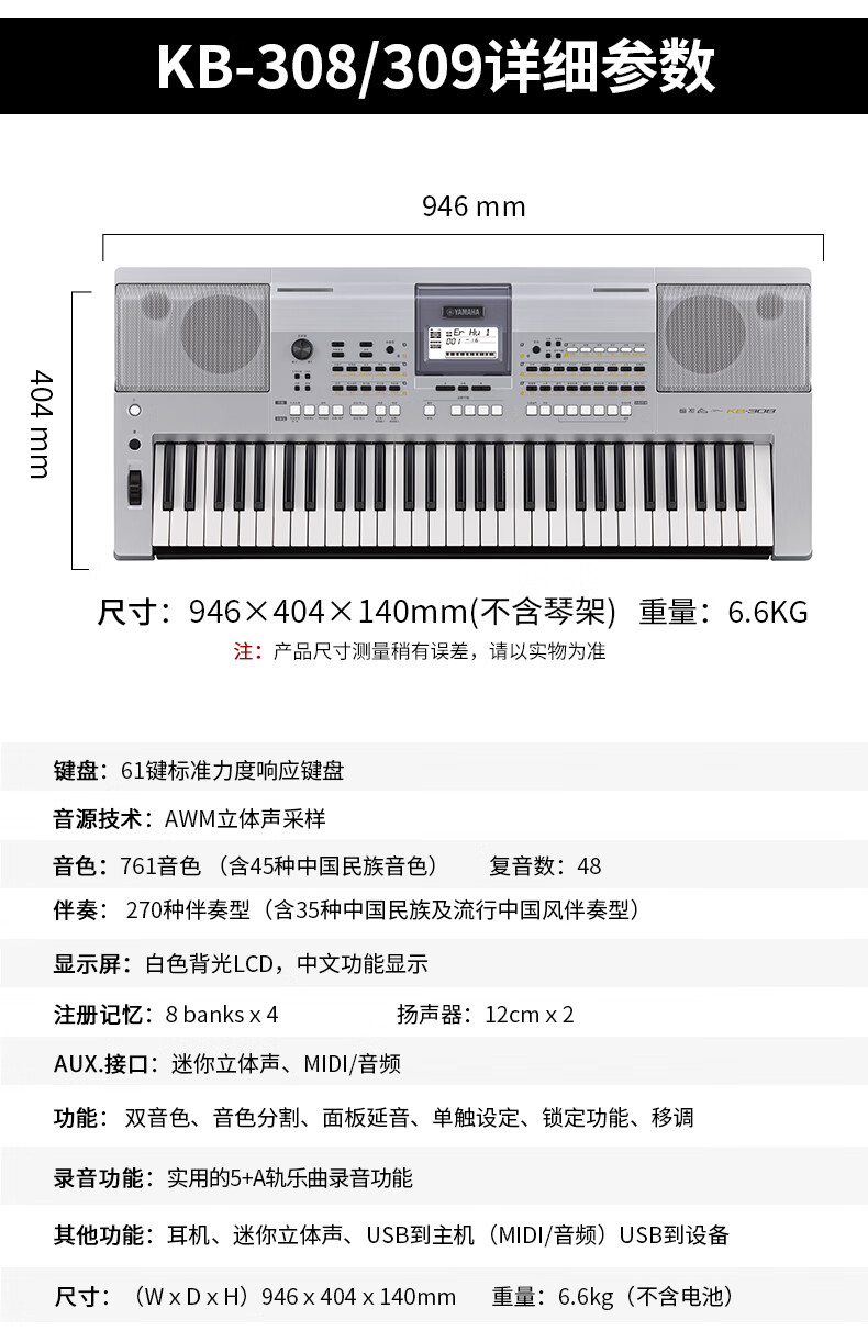 Yamaha (YAMAHA) electronic keyboard KB309 308 professional 61-key adult and child grade examination elderly beginners home portable advanced keyboard KB309 + stable thickened Z frame + full set of accessories