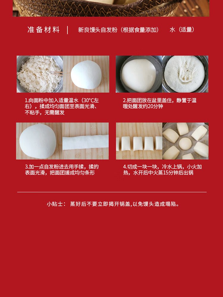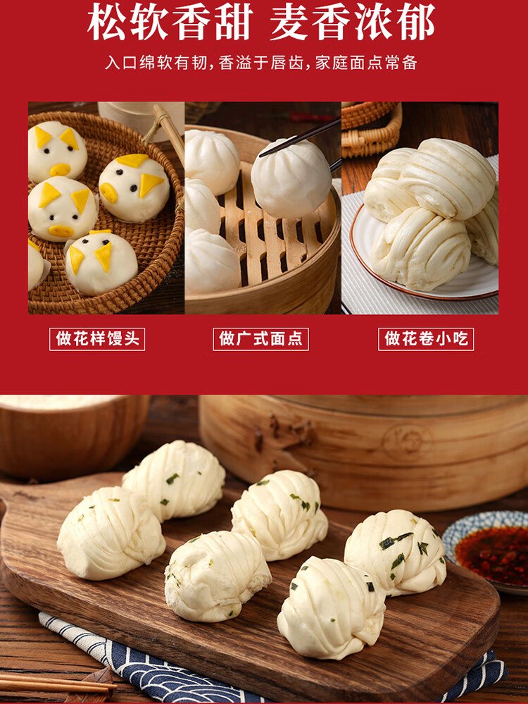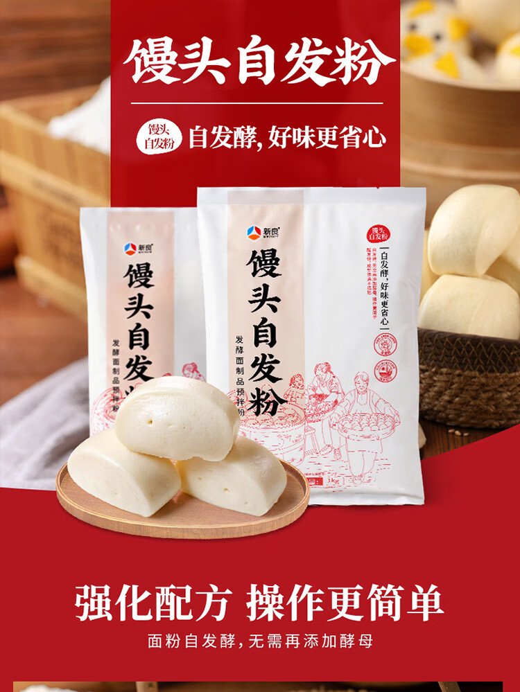 Xinliang self-raising flour for steamed buns 2 pounds, medium-gluten flour, no need for yeast powder, baking powder, wheat flour for steamed buns
