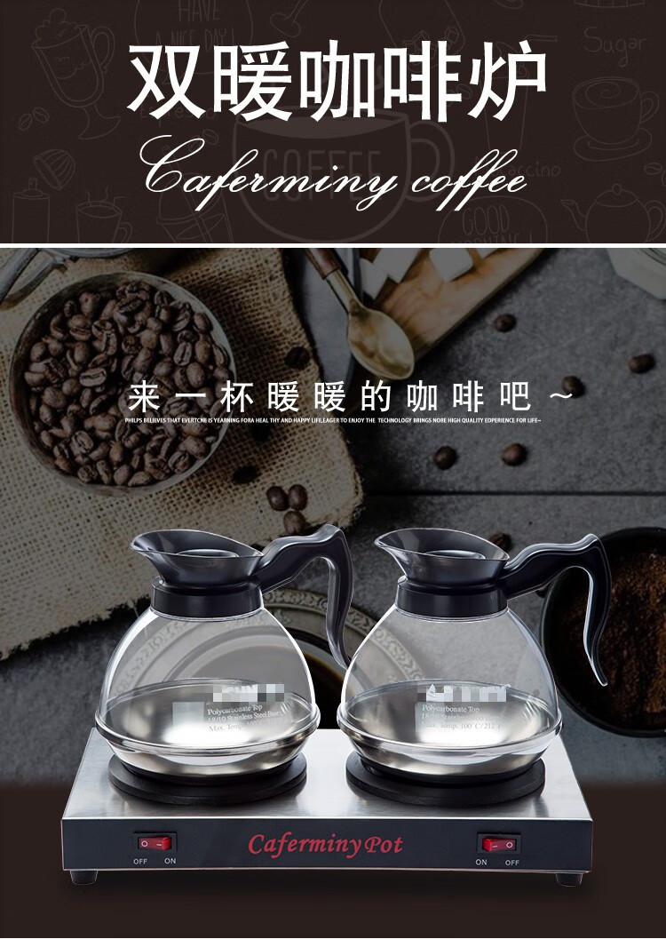 Fanyu Double Warm Coffee Insulation Stove Double-Head Coffee Pot Heating and Insulation Hotel Commercial Double-Head Heating and Insulation Stove Kettle American J Coffee Pot