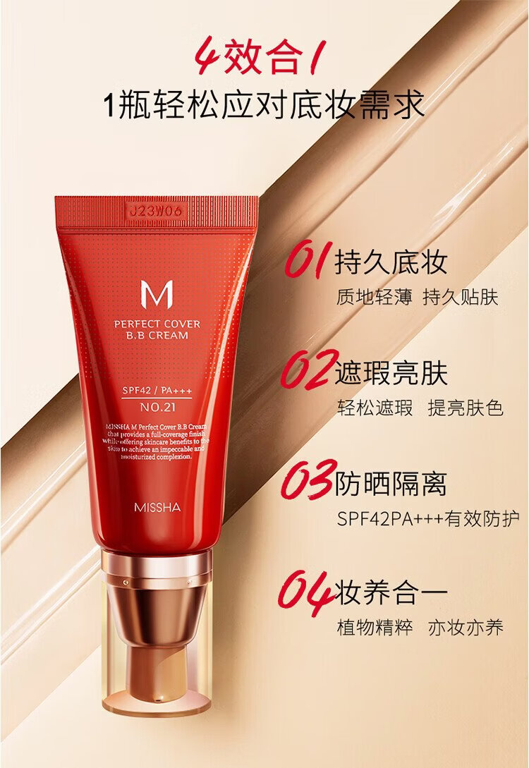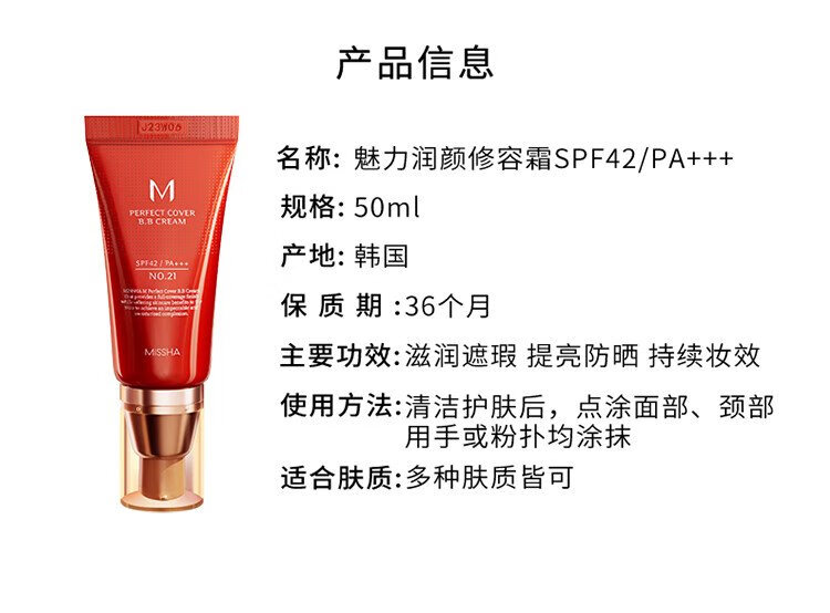 MISSHA Red BB Charming Moisturizing and Repairing Cream SPF42/PA+++ Sunscreen and Whitening Classic No. 21 New Year Gift