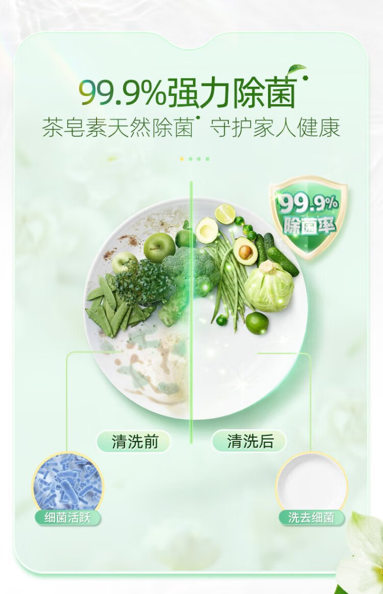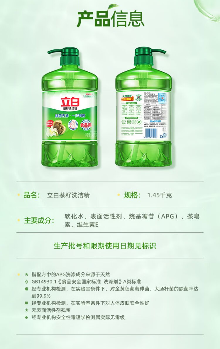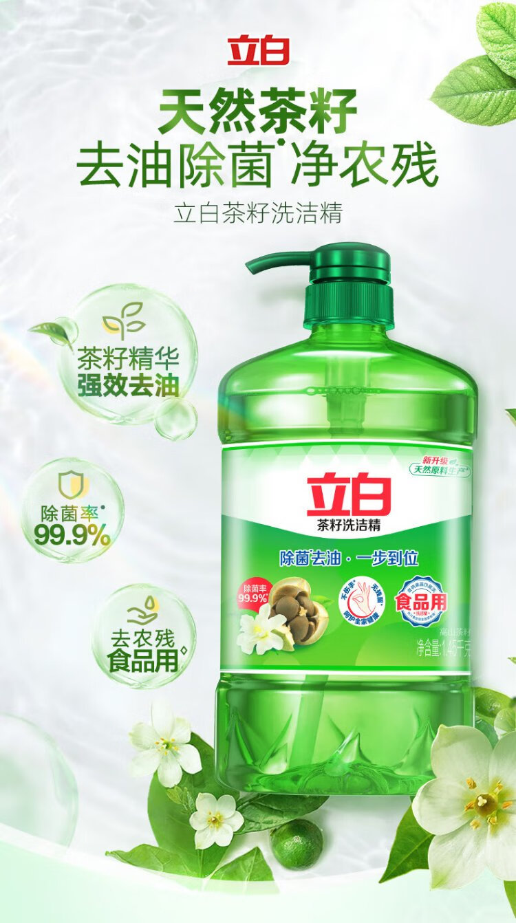 Liby tea seed dishwashing liquid 2.9kg Class A decontamination cleansing 99% sterilization and oil removal quick and non-hurt hand washing liquid dishwashing liquid