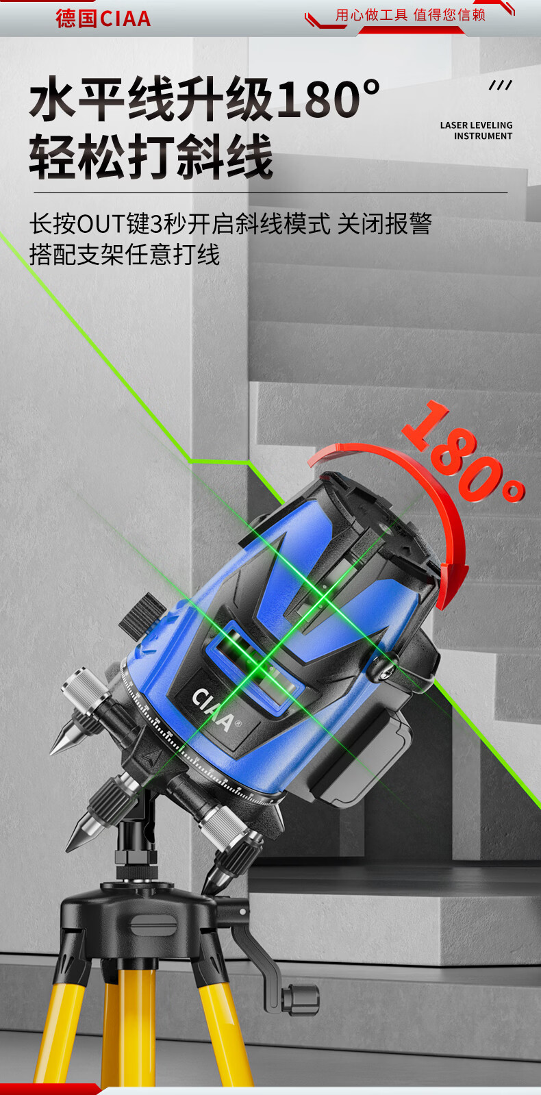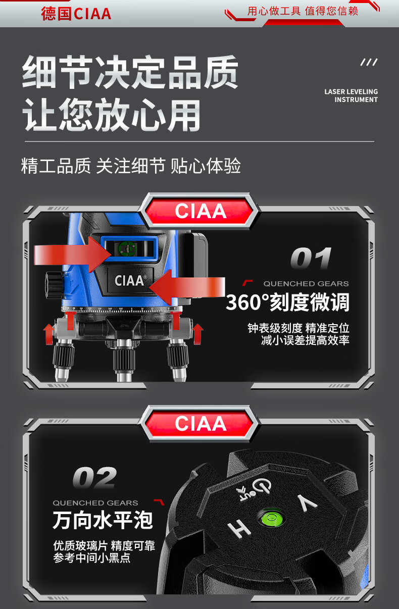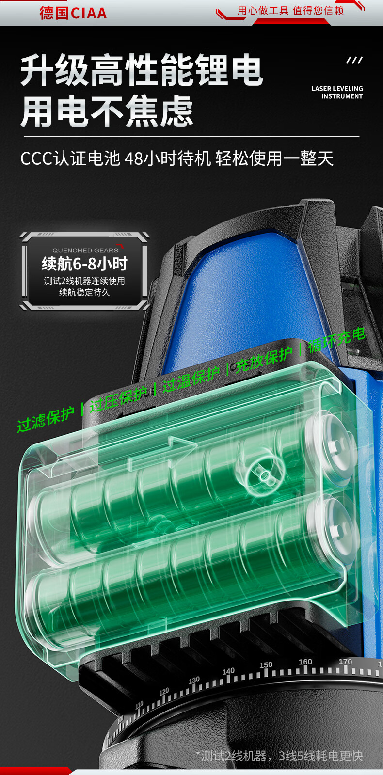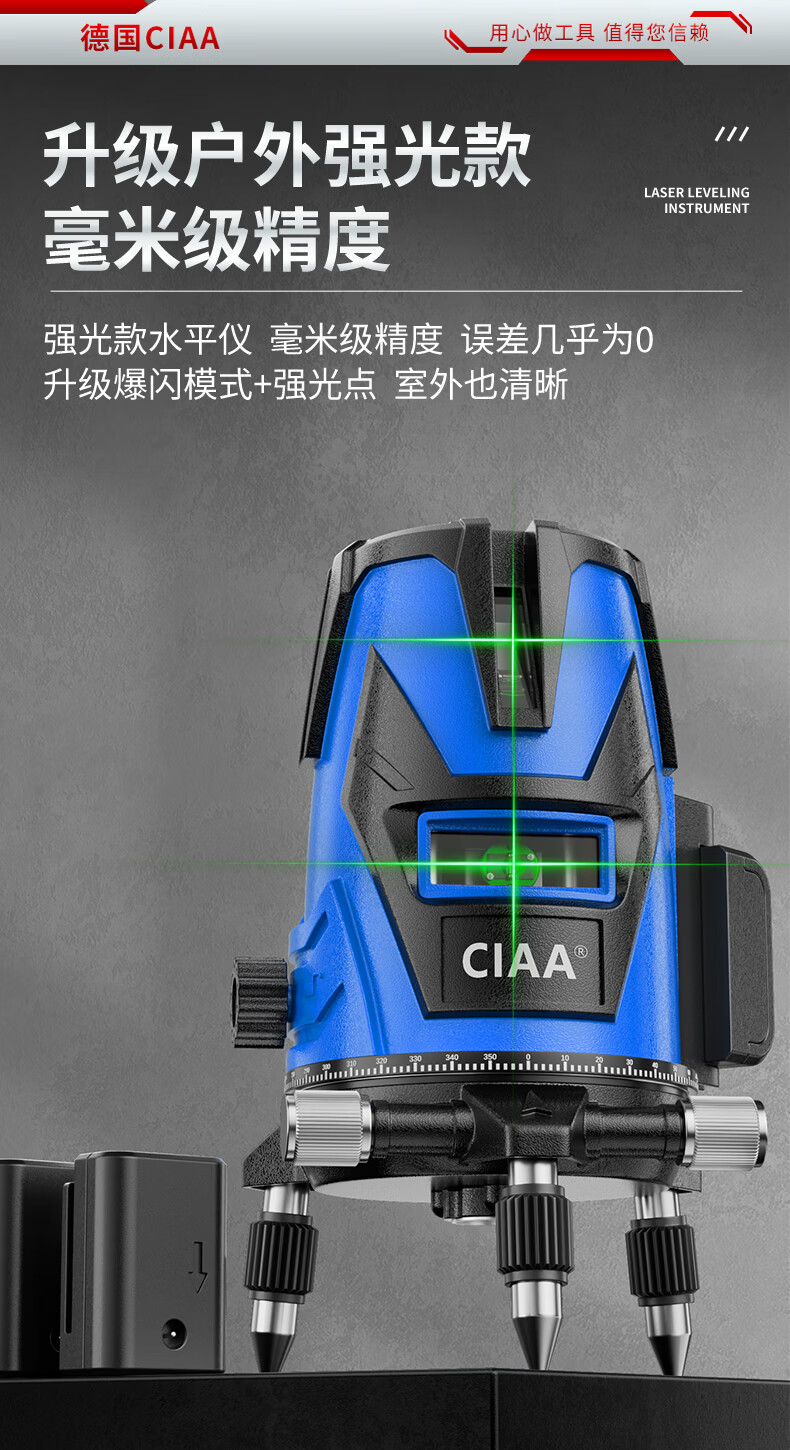 CIAA Germany infrared level meter green light laser outdoor strong light level meter high-precision portable wall-mounted water level meter high-precision green light 2 lines + two batteries and one charge
