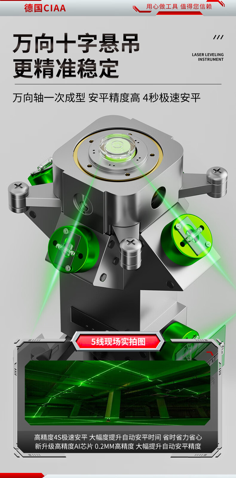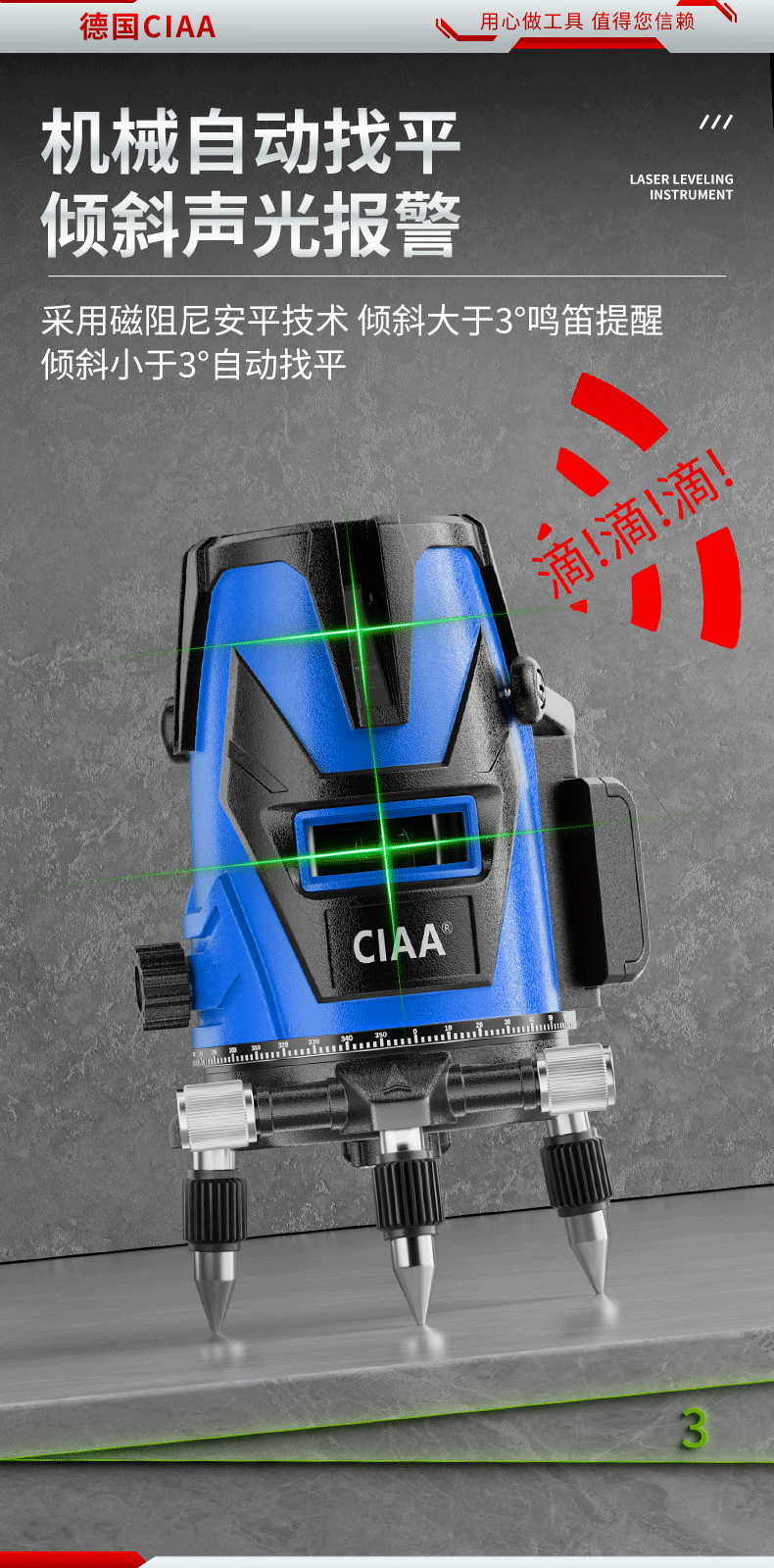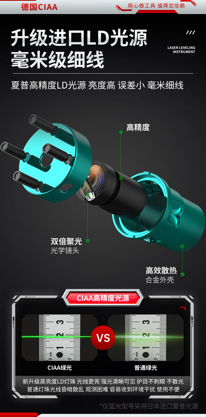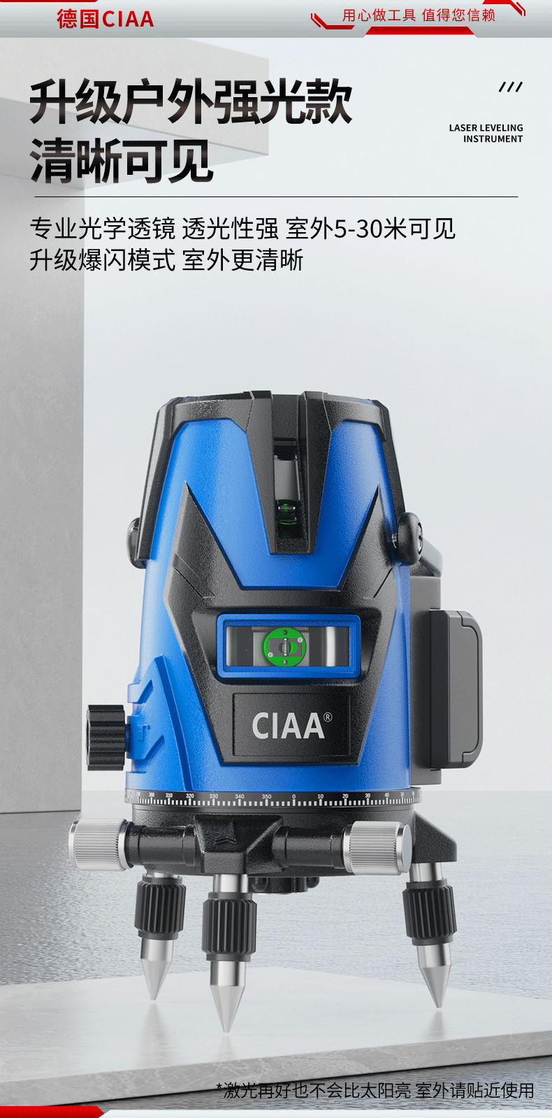 CIAA Germany infrared level meter green light laser outdoor strong light level meter high-precision portable wall-mounted water level meter high-precision green light 2 lines + two batteries and one charge