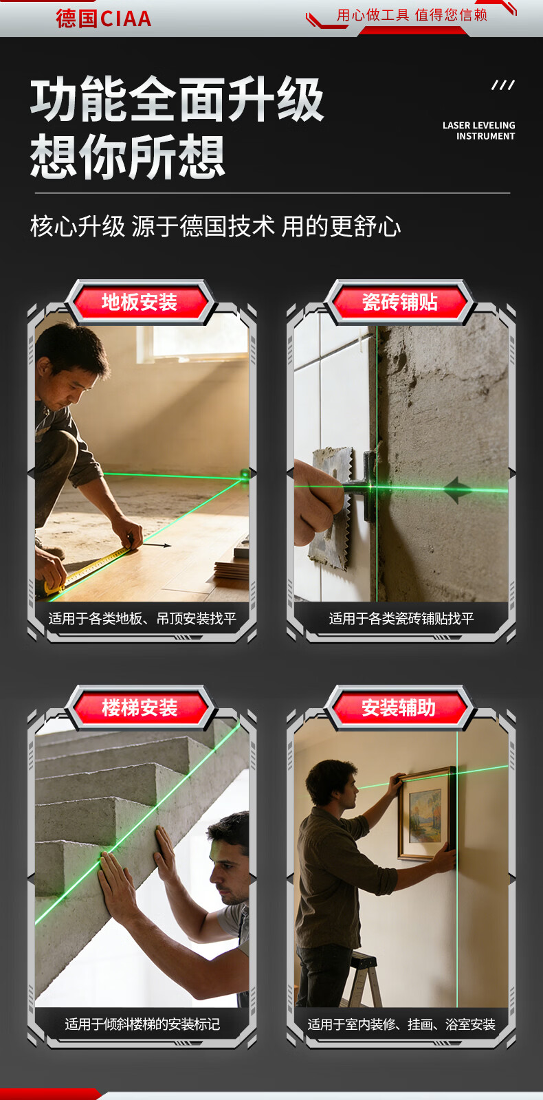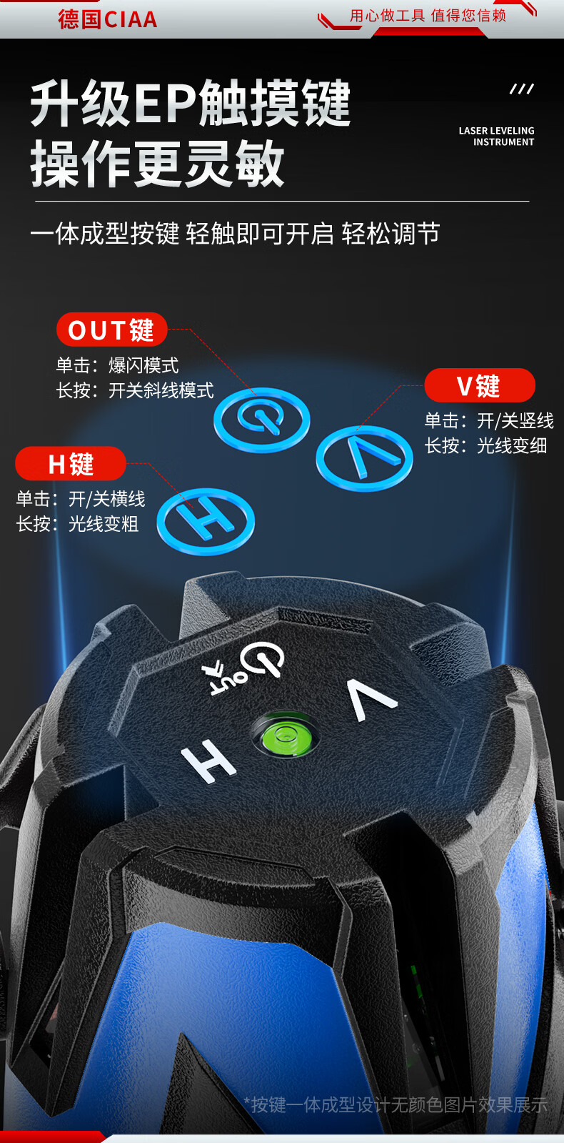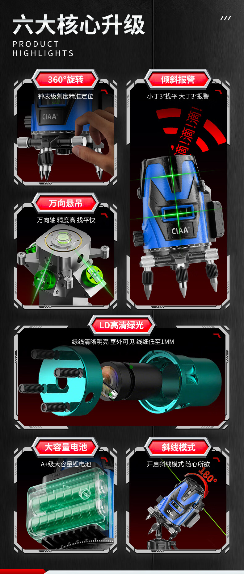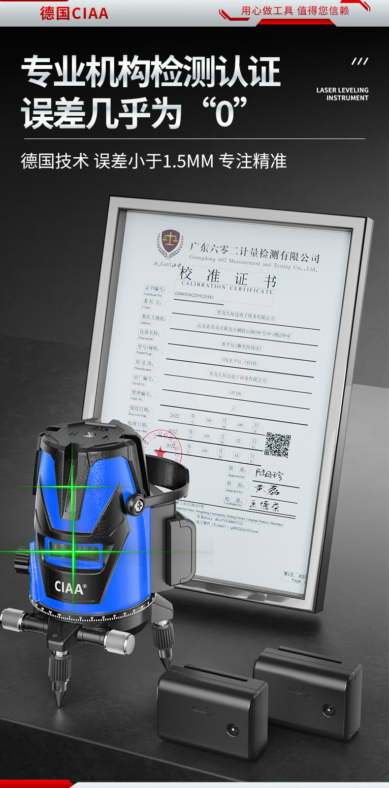 CIAA Germany infrared level meter green light laser outdoor strong light level meter high-precision portable wall-mounted water level meter high-precision green light 2 lines + two batteries and one charge