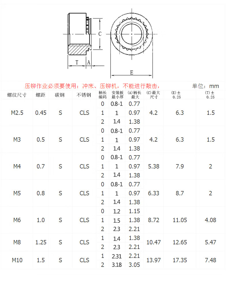 Guwanji pressure rivet nut 304 stainless steel pressure rivet nut pressure rivet parts round pressure rivet nut pressure plate nut national standard list CLS-M4-2 (20 pieces) plate thickness 1.4mm