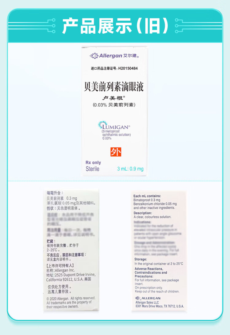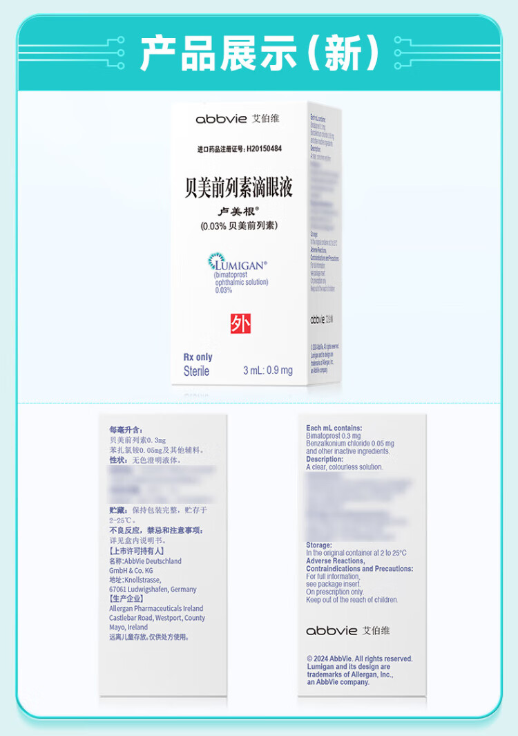 Original imported Lumeigen Bemetoprost eye drops 3ml 0.9mg/box