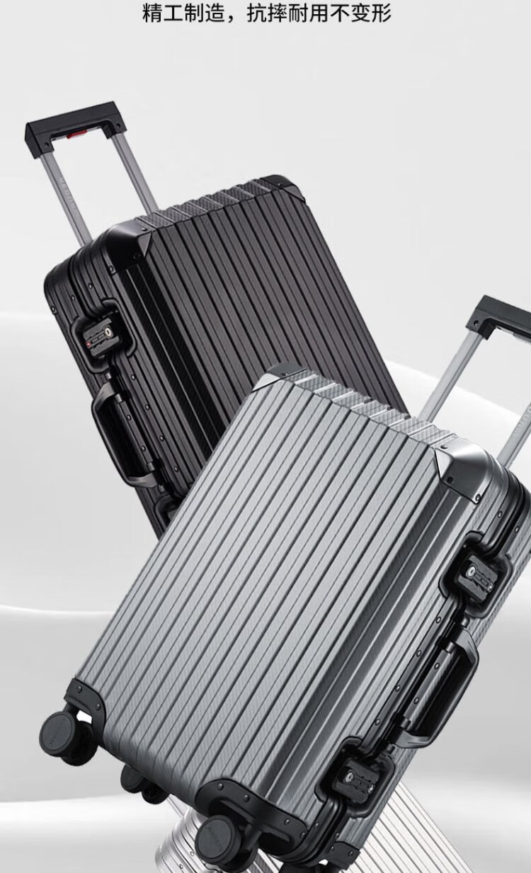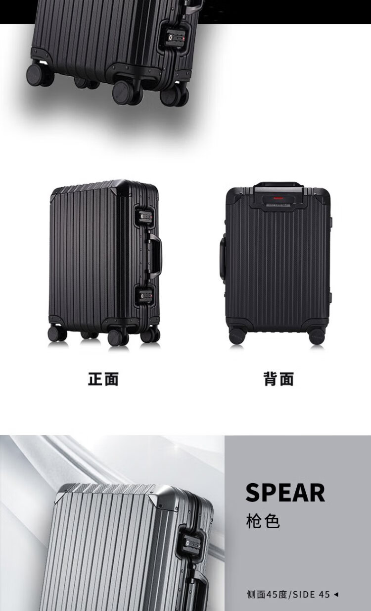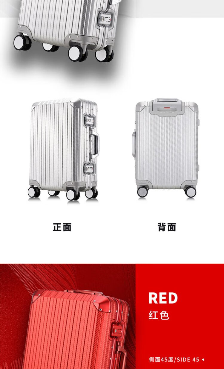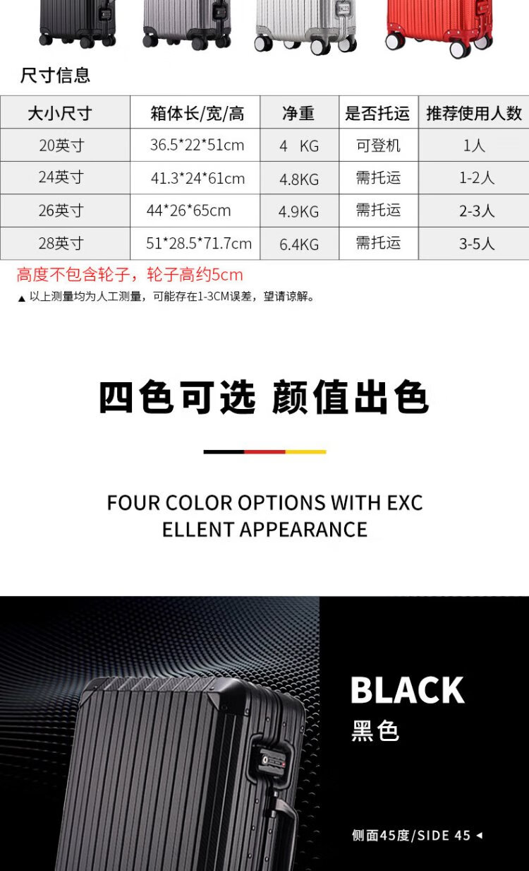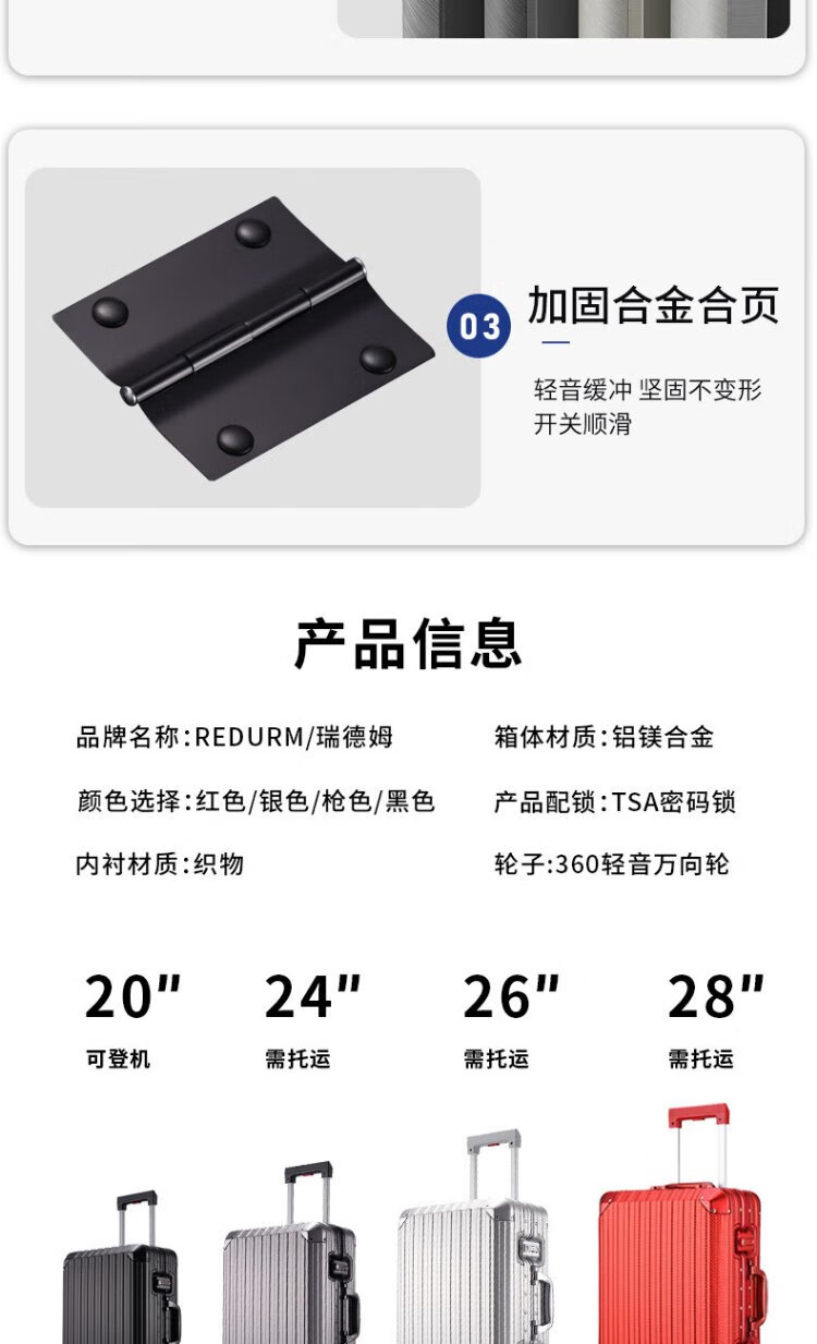 REDURM all-aluminum-magnesium alloy large-capacity suitcase, lightweight boarding suitcase, business trip trolley case, high-looking obsidian black - flagship 3D pattern scratch-resistant and wear-resistant hard case 20 inches - boarding