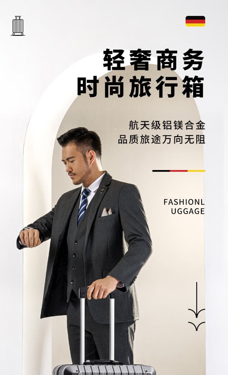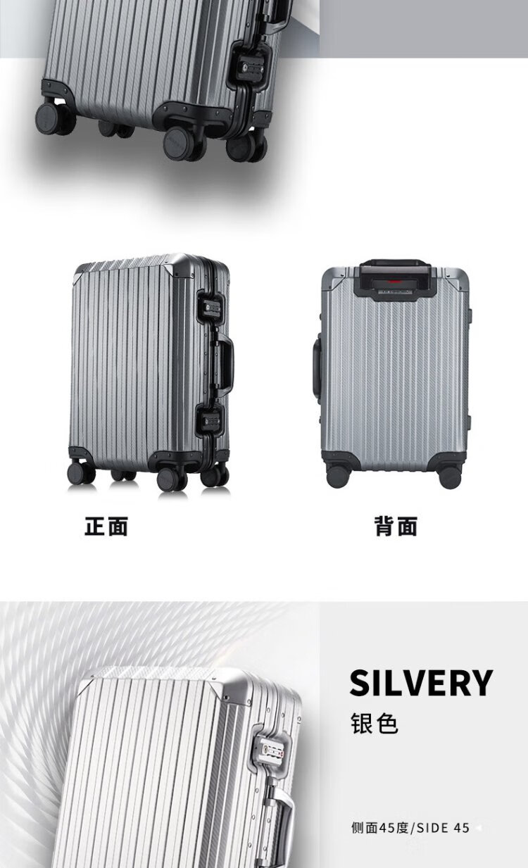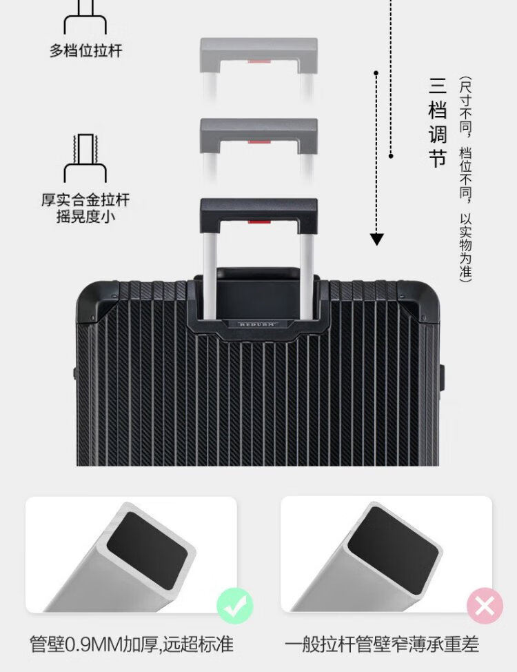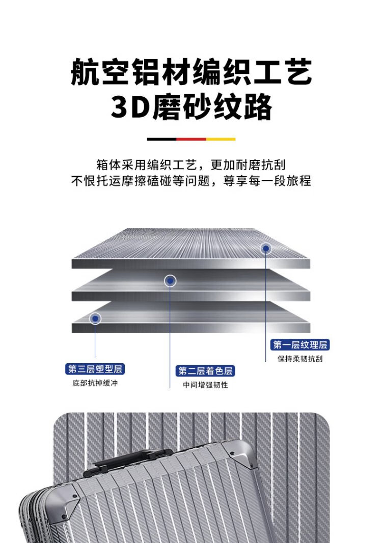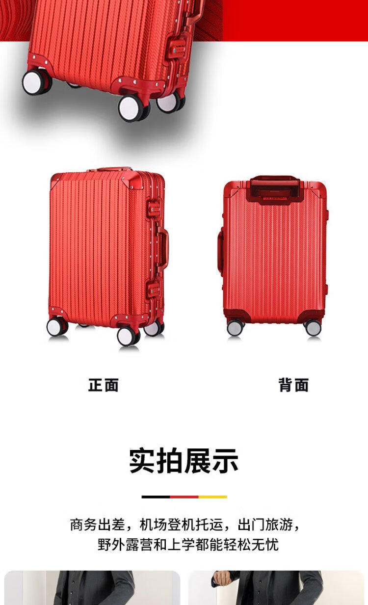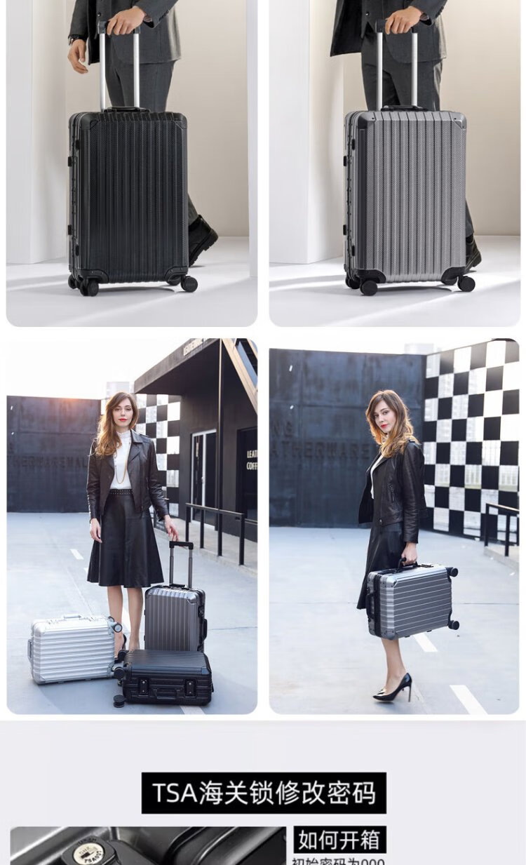 REDURM all-aluminum-magnesium alloy large-capacity suitcase, lightweight boarding suitcase, business trip trolley case, high-looking obsidian black - flagship 3D pattern scratch-resistant and wear-resistant hard case 20 inches - boarding