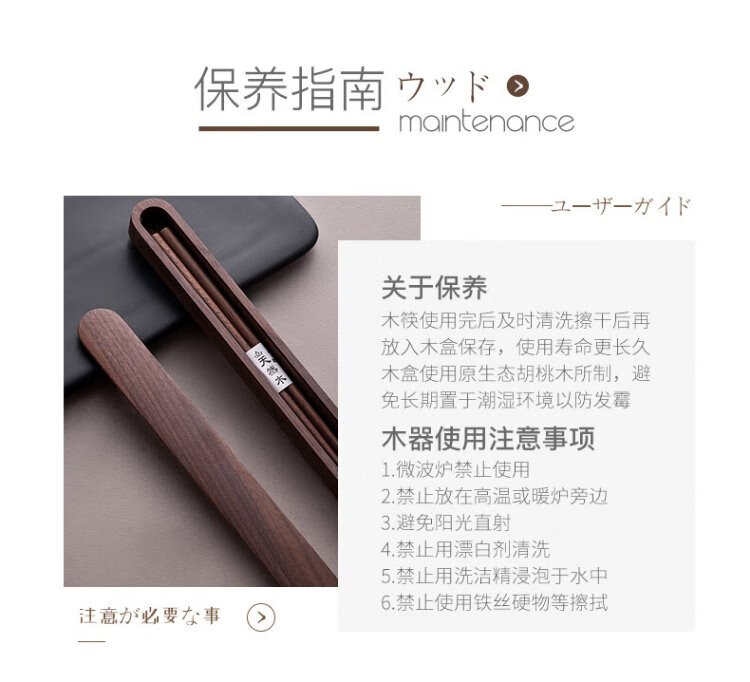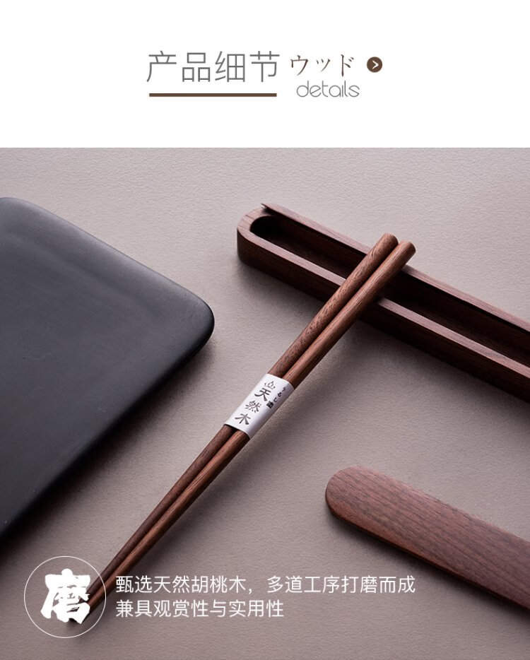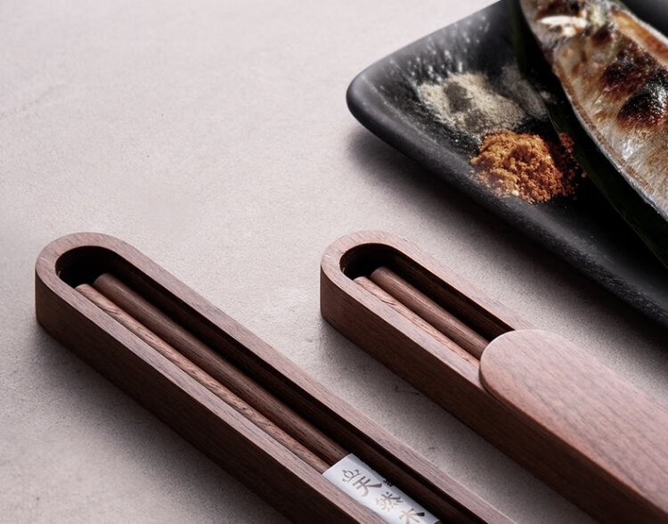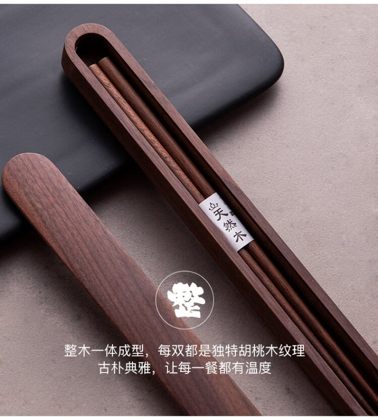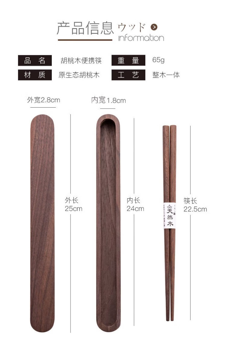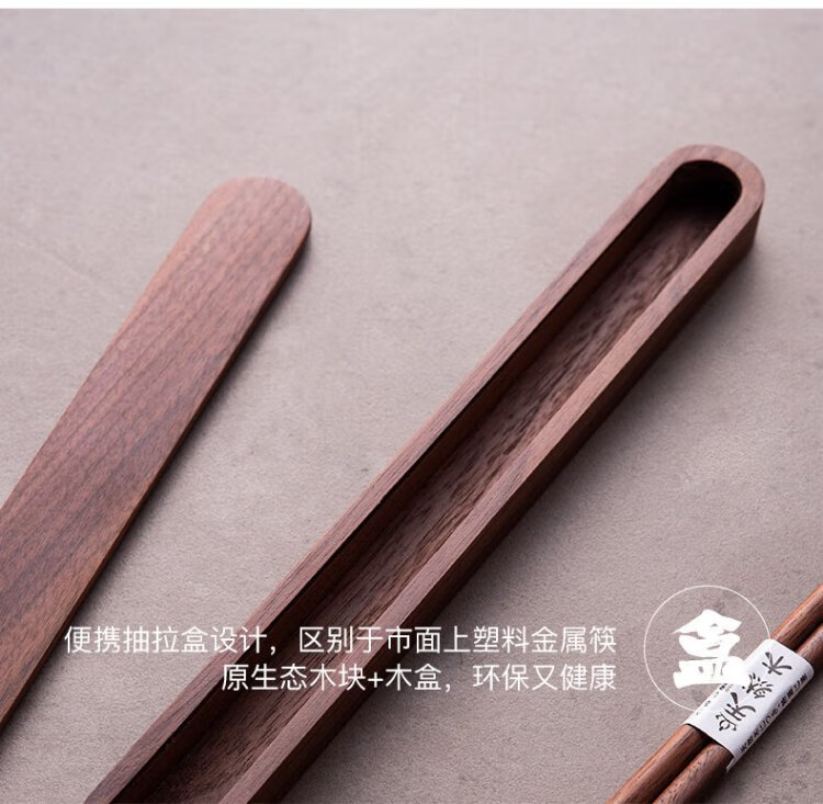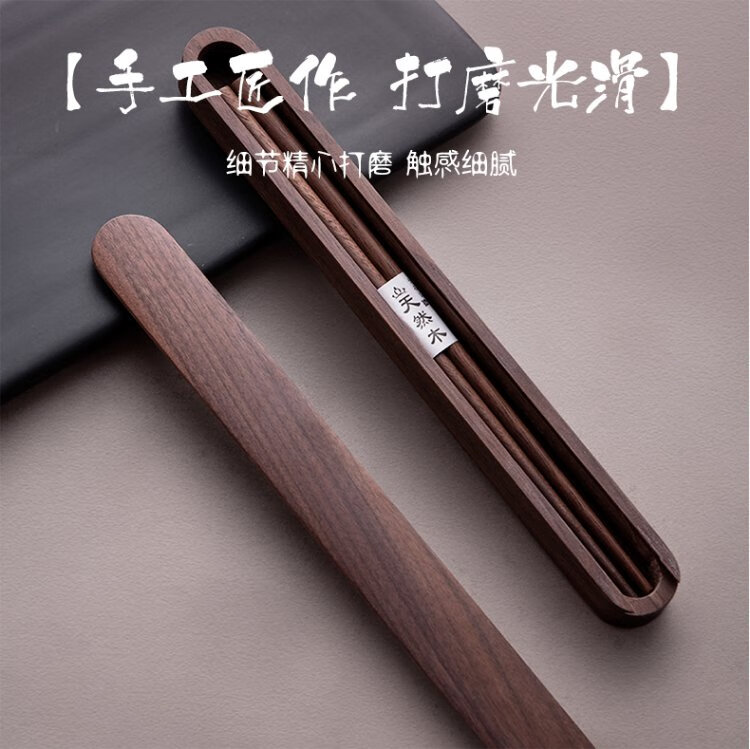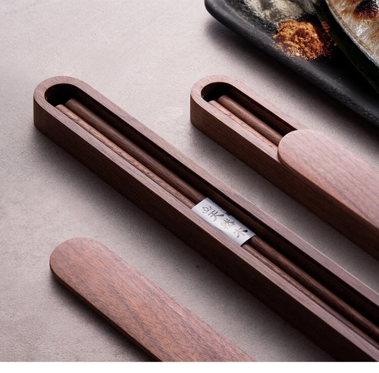 Durable walnut chopstick box portable tableware set Japanese environmentally friendly chopstick box single high-end student portable chopstick box walnut (1 chopstick + 1 box)