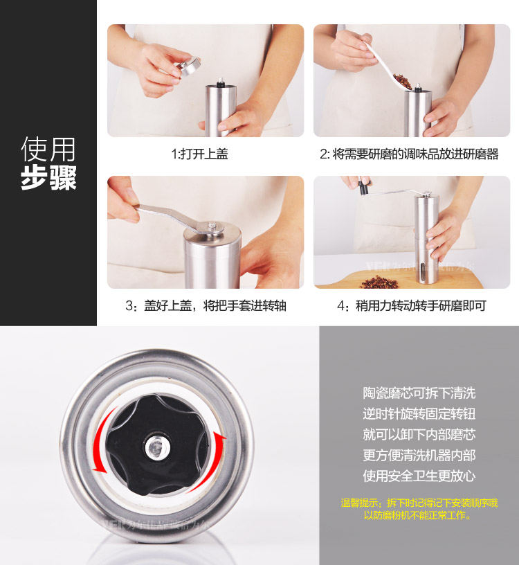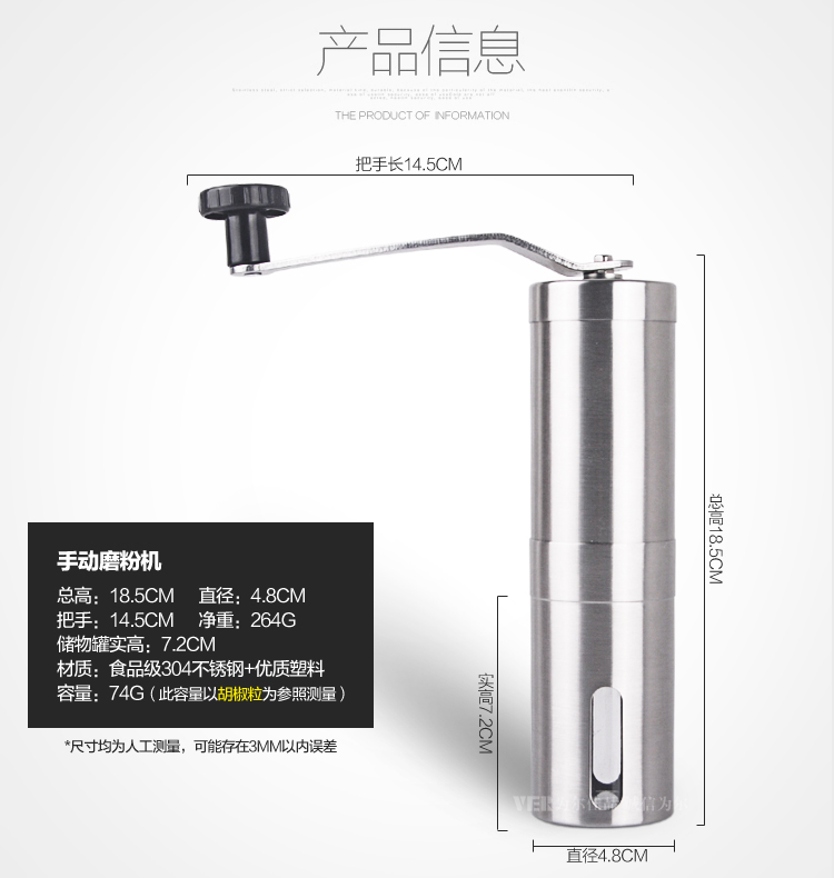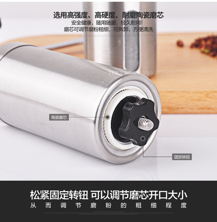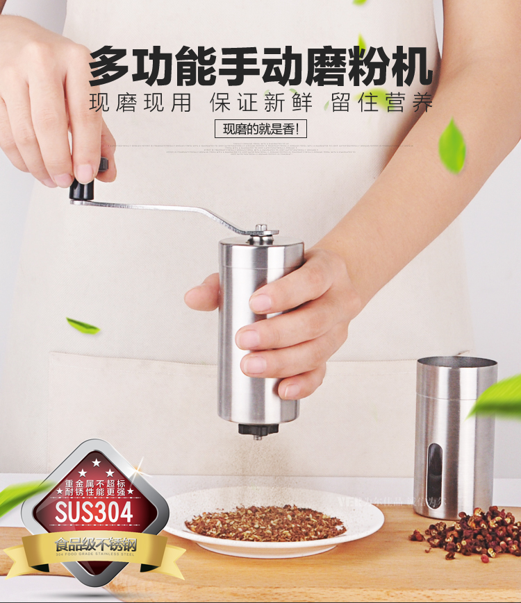 Weierjia 304 stainless steel grinding bottle pepper grinder pepper grinder coffee black pepper manual grinder 304 grinder large