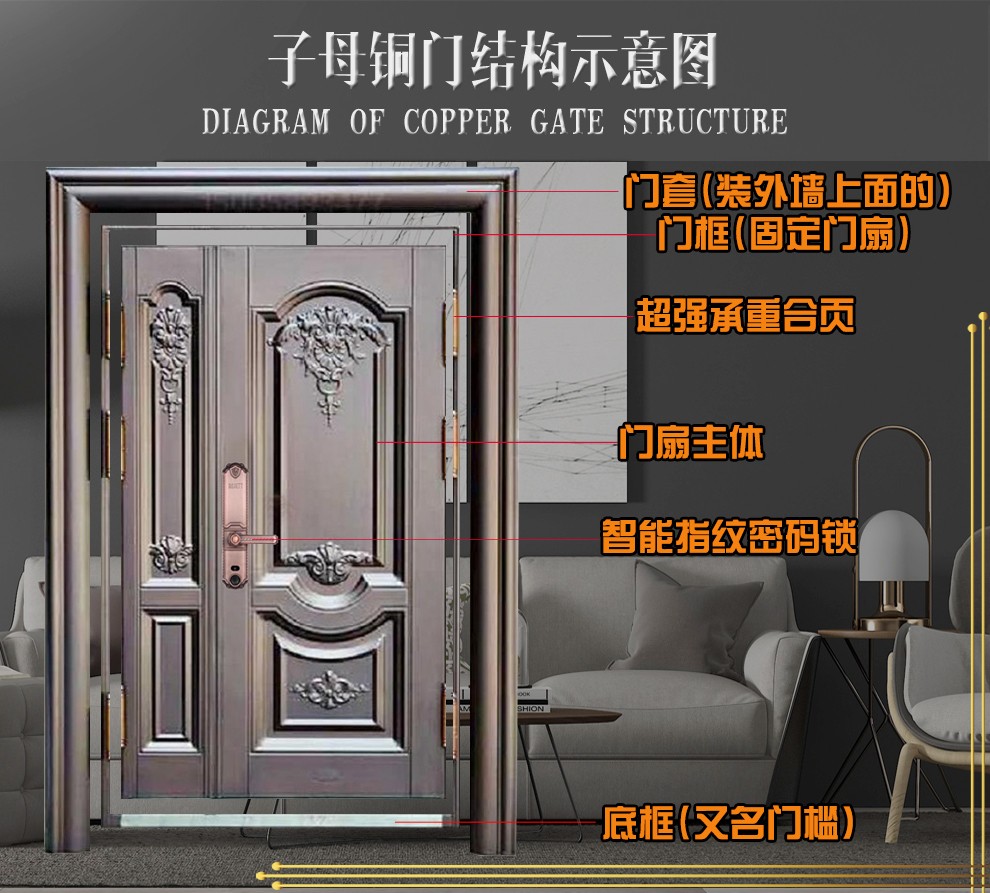 Yuzhu Imitation Bronze Entry Gate, Mother-and-Female Door, Fingerprint Password Lock, Entry Door, Smart Home Living Room Door, Anti-theft Class A Door, Chinese Style Door, Pastoral Modern Single Door, Factory Direct Sales Door, Customized Special Shot