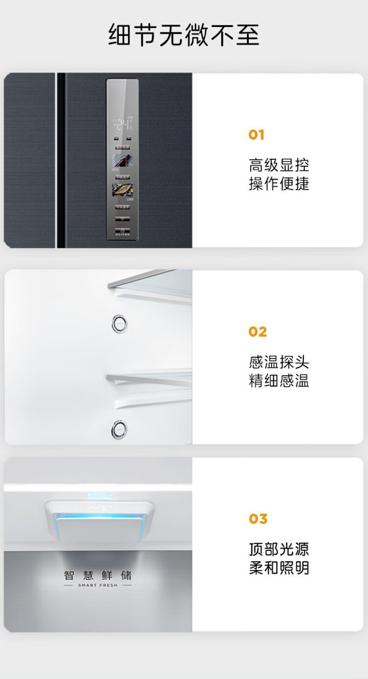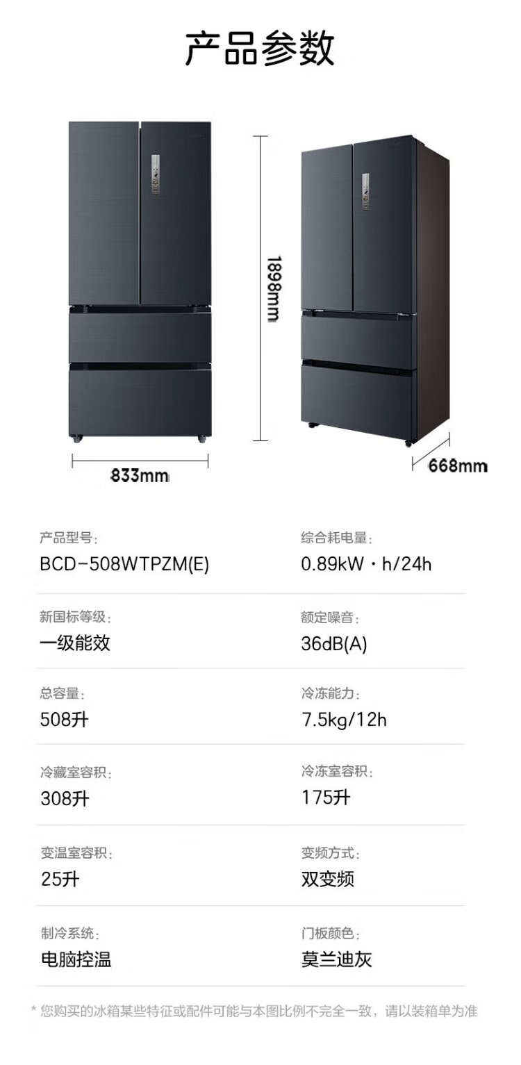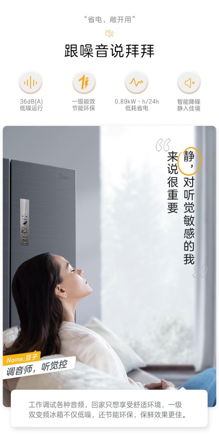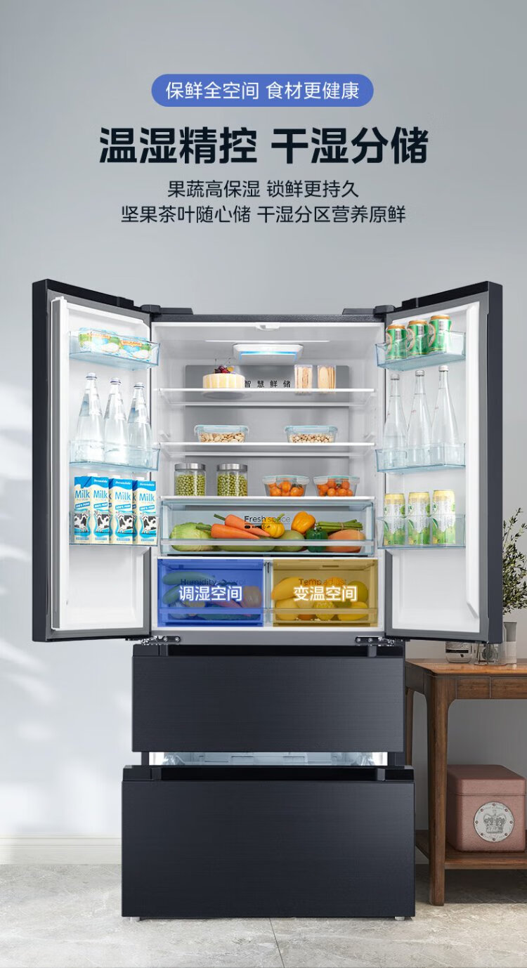 Midea 508-liter French-style multi-door household refrigerator with sterilization and odor-purifying dual systems large-capacity refrigerator household appliances true fragrance series BCD-508WTPZM(E) Subsidy Instant Discount 508-liter dual-system odor-purifying refrigerator