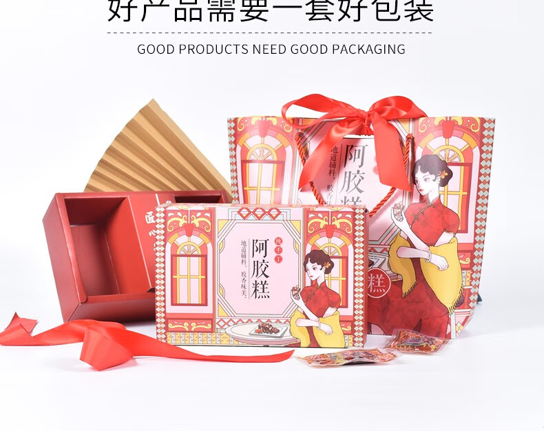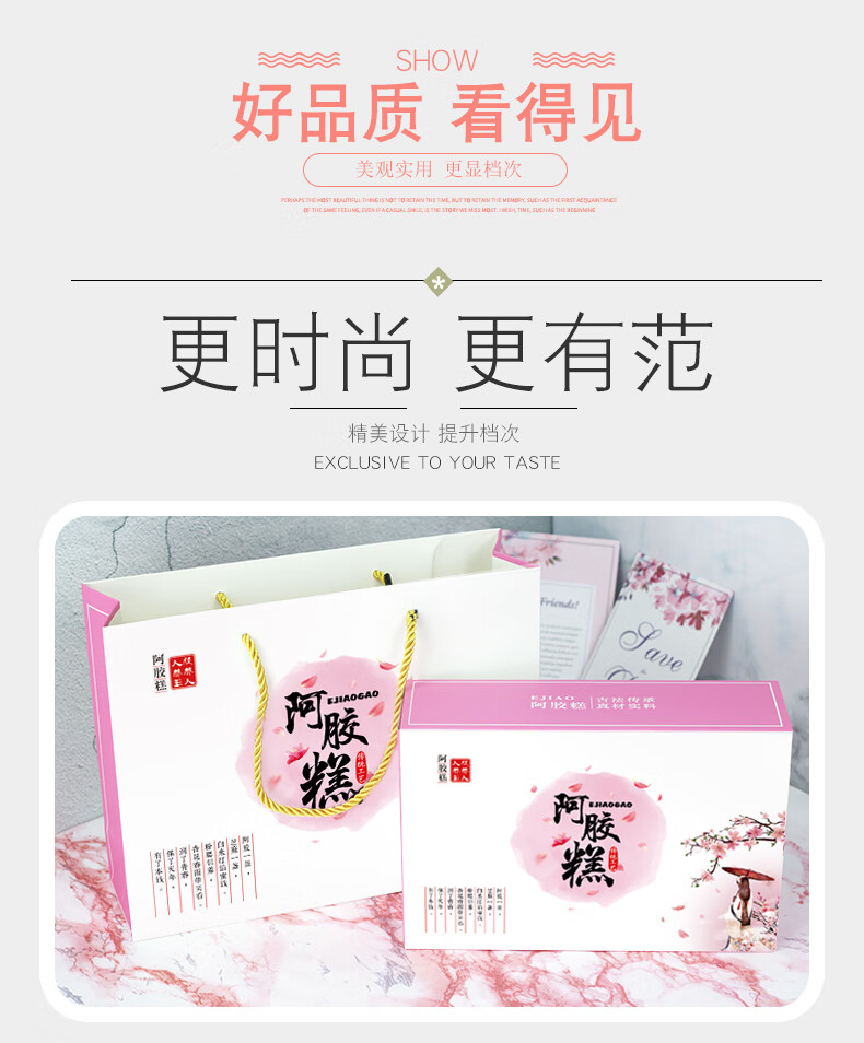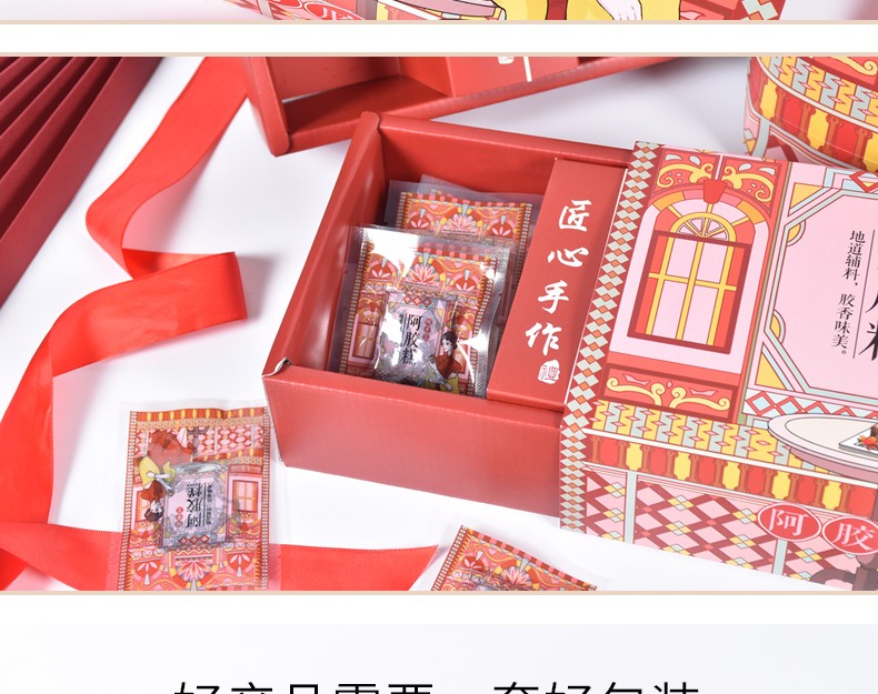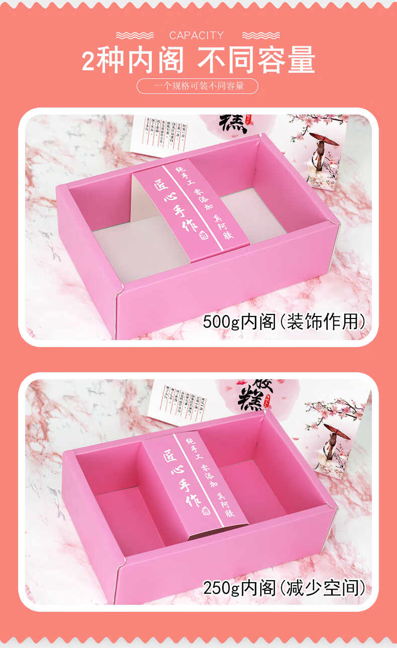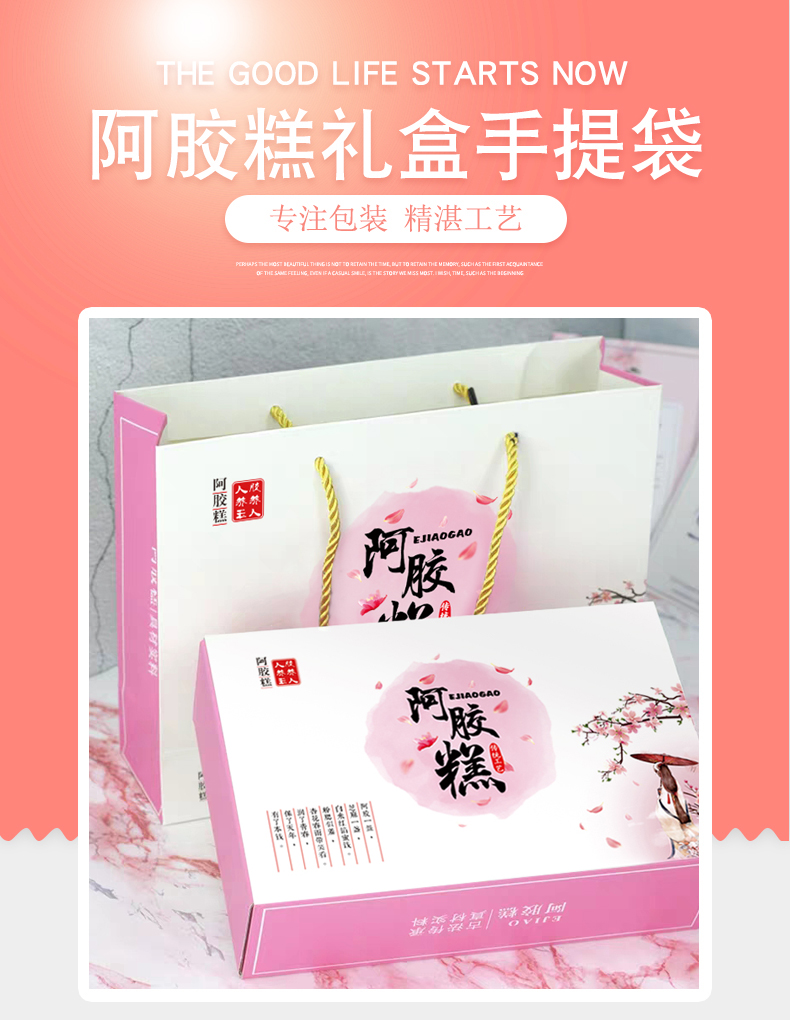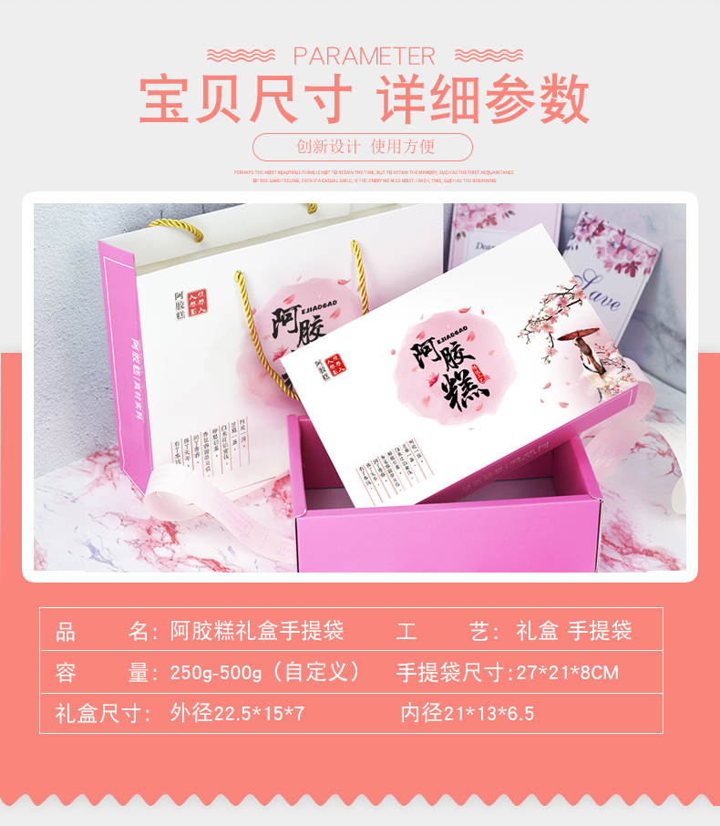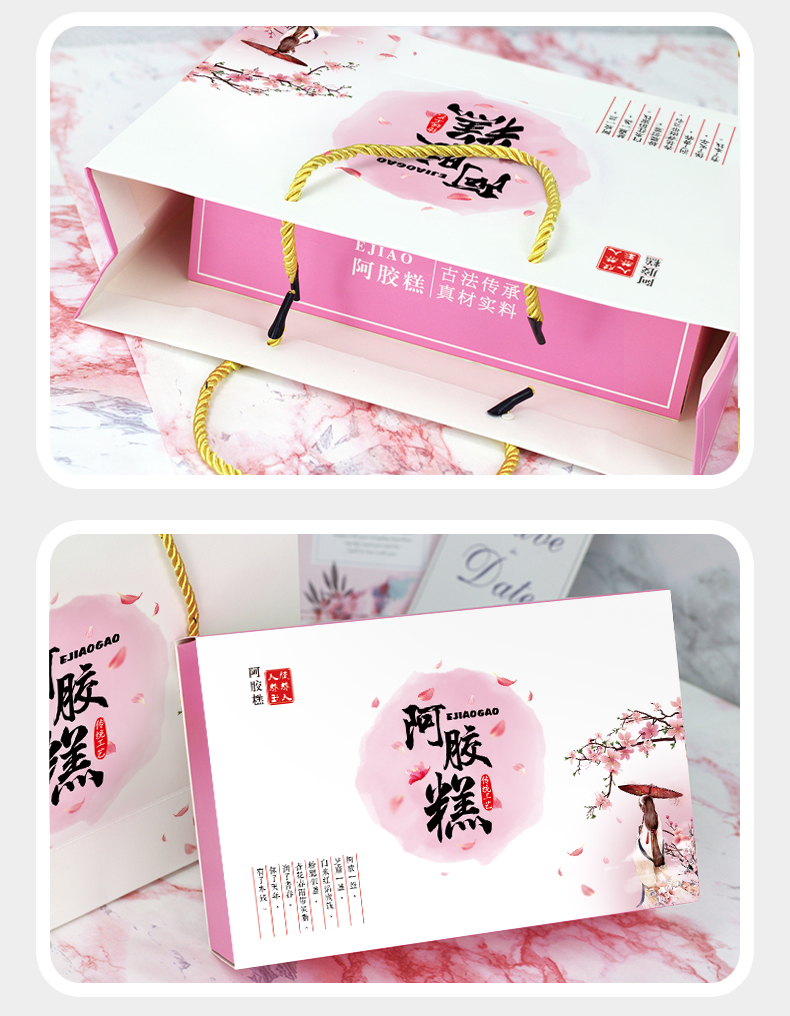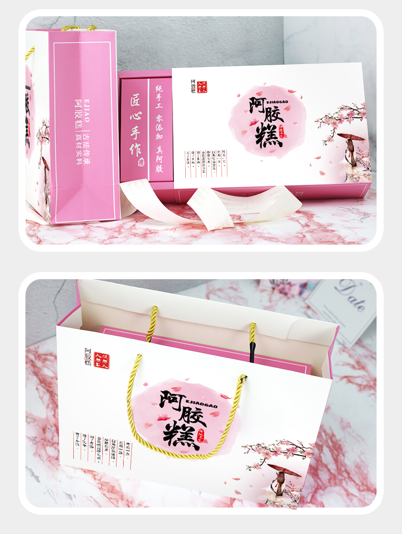 Guangsu donkey hide gelatin cake packaging box gift box 250g/500g handbag gift paper box handmade donkey hide gelatin cake gift box high-end gift half catty box petal gift box 500g (10 sets)