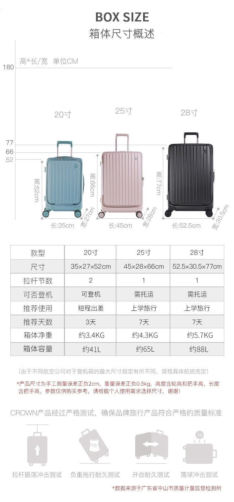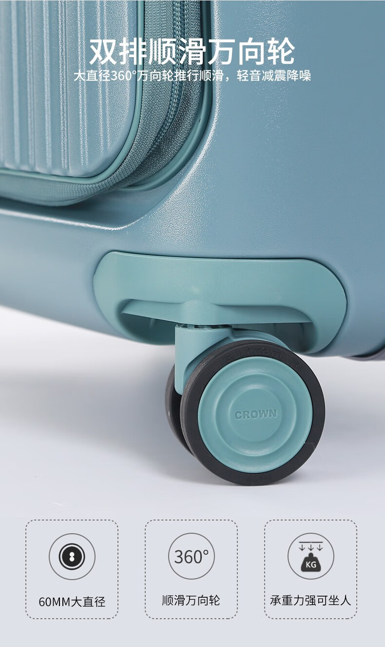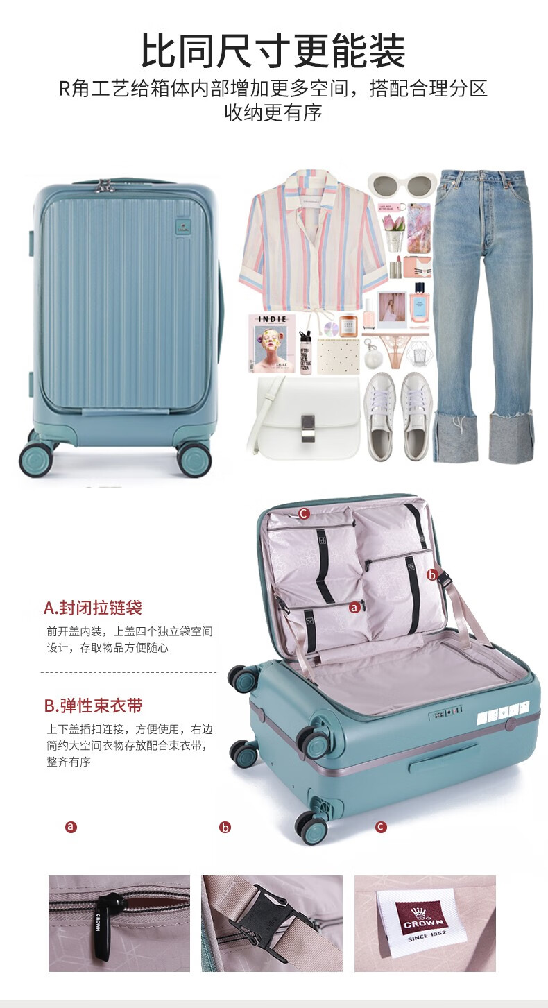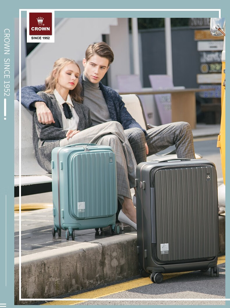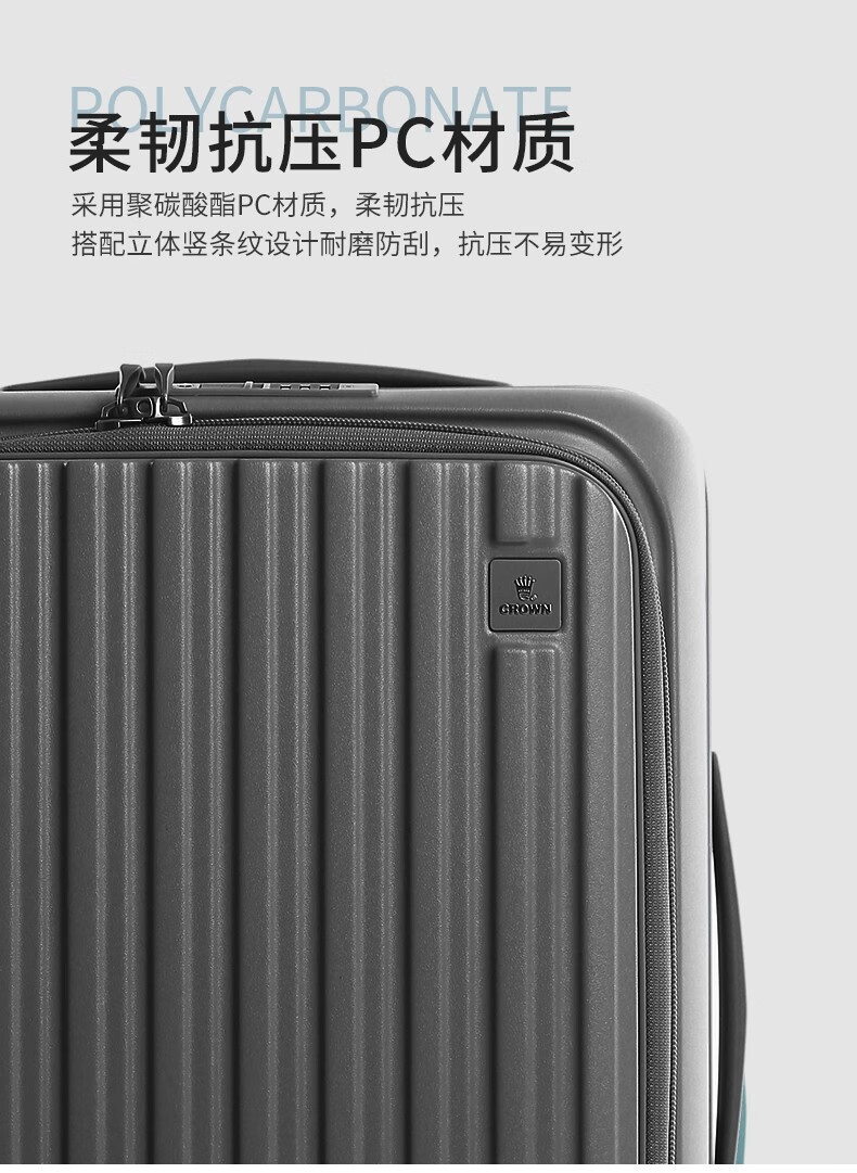 CROWN Trolley Case Zipper Aluminum Frame Suitcase Universal Wheel Front Opening Cover Side Opening Suitcase Travel Case 5278 Iron Gray Zipper 25 inches Need to be checked in
