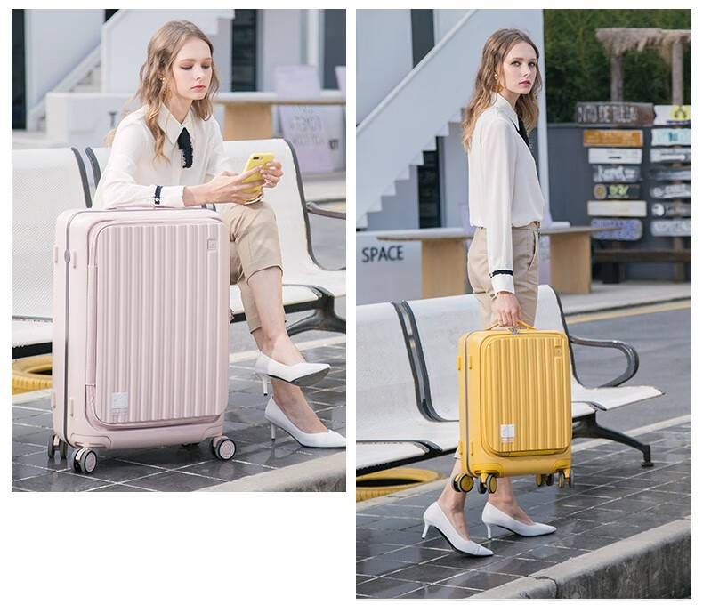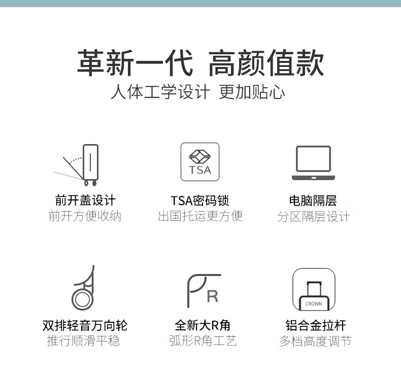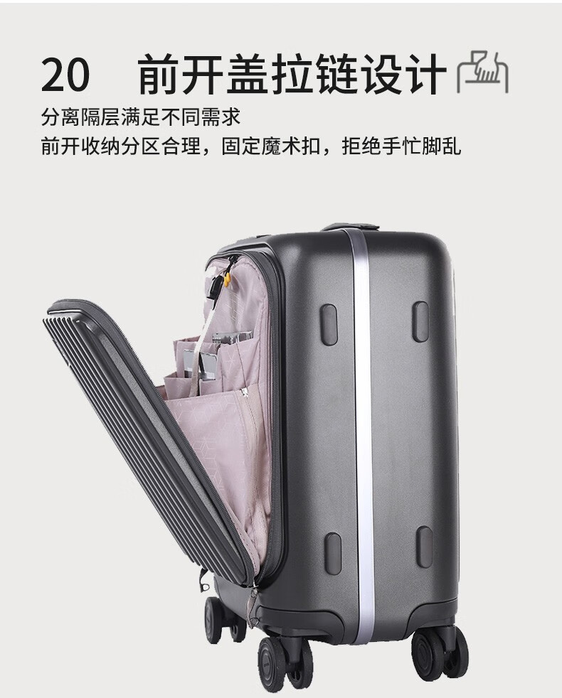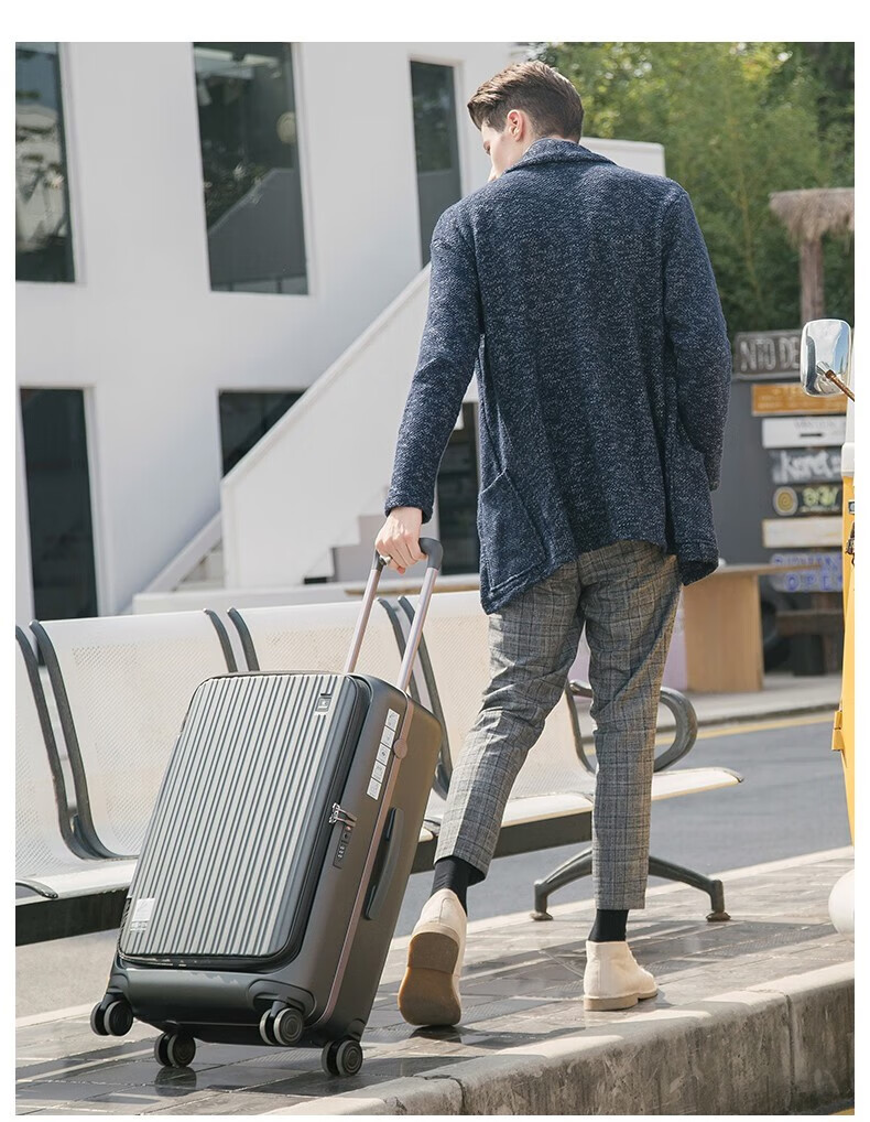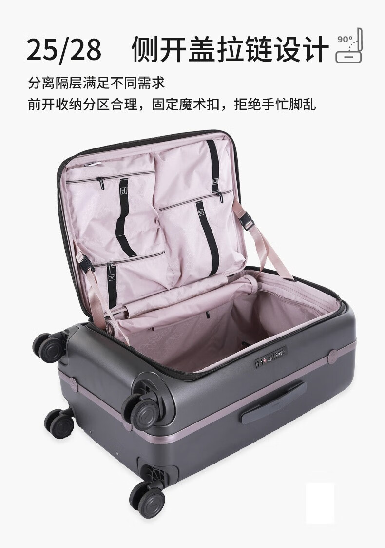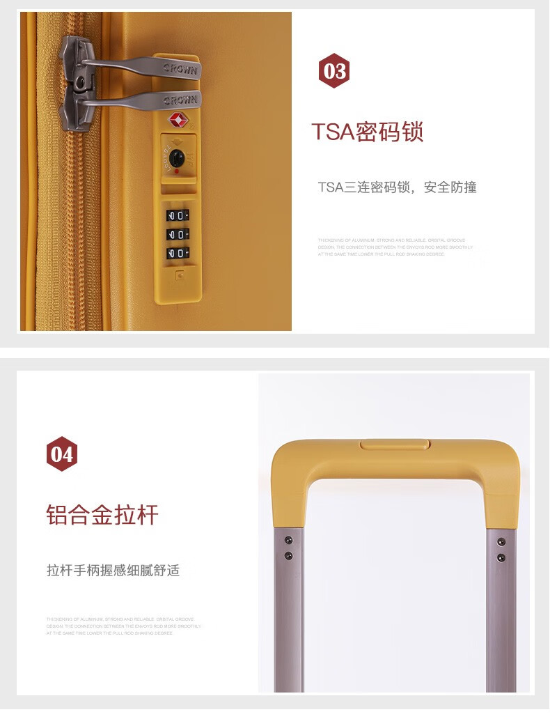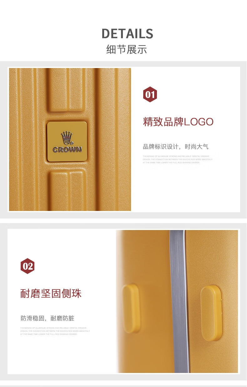CROWN Trolley Case Zipper Aluminum Frame Suitcase Universal Wheel Front Opening Cover Side Opening Suitcase Travel Case 5278 Iron Gray Zipper 25 inches Need to be checked in