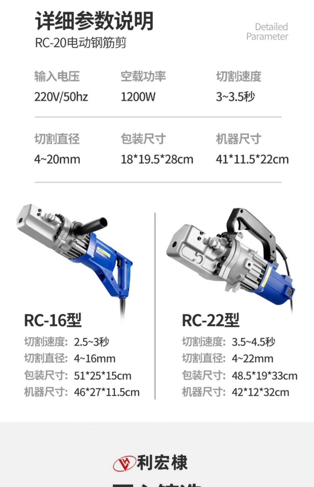 Lihongdi Electric Hydraulic Rebar Shearing Rebar Cutting Machine Portable Rebar Quick Breaker Portable Rebar Shearing Machine RC-22 (4-22MM)