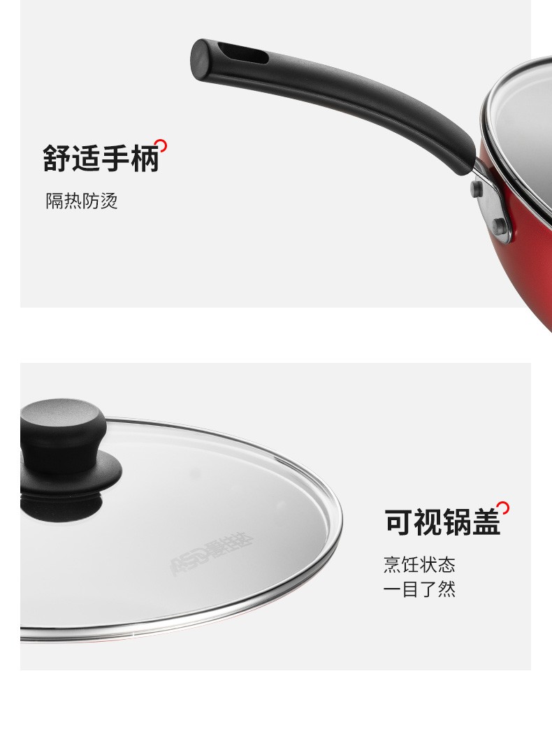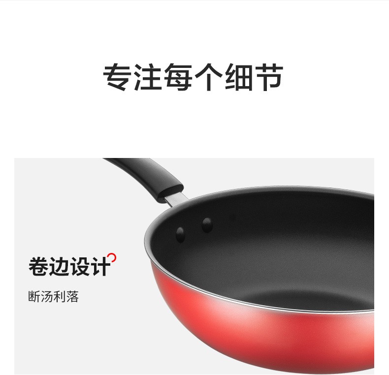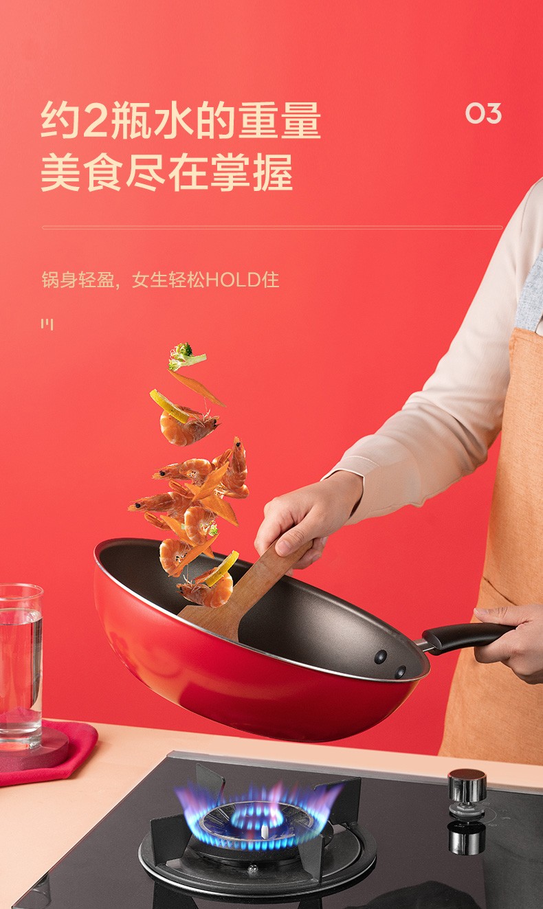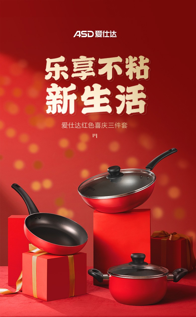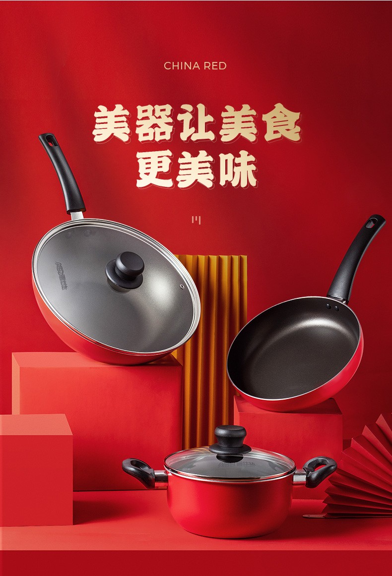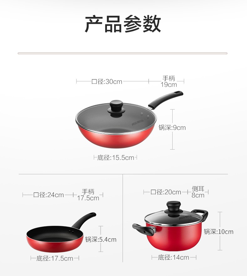 ASD non-stick pot set festive new non-stick less oil fume kitchen three-piece set pot for gas and open flame Chinese red PL03G1RWG
