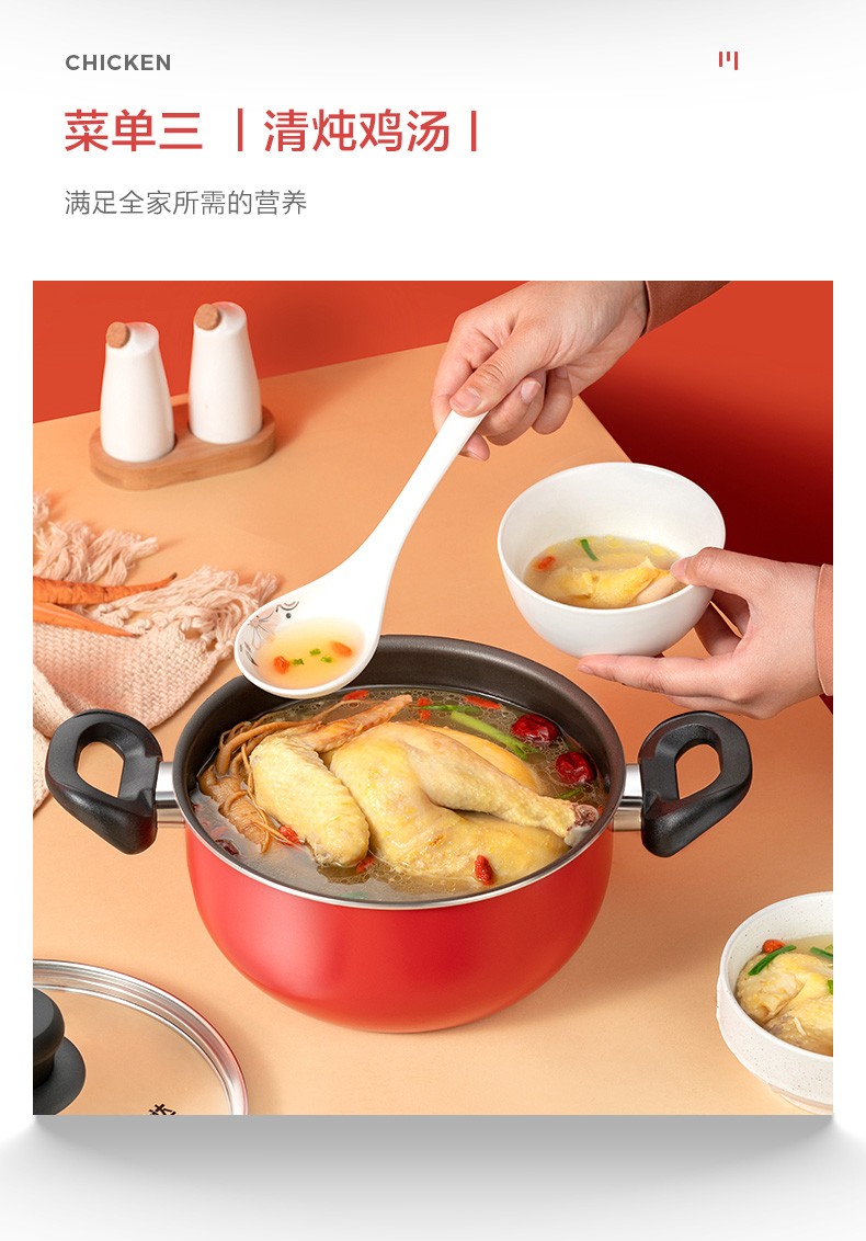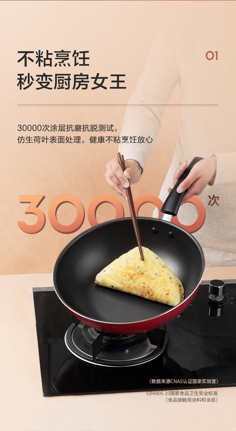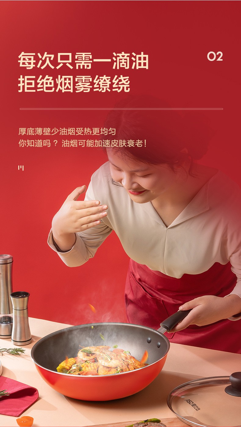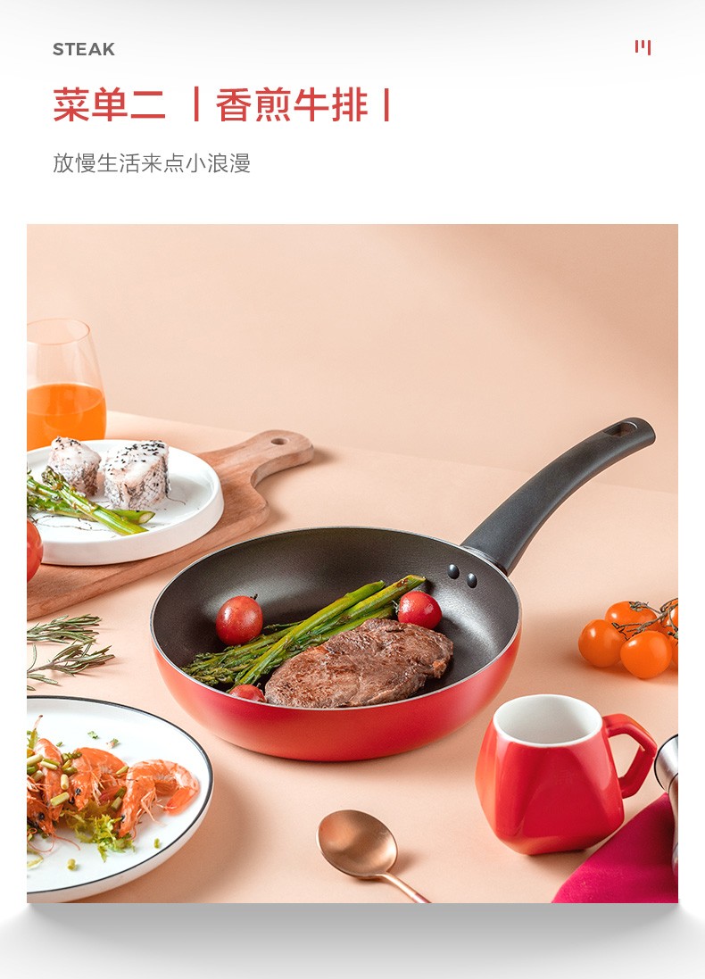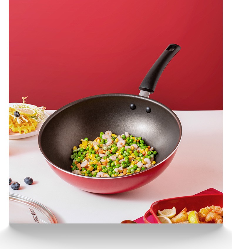 ASD non-stick pot set festive new non-stick less oil fume kitchen three-piece set pot for gas and open flame Chinese red PL03G1RWG
