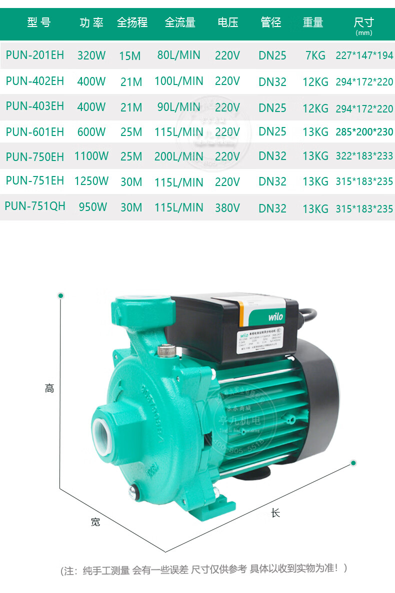 Wilo (WILO) German Wilo water pump PUN-201EH circulation pump PUN-601EH low noise new PUN-751EH booster pump PUN-750EH