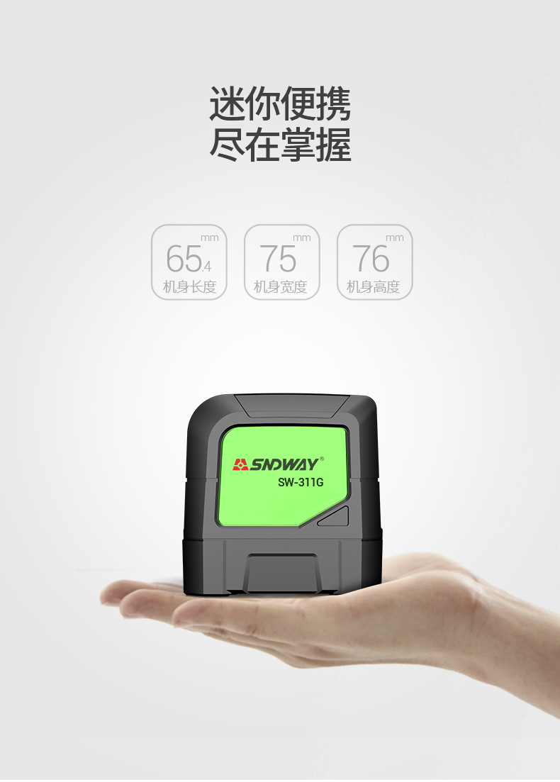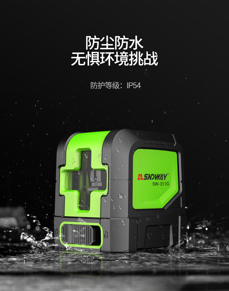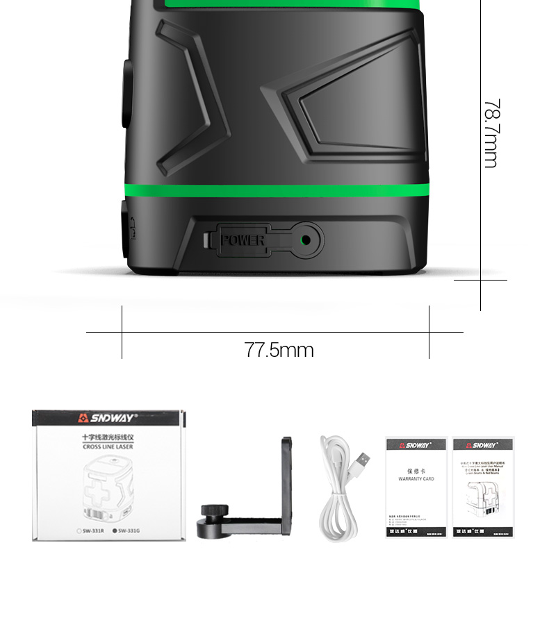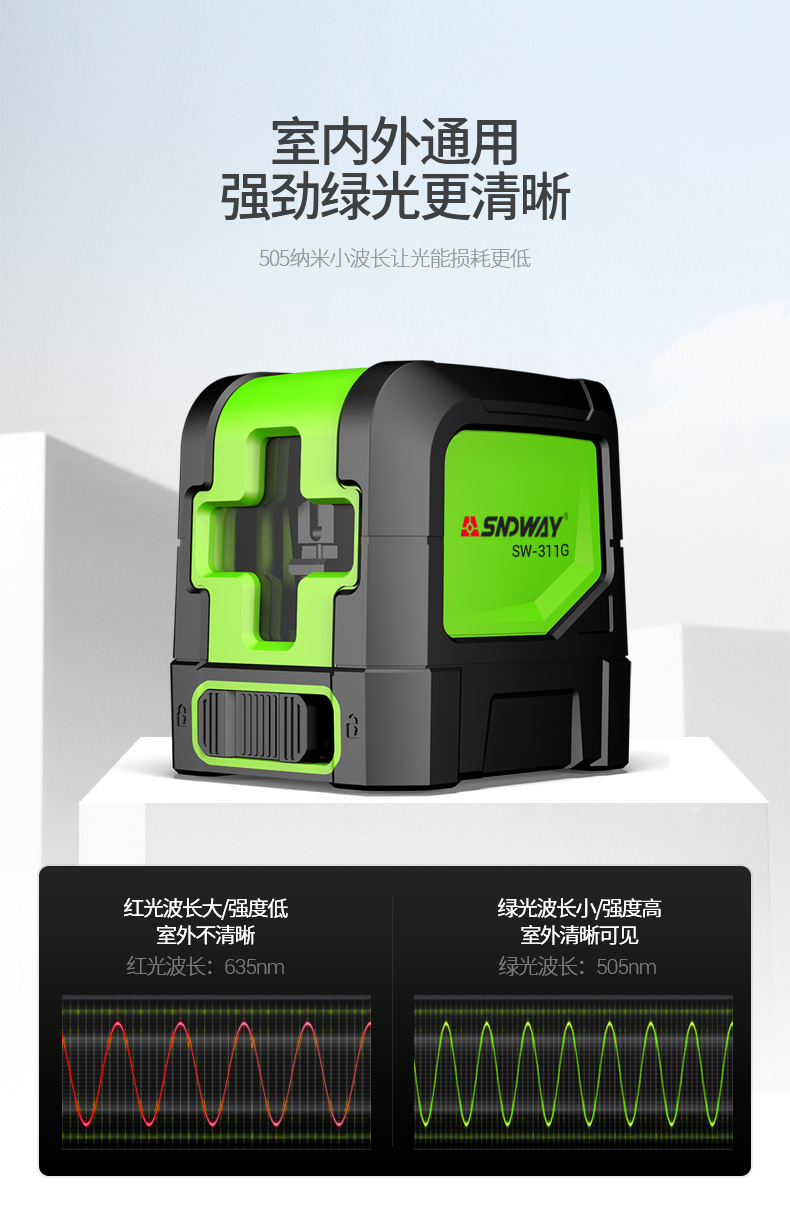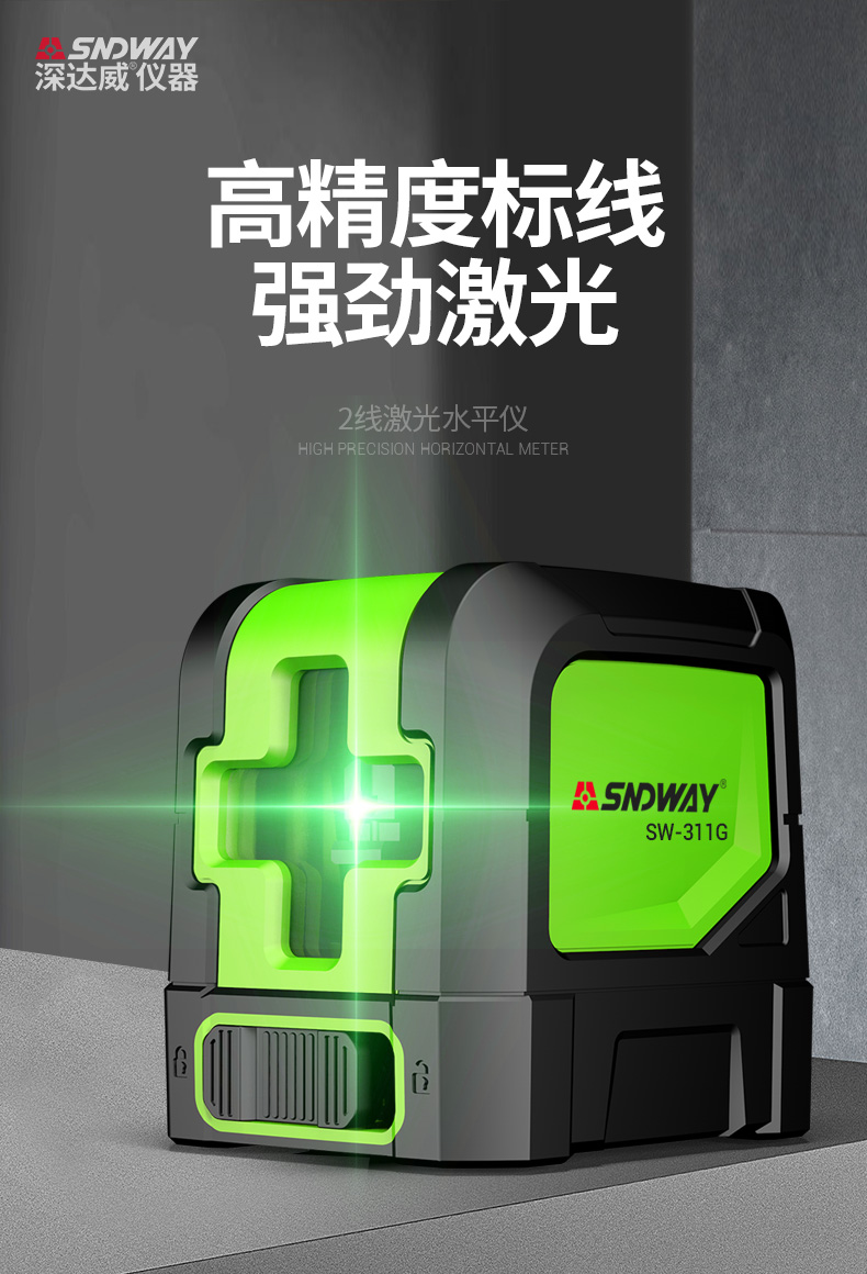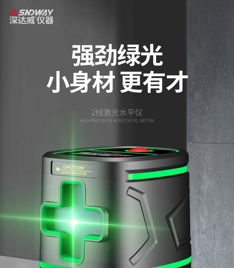 SNDWAY green light laser level 2 lines, automatic line marking, wall-mounted instrument, small marking instrument that can mark diagonal lines, mini water level meter SW-331G green light 2 lines, rechargeable version