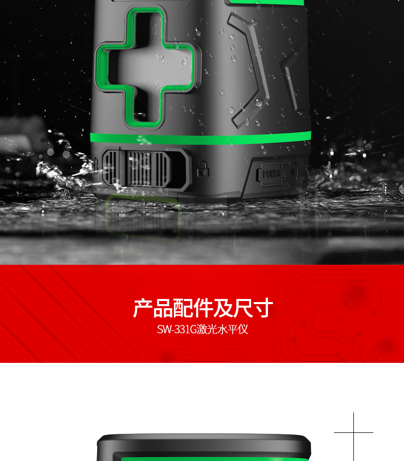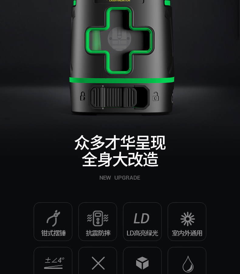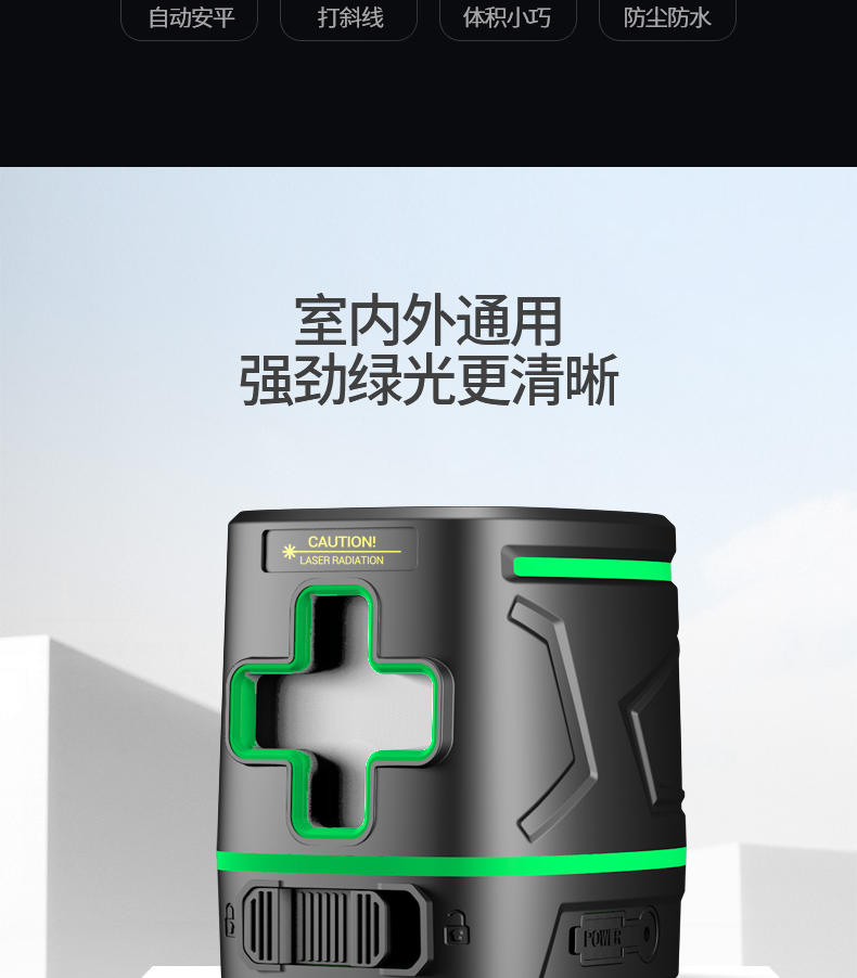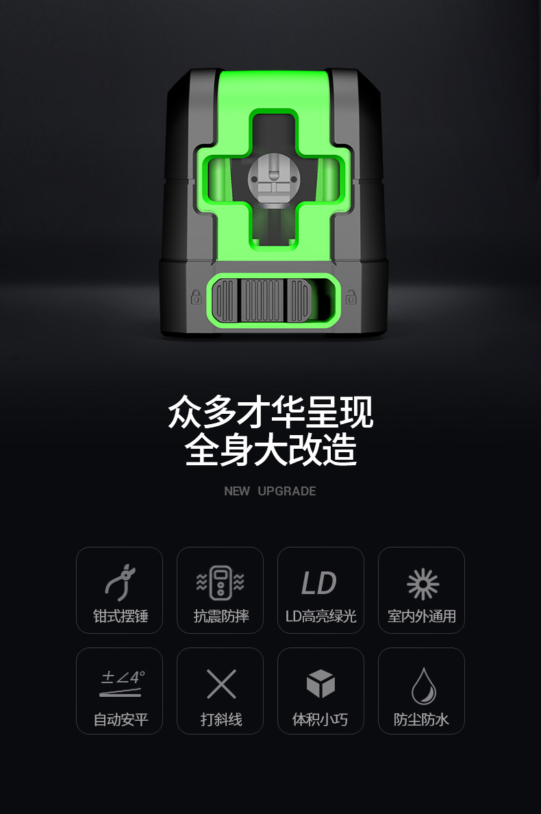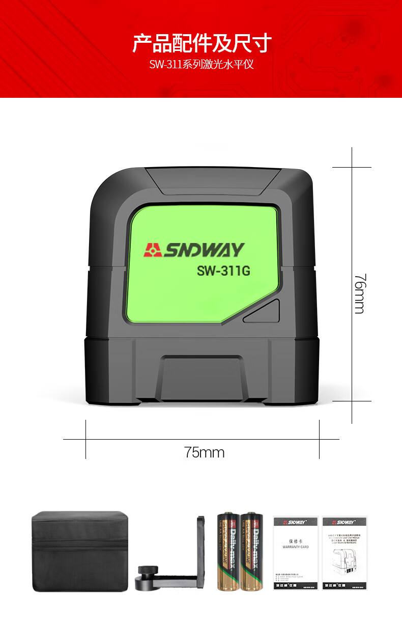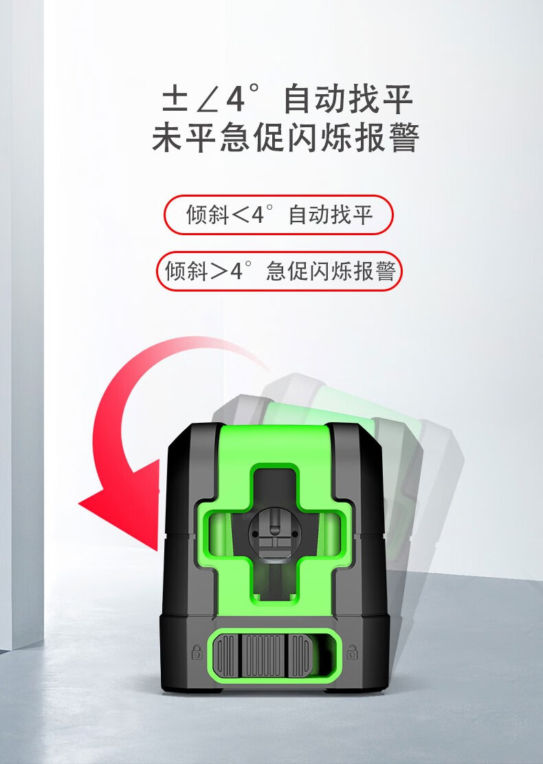 SNDWAY green light laser level 2 lines, automatic line marking, wall-mounted instrument, small marking instrument that can mark diagonal lines, mini water level meter SW-331G green light 2 lines, rechargeable version
