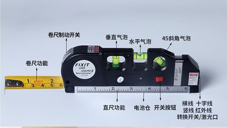 Opening laser level, household level ruler, infrared line marker, line caster with circle ruler, household indoor wiring tool, with magnetic level ruler + tripod (fast arrival)