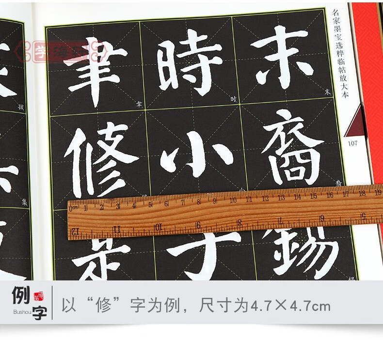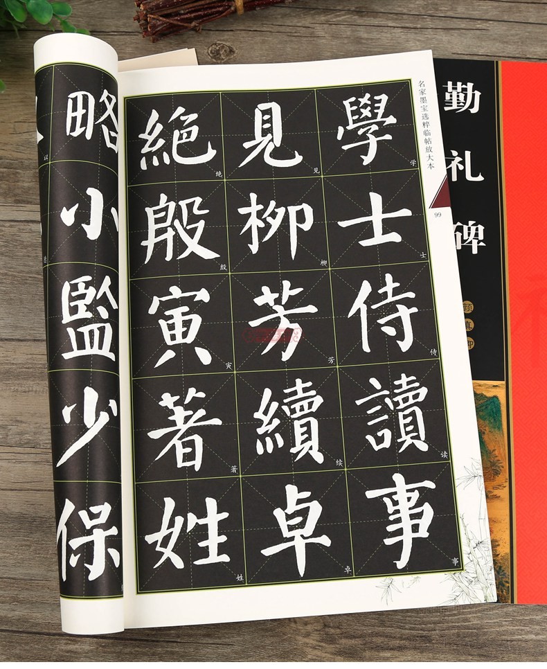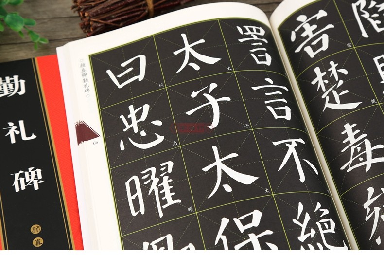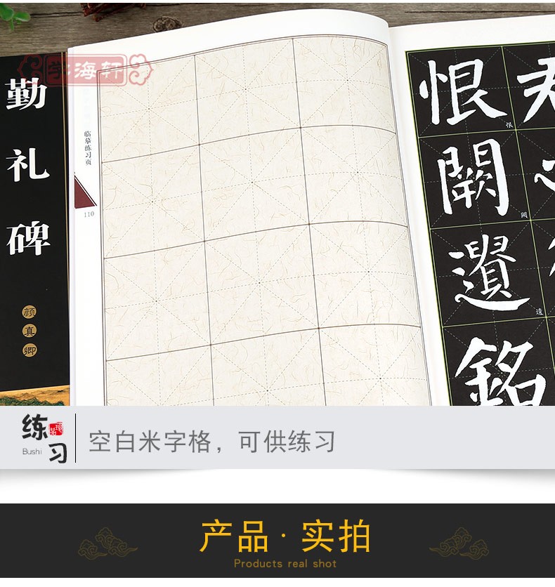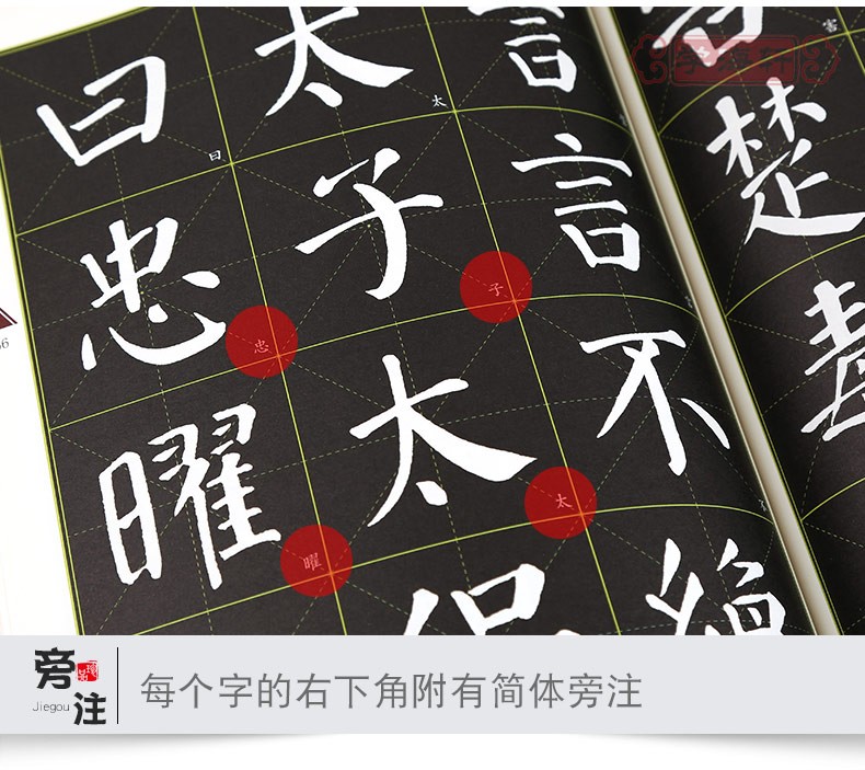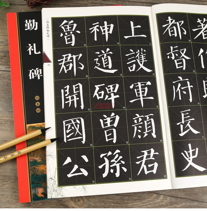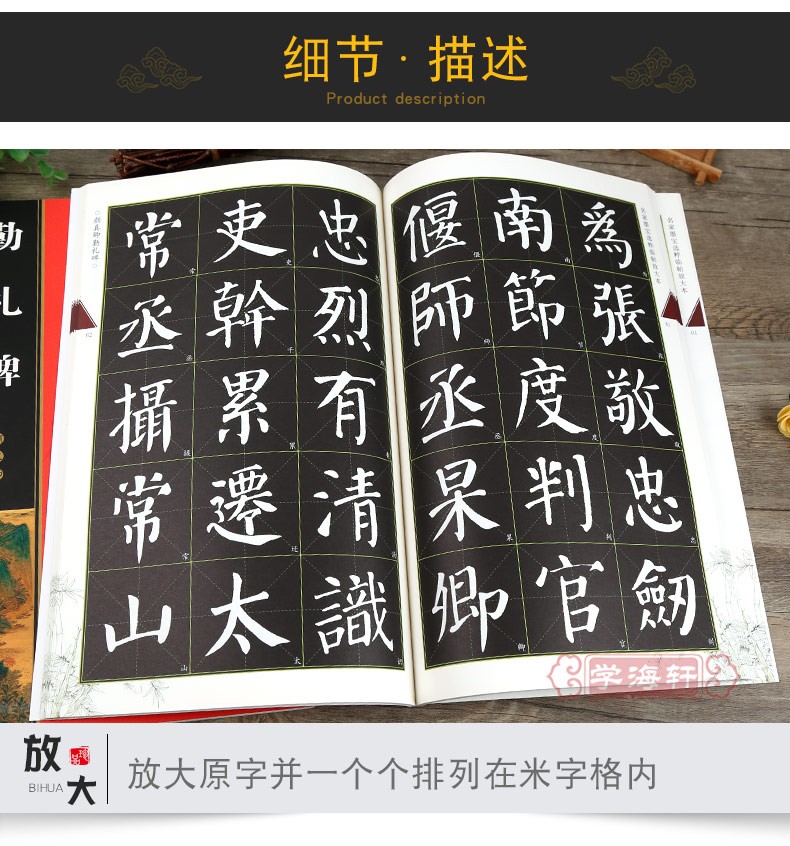 Enlarged version of the full text of the Yan Zhenqing Qinli Monument. Color printing of the full text with rice characters. Single character annotations. Yan Ti Yan Qinli Monument. Regular script calligraphy. Beginners' introductory practice calligraphy. Chongwen Bureau.