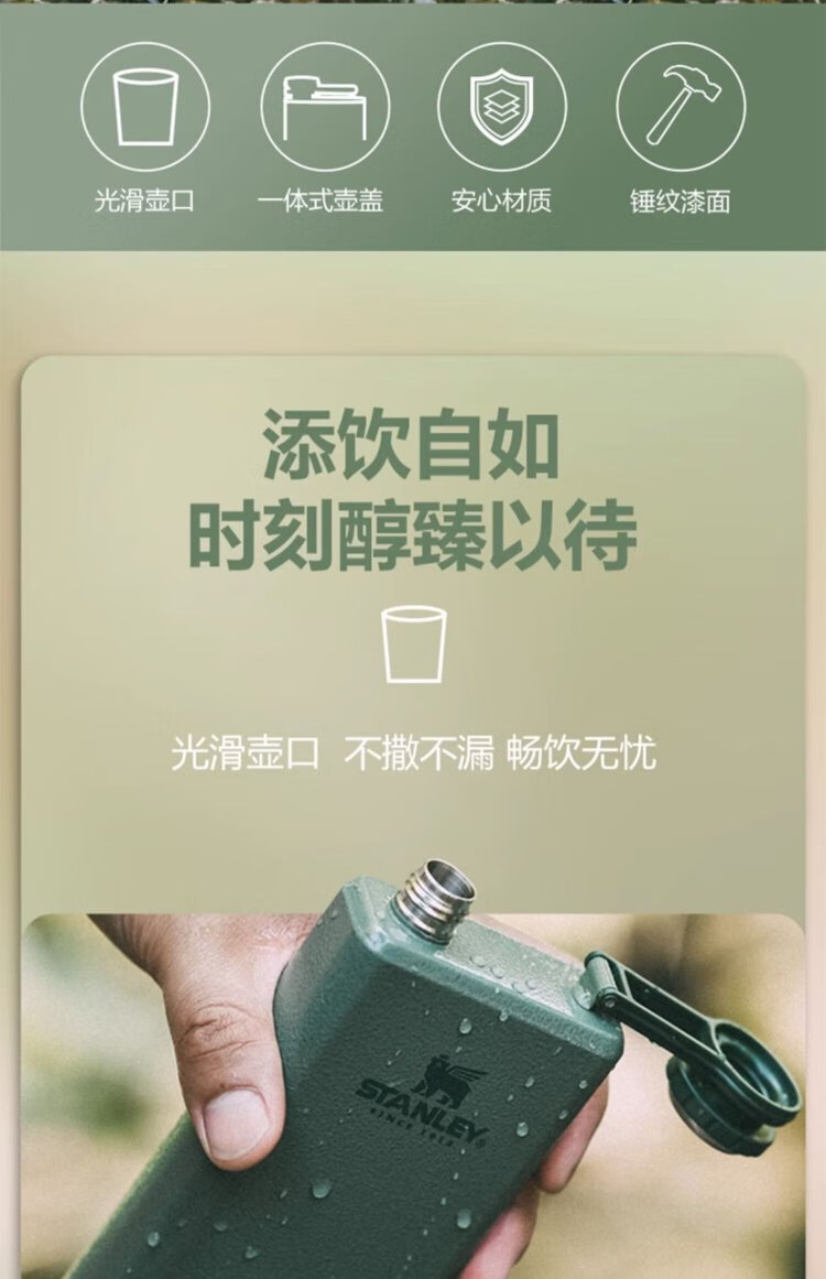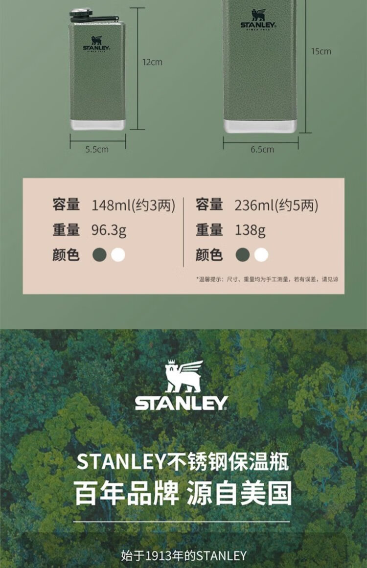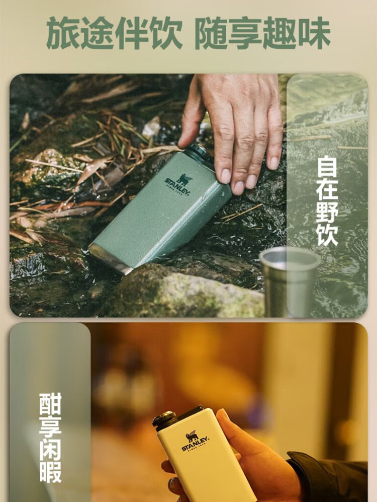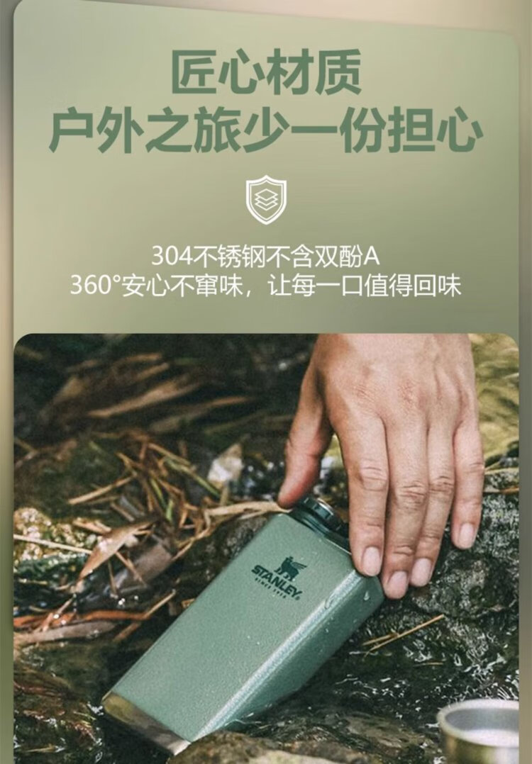STANLEY304 Stainless Steel Flask Portable Retro Flat Liquor Liquor Set Wine Bottle Outdoor Wine Bottle Portable Gift Adventure Small 3 Liang-Green 148ml