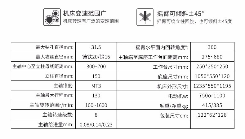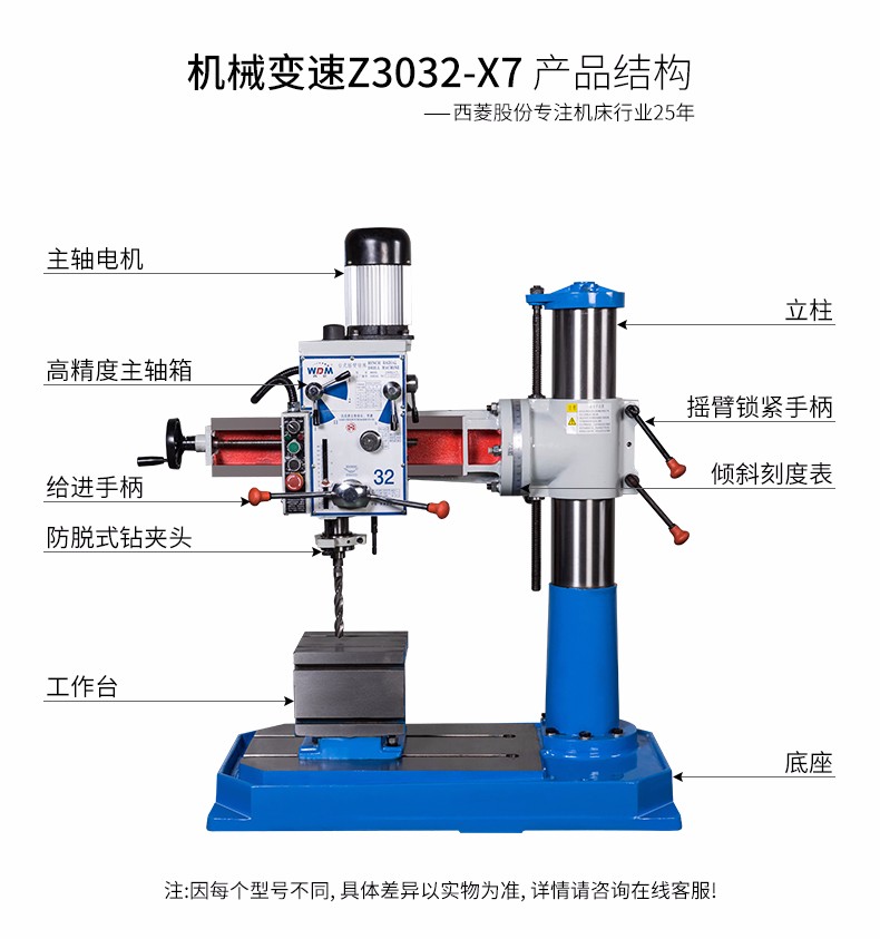 Xiling official factory direct industrial-grade powerful mechanical drilling machine drilling and tapping cantilever P with cooling bench drill radial arm drill Z3032 7/380V/automatic feed