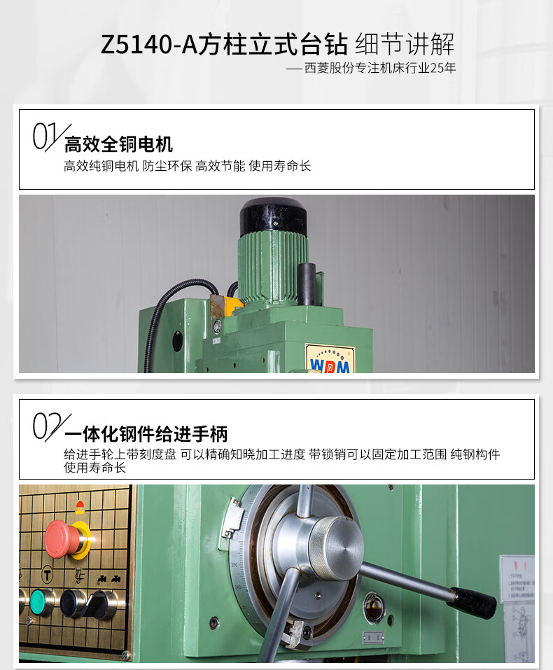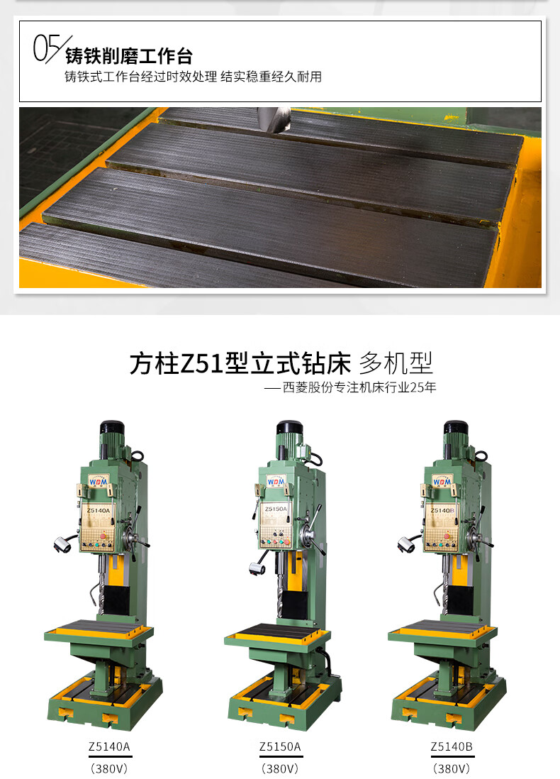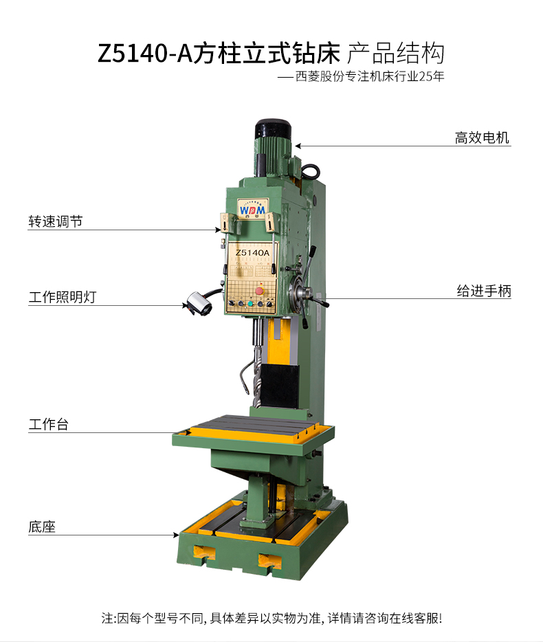Xiling (WDM) factory bench drill vertical square column powerful precision heavy-duty industrial-grade drilling machine high-power domestic 40mm drilling machine Z5140A/380V/3KW