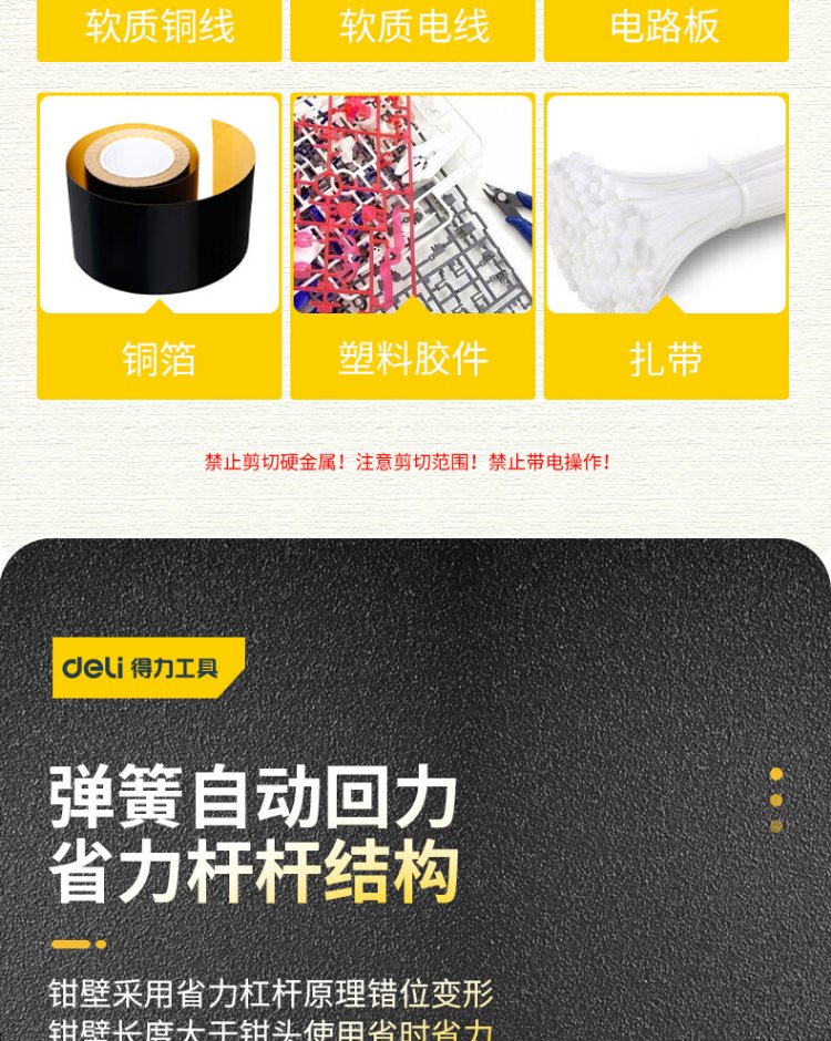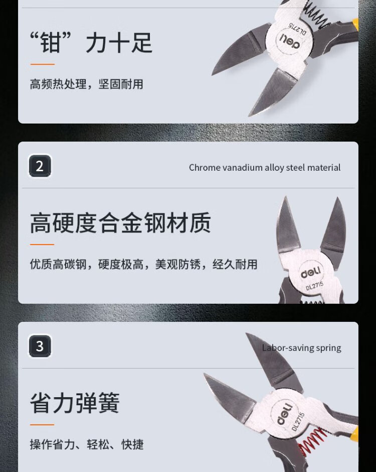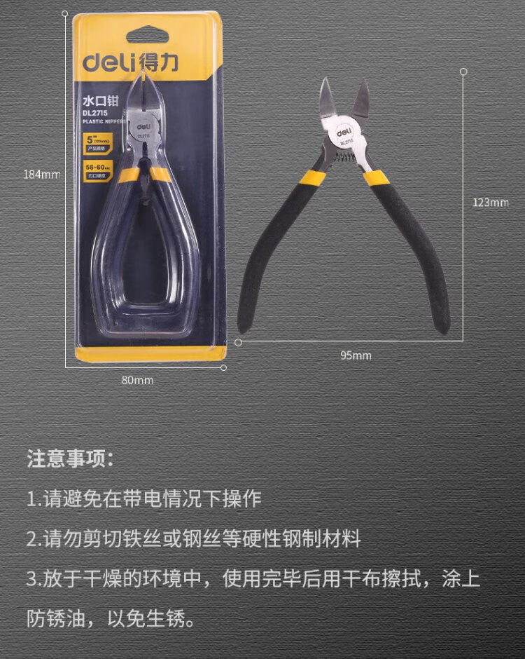 Deli anti-slip water mouth pliers water mouth scissors electronic scissors plastic pliers diagonal pliers labor-saving pliers 5 inches