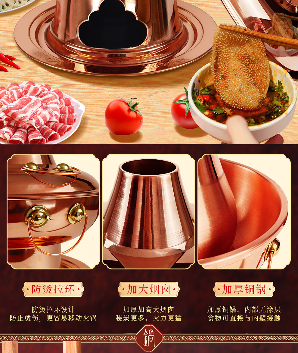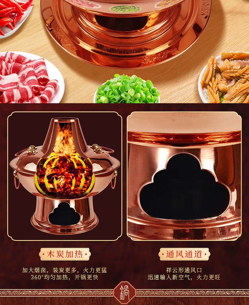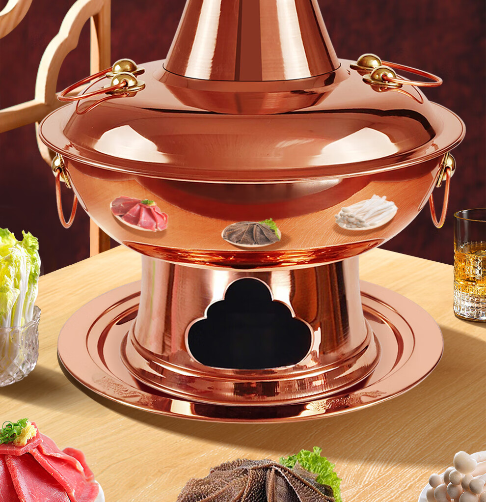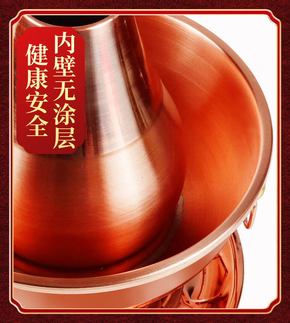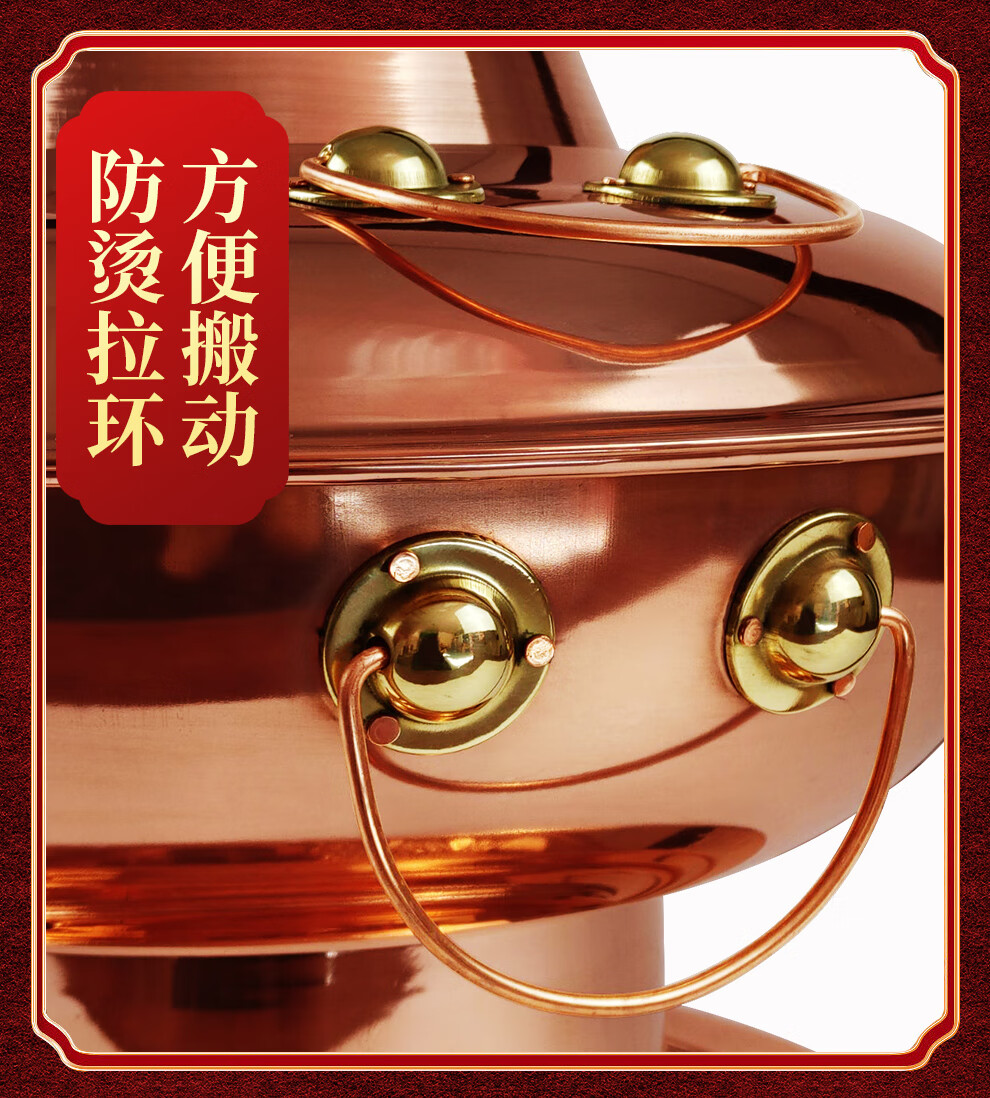 Guo Yiyuan pure copper thickened charcoal hot pot pot handmade pure copper old Beijing mutton-shabu household traditional charcoal pot mandarin duck pot extra thick charcoal clear soup version (under 8 people) 34cm