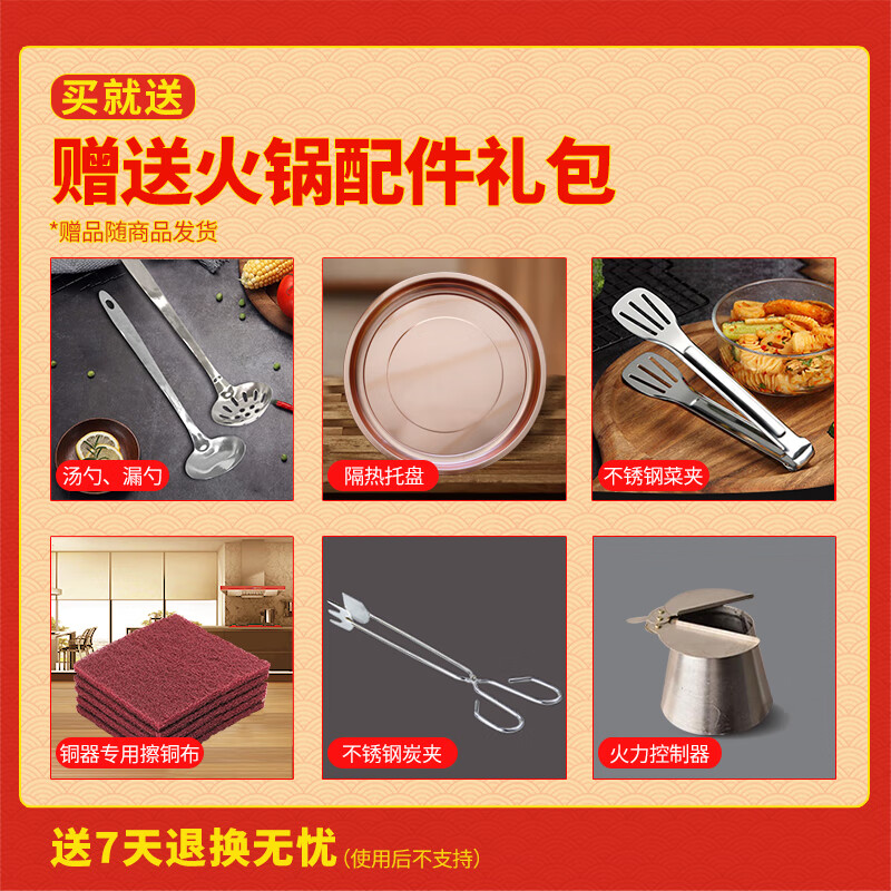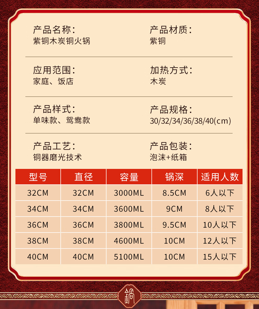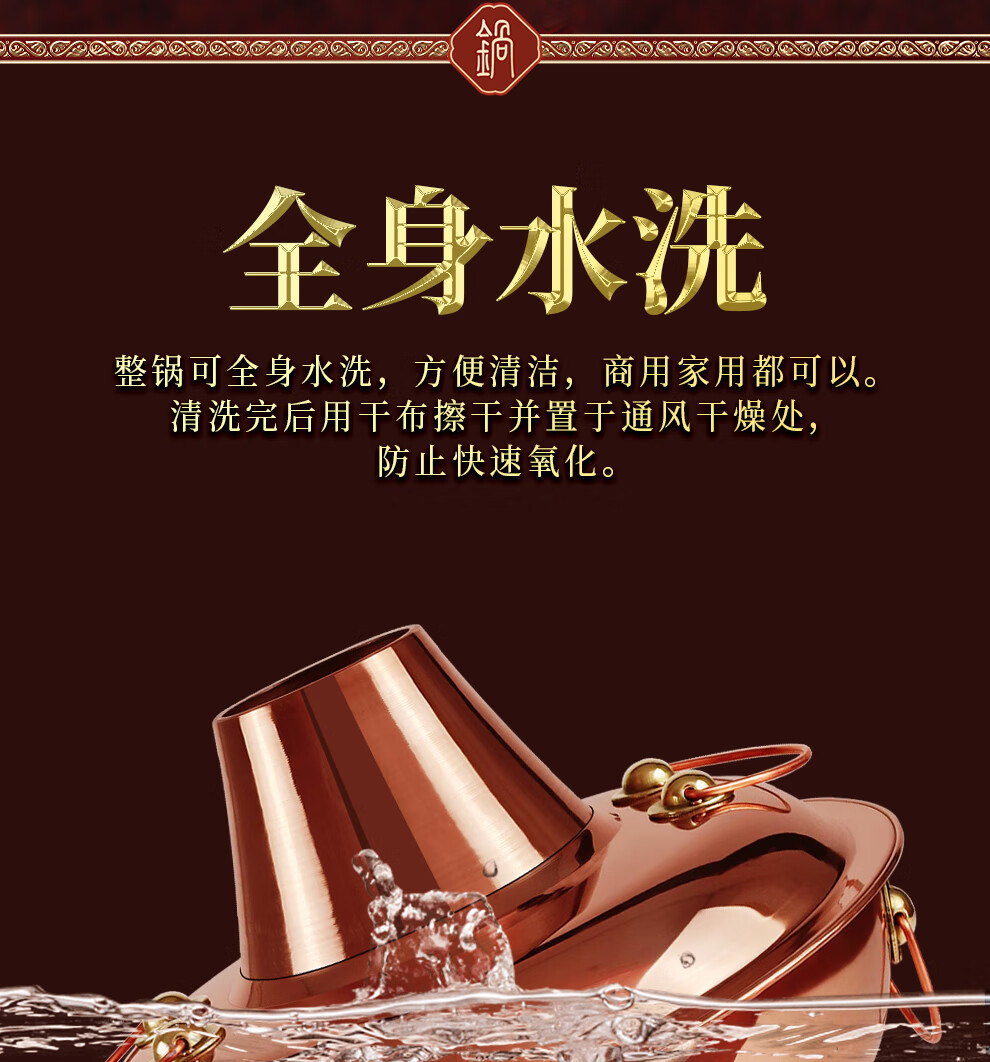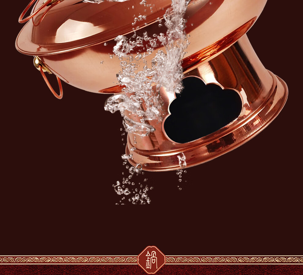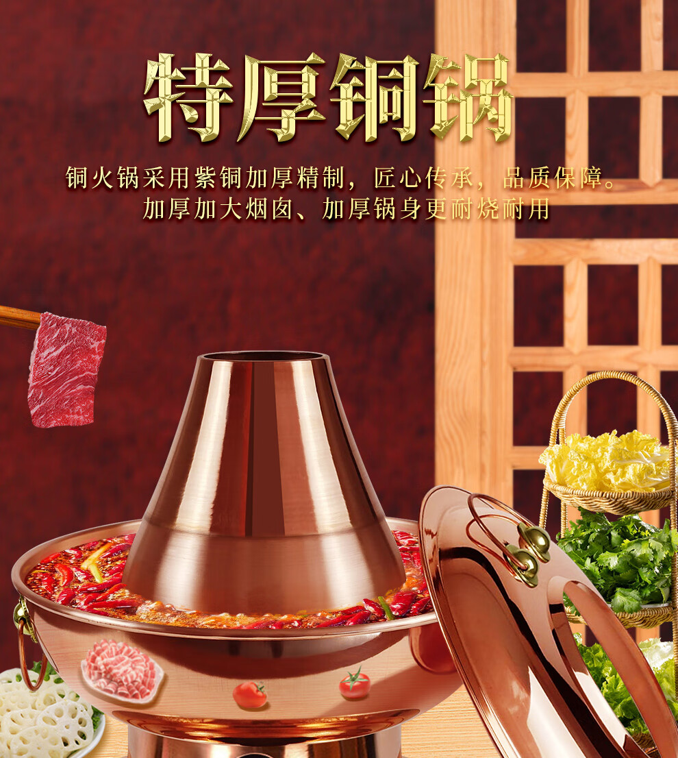 Guo Yiyuan pure copper thickened charcoal hot pot pot handmade pure copper old Beijing mutton-shabu household traditional charcoal pot mandarin duck pot extra thick charcoal clear soup version (under 8 people) 34cm