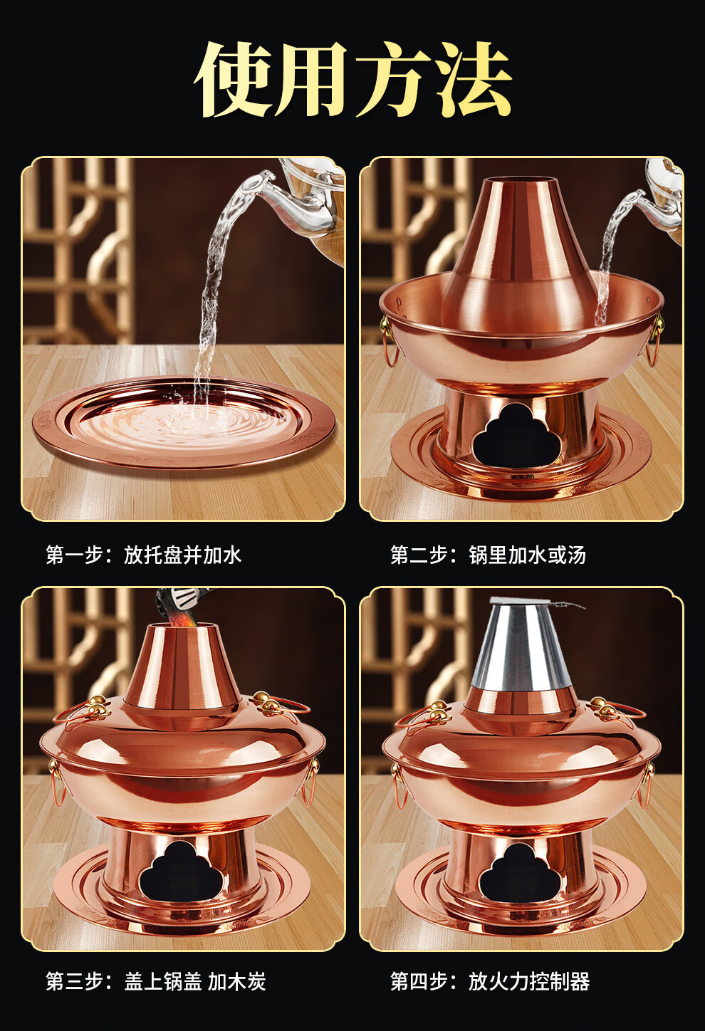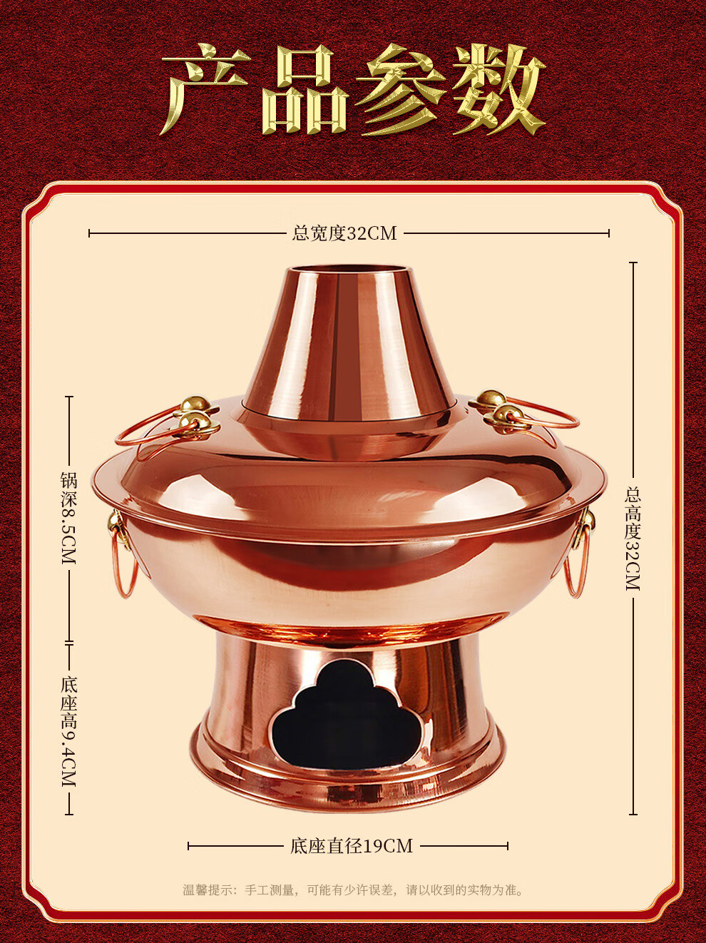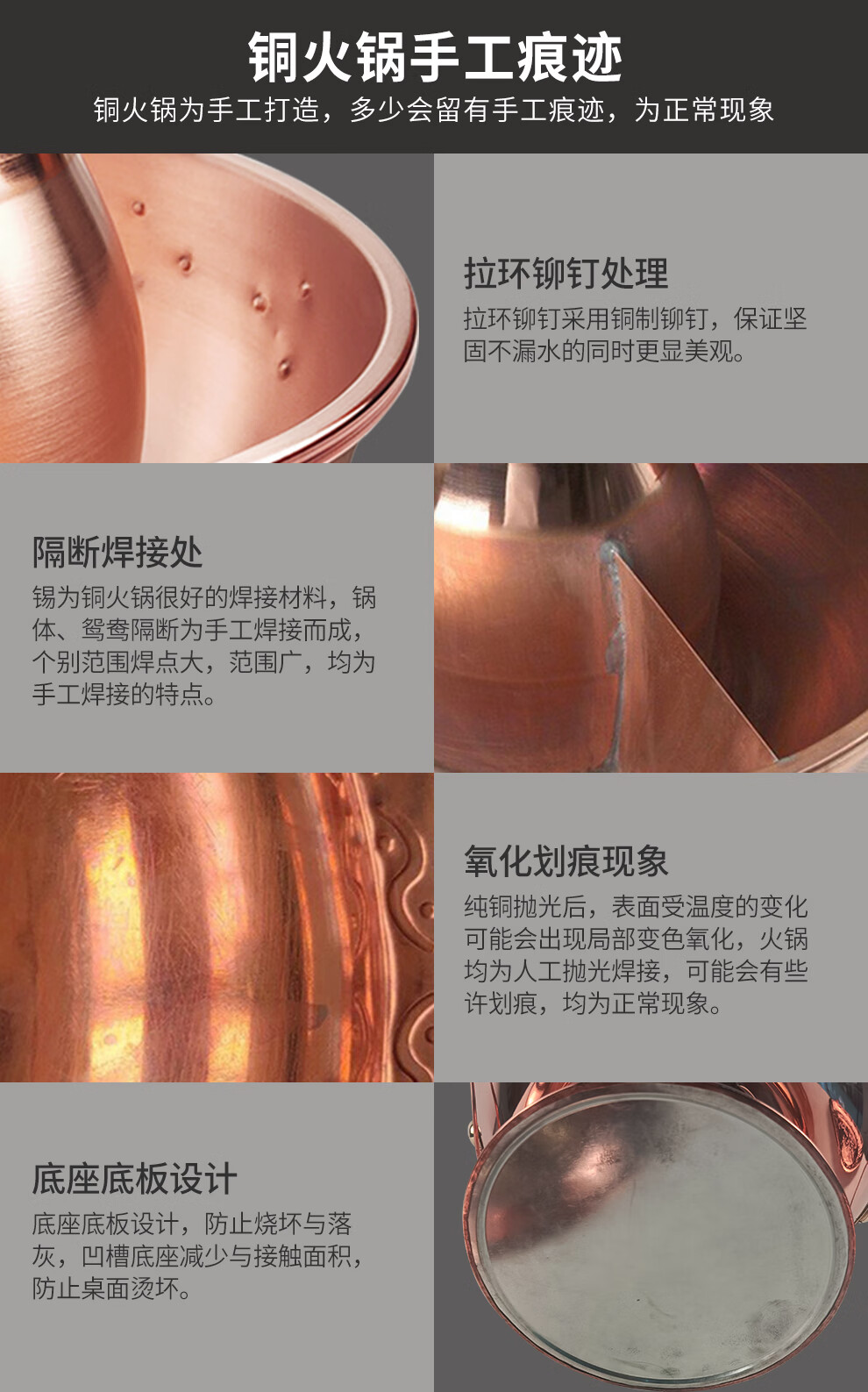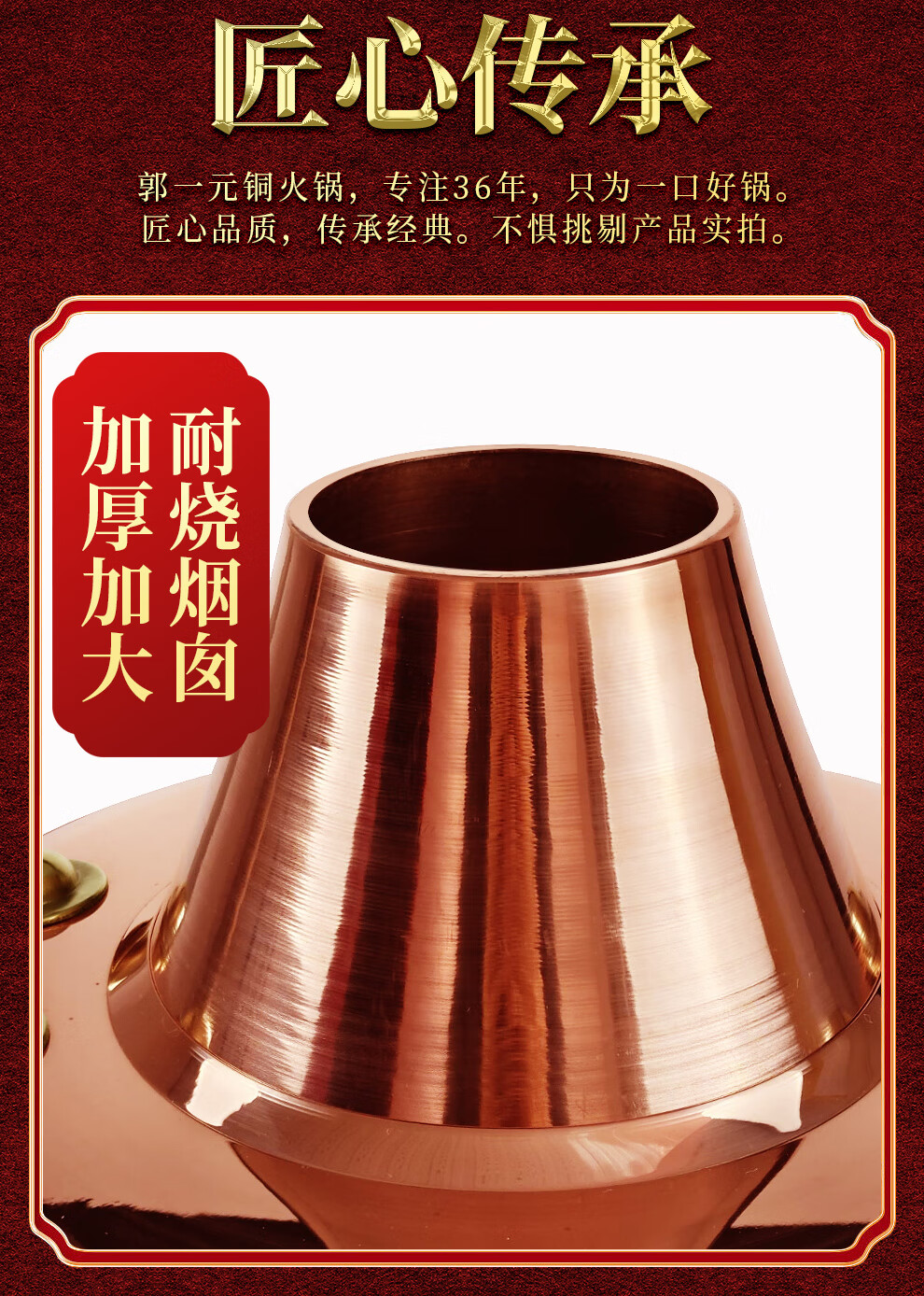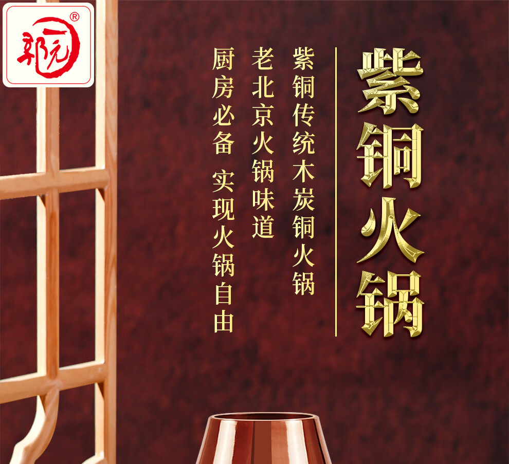 Guo Yiyuan pure copper thickened charcoal hot pot pot handmade pure copper old Beijing mutton-shabu household traditional charcoal pot mandarin duck pot extra thick charcoal clear soup version (under 8 people) 34cm