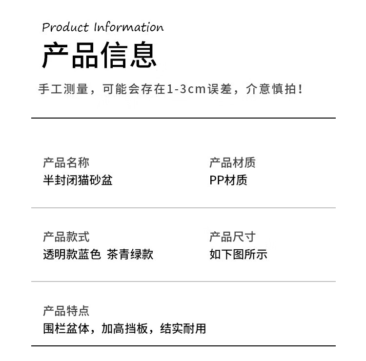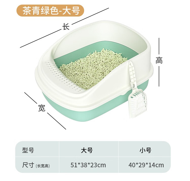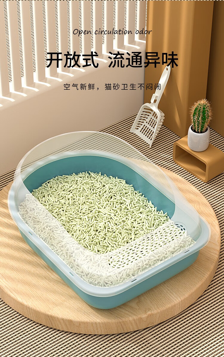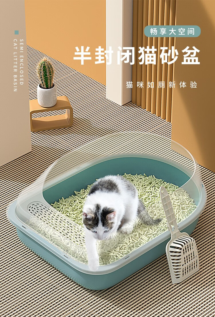 Hanhan Pet Cat Litter Box Extra Large Cat Toilet Semi-enclosed Cat Litter Box Kitten Adult Cat Anti-Splash Cat Poop Box Cat Supplies Tea Green Small Size