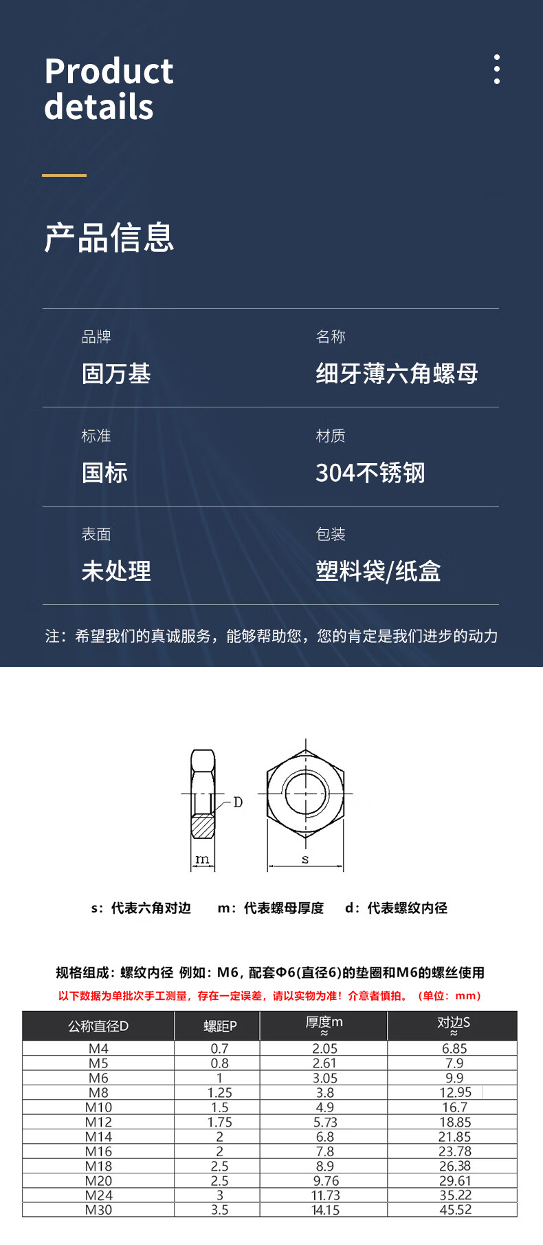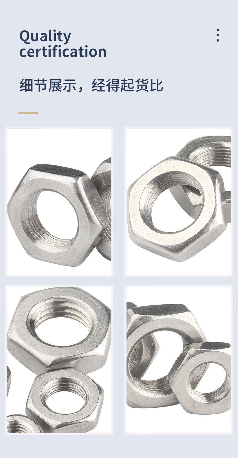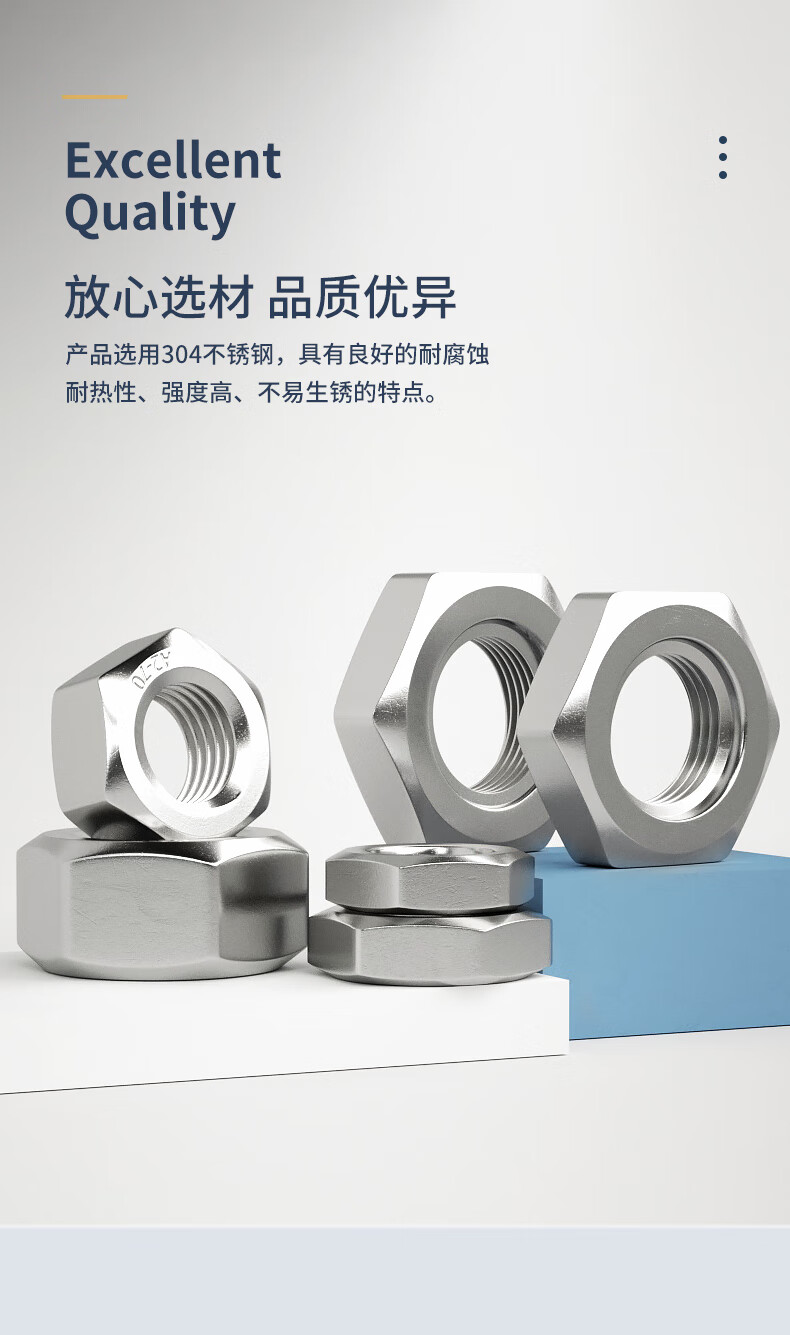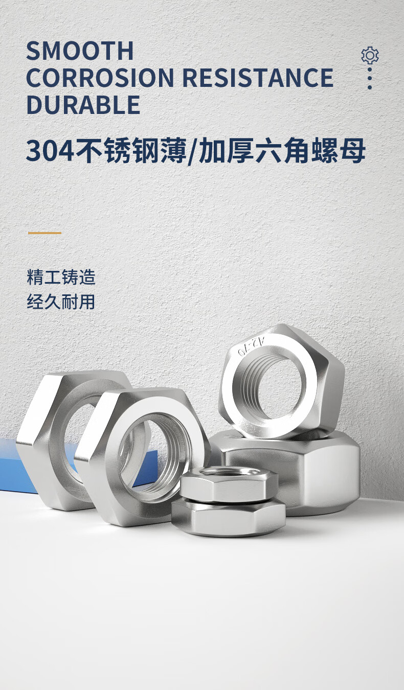 Guwanji 304 stainless steel fine thread thin hexagonal nut, hexagonal filament nut collection, flat thin fine thread hexagonal nut M8*1.0 thread 10 pieces thin section