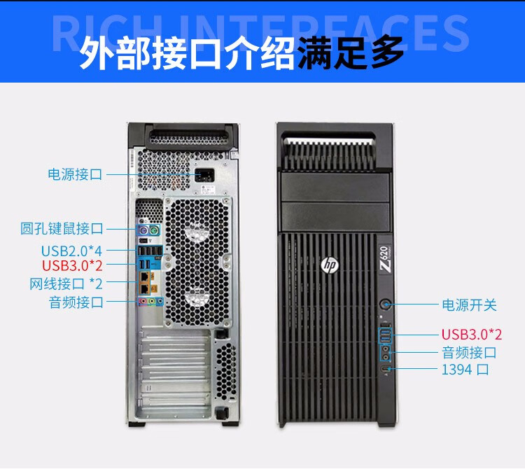 HP (HP) Z620 second-hand graphics workstation dual-channel Xeon 24-core 48-thread independent display three-dimensional construction PR PS Douyin video production host Shandong customer customization