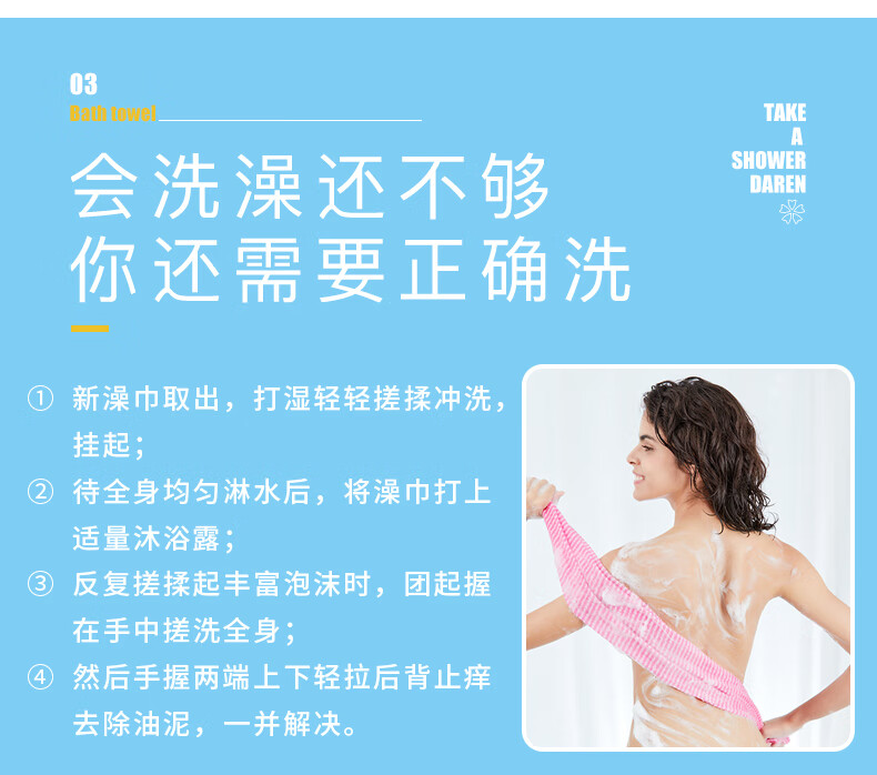 Cyan pomelo imported from Japan powerful back rub bath towel long back strip bath towel unisex bath towel QKG-011 orange 30x100cm/moderate
