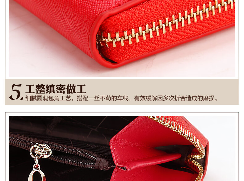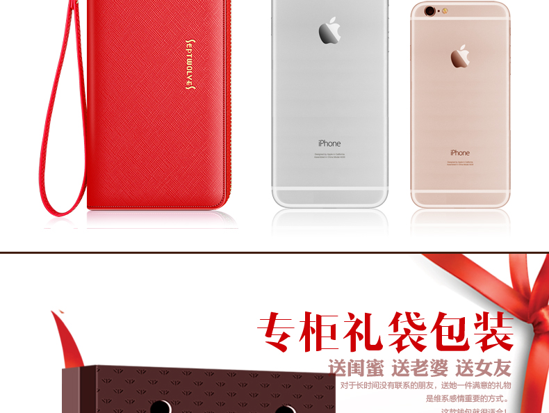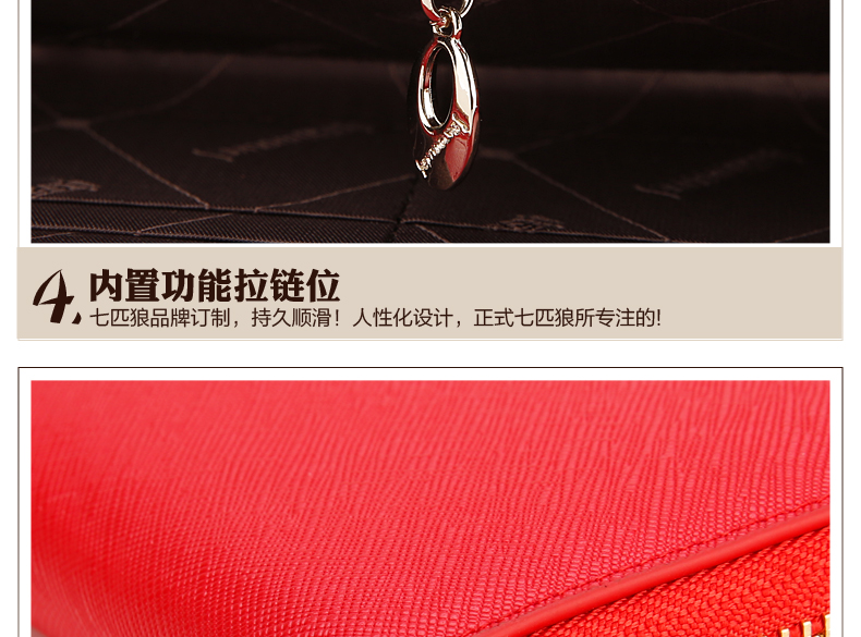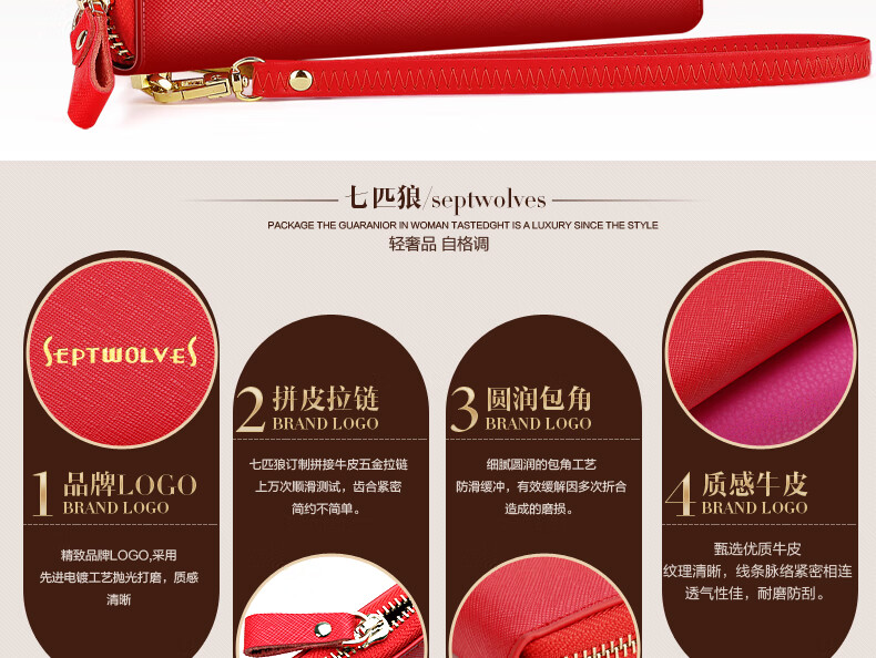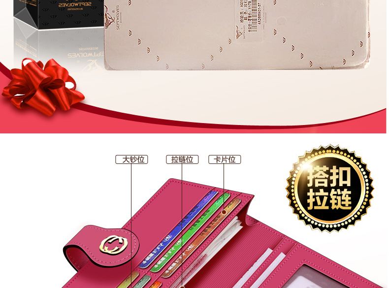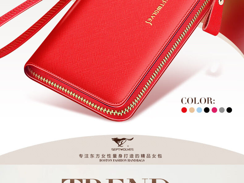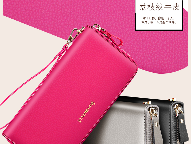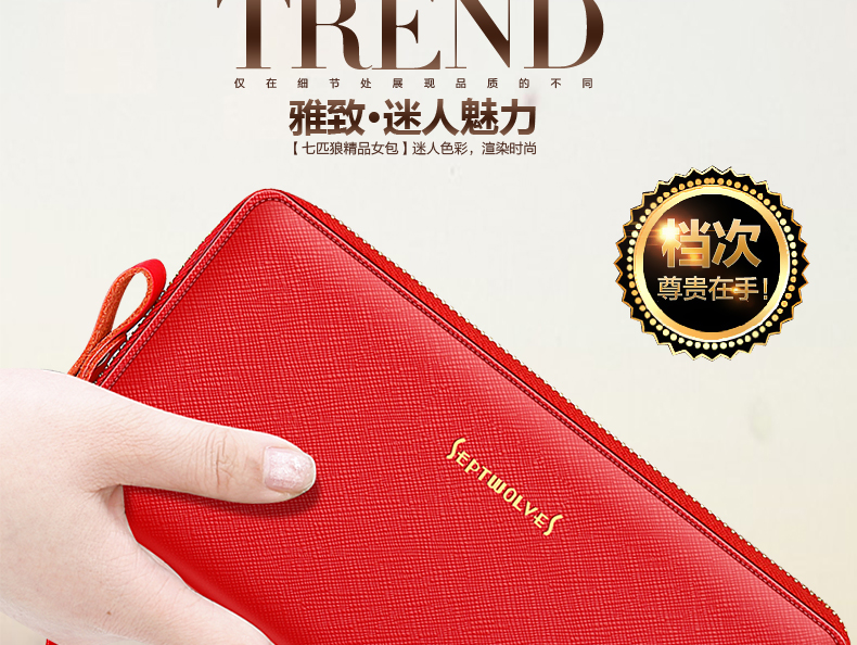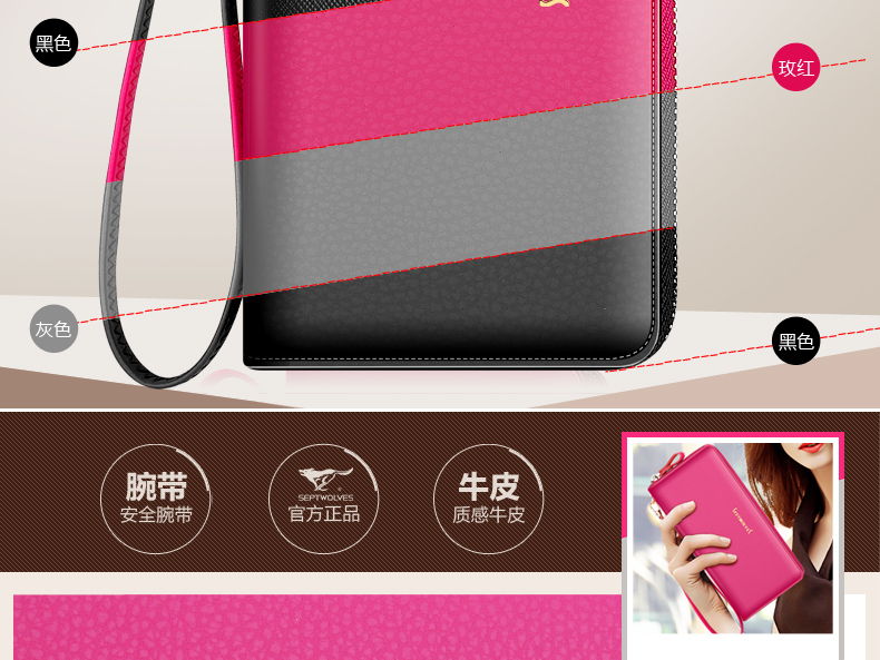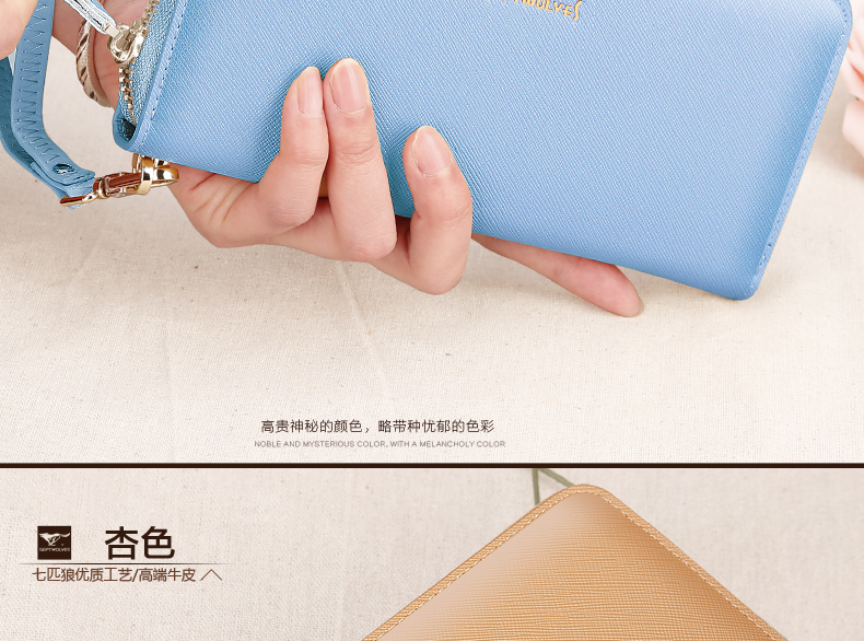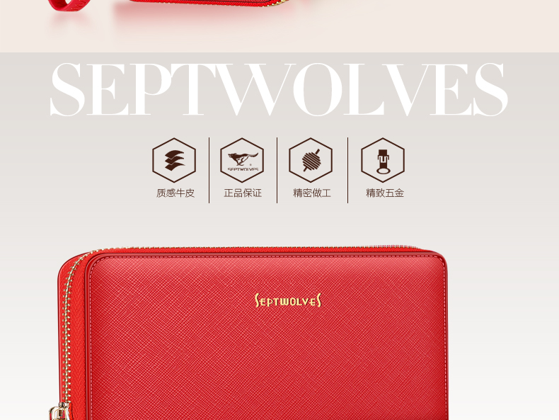 Septwolves wallet women's long zippered cowhide handbag large banknote holder large capacity Korean style women's bag 1 black (lychee pattern)