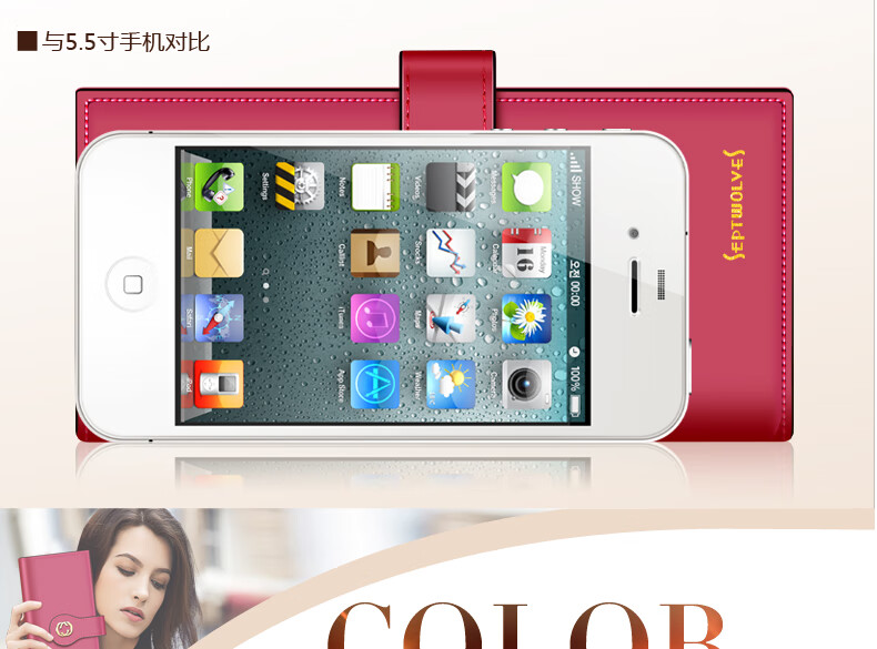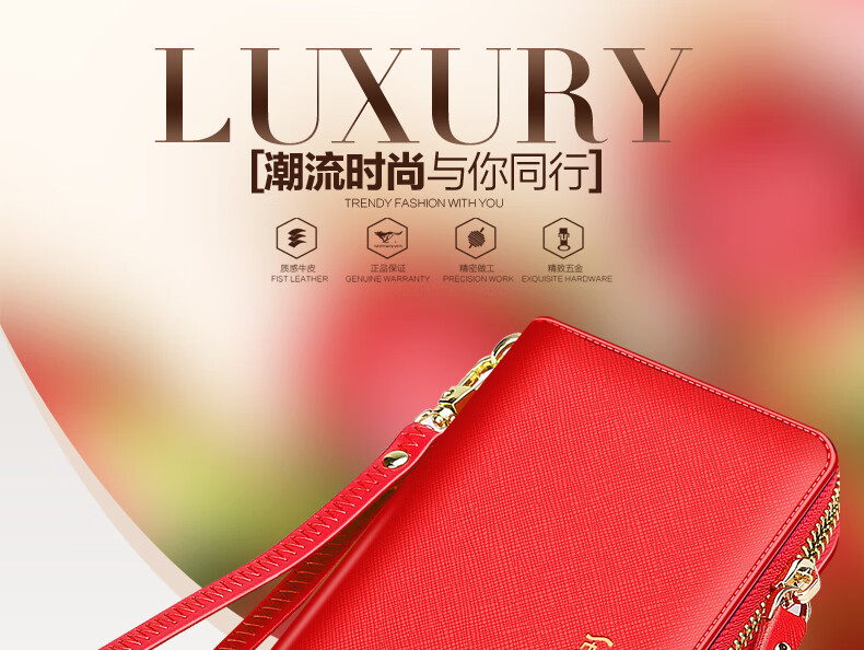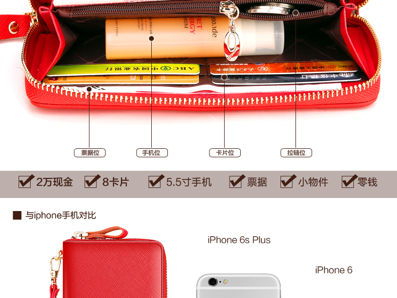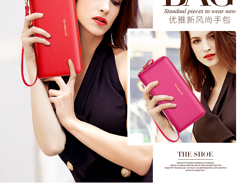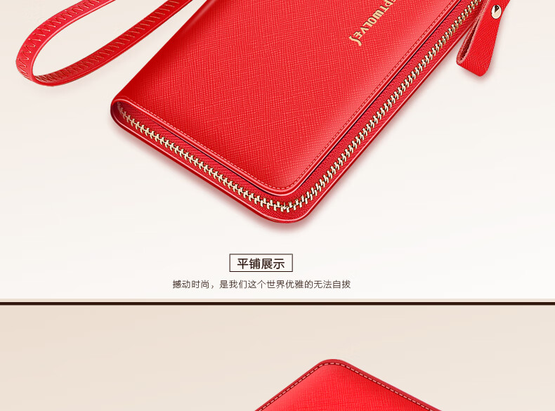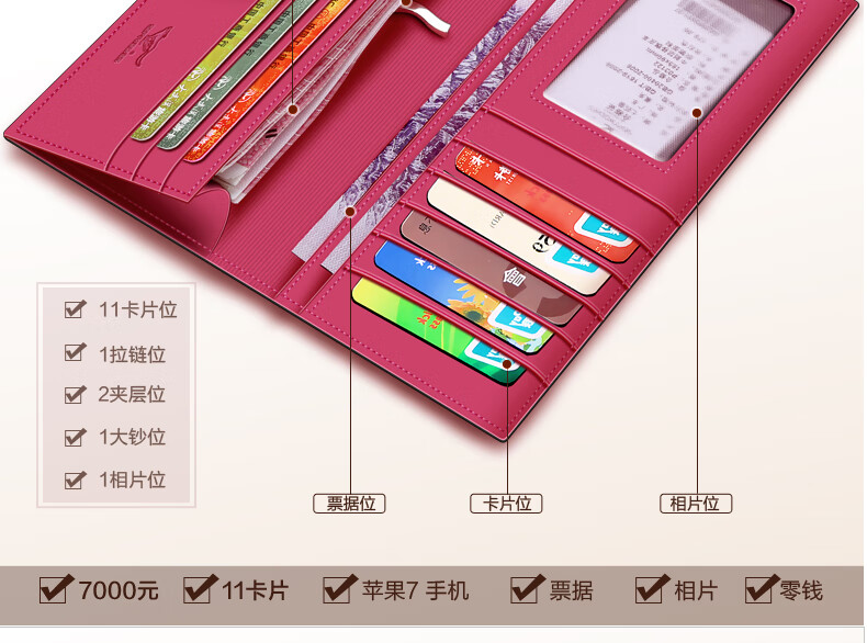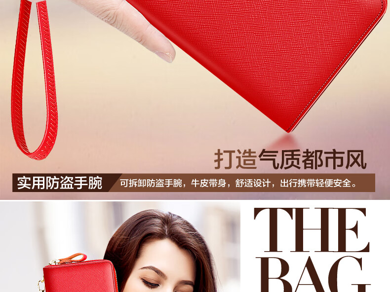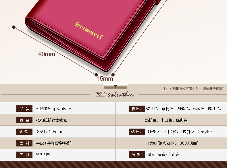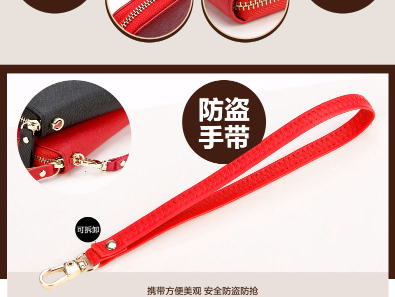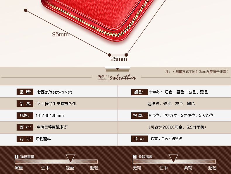 Septwolves wallet women's long zippered cowhide handbag large banknote holder large capacity Korean style women's bag 1 black (lychee pattern)