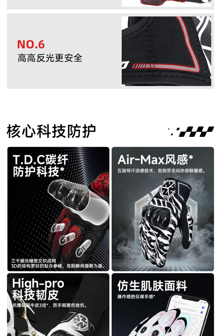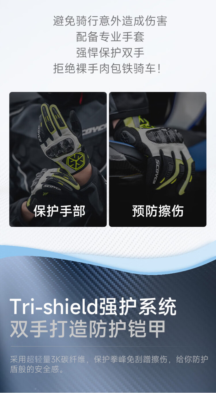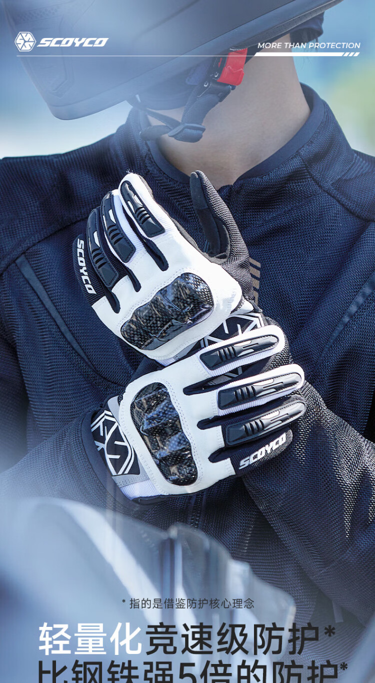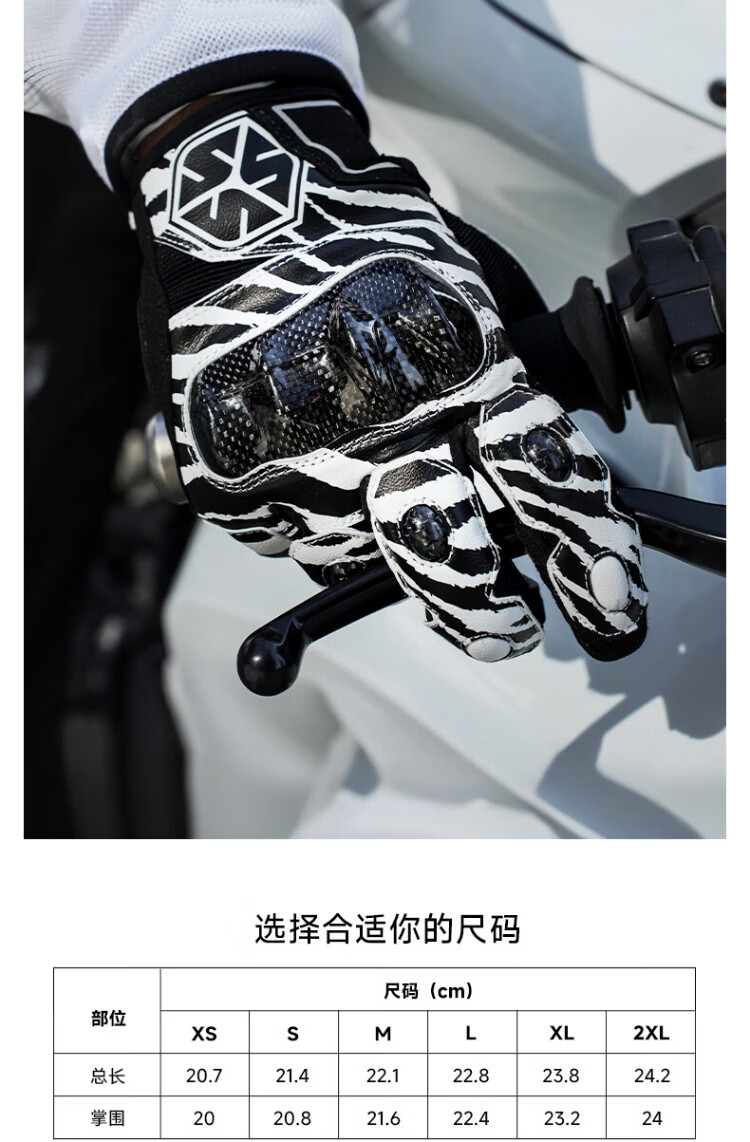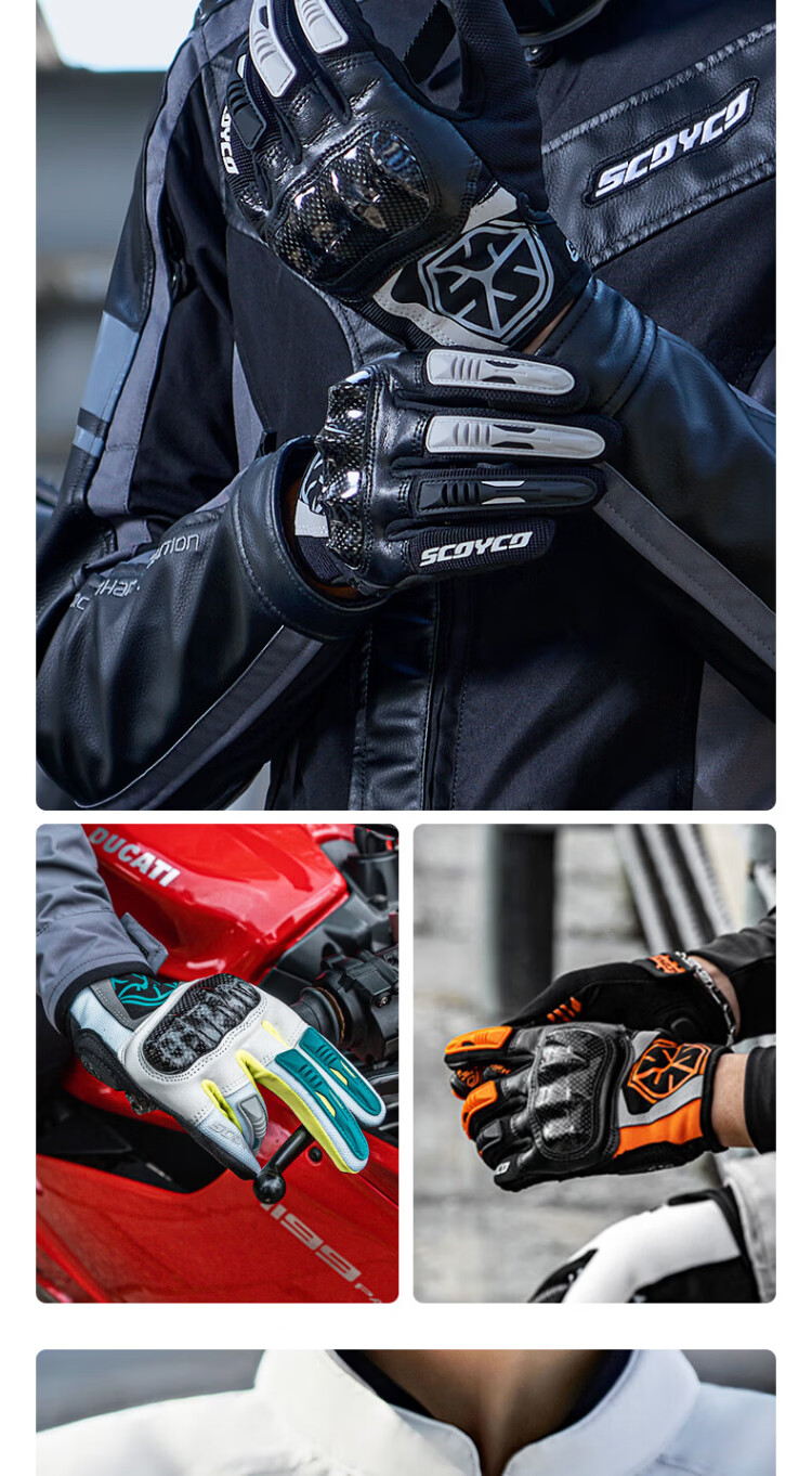 SCOYCO carbon fiber motorcycle riding all-season gloves for motorcycles, spring and summer windproof and warm commuter men and women MC230-Zebra Four Seasons Carbon Fiber Anti-fall and Wear-Resistant XL