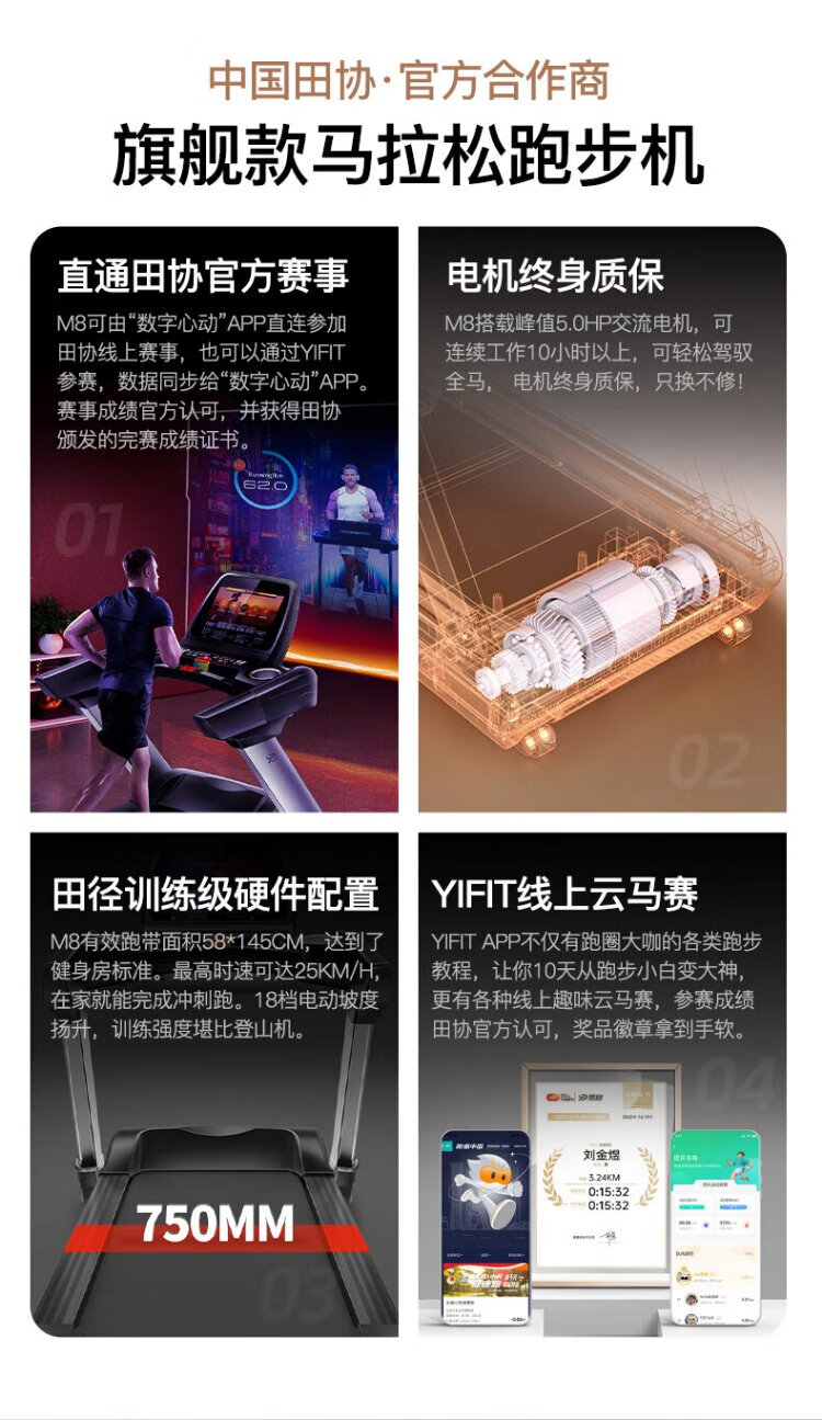 YPOO Marathon Treadmill Home Commercial Slope Smart Gym Equipment M8