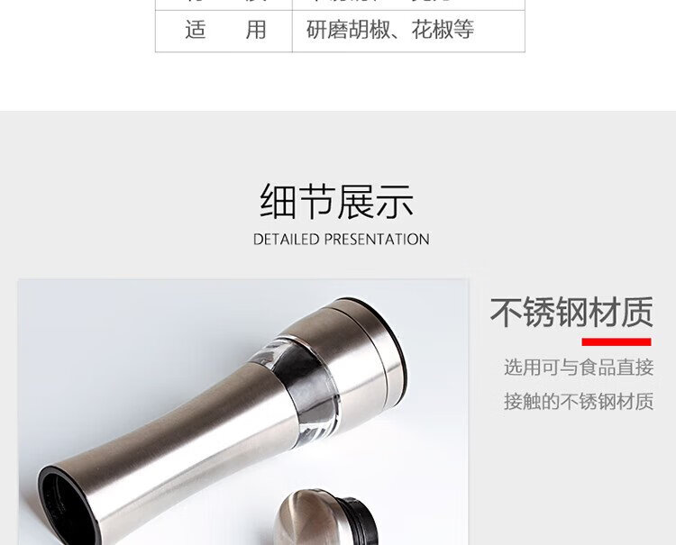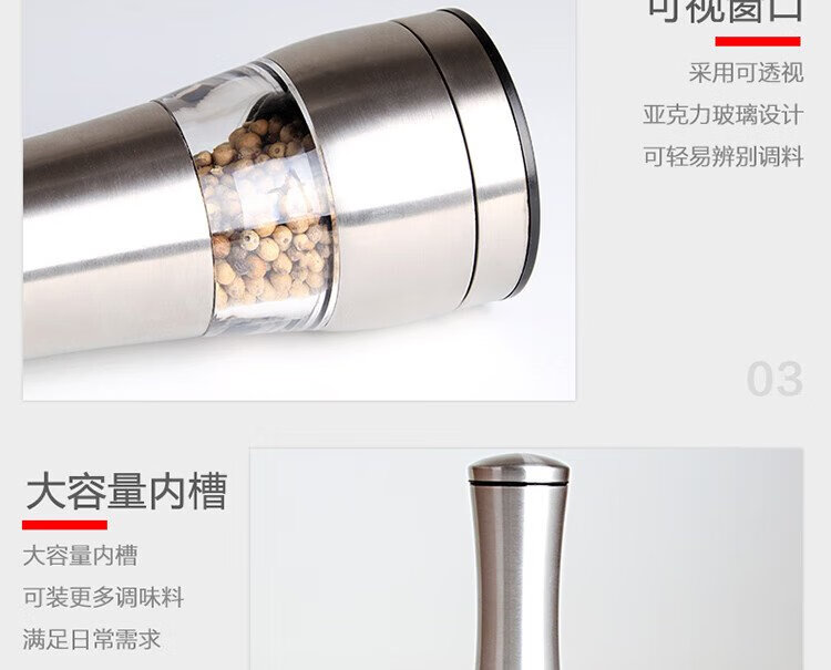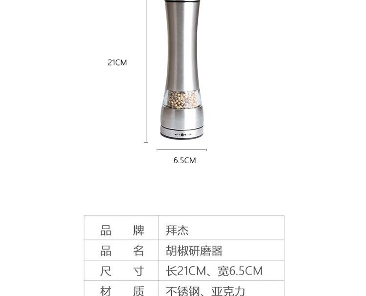 Badger stainless steel grinder grinding bottle manual black pepper seasoning bottle pepper grinder (extended version)