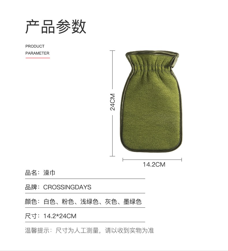 CROSSING DAYS bath towel for men and women, powerful mud bath towel, exfoliating gloves, bath towel, soft back rub, dark green (coarse sand, suitable for men)