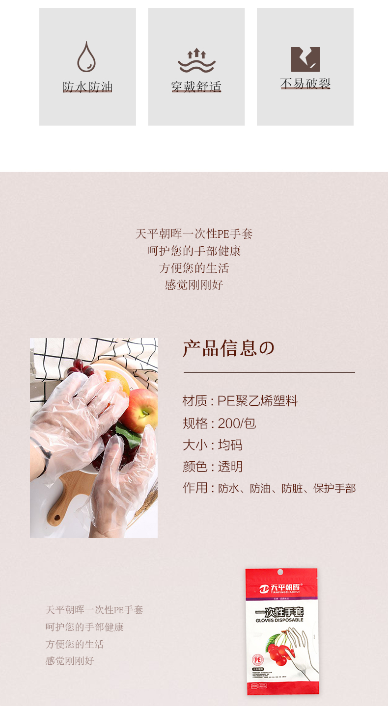 Tian Ping Zhaohui Disposable Gloves 200 Pack PE Material Thickened Leak-proof Baking Lobster BBQ Gloves Duck Neck Braised Late Night Supper Gloves