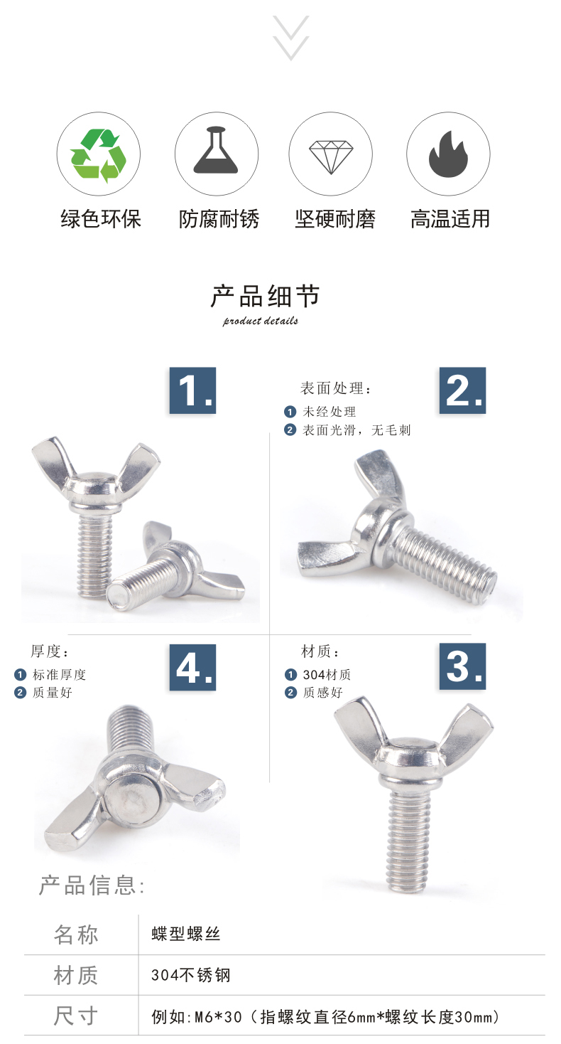 Yisi standard 304 stainless steel butterfly screws/butterfly bolts/Yuanbao horn hand screws M3 M4M5M6M8 M6*25 (5 pieces)